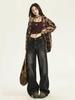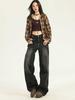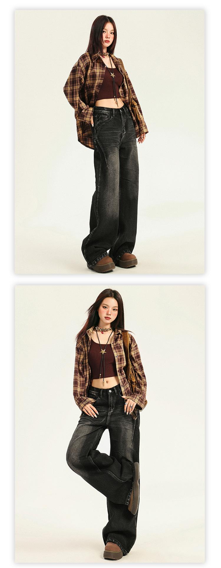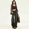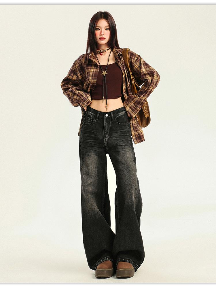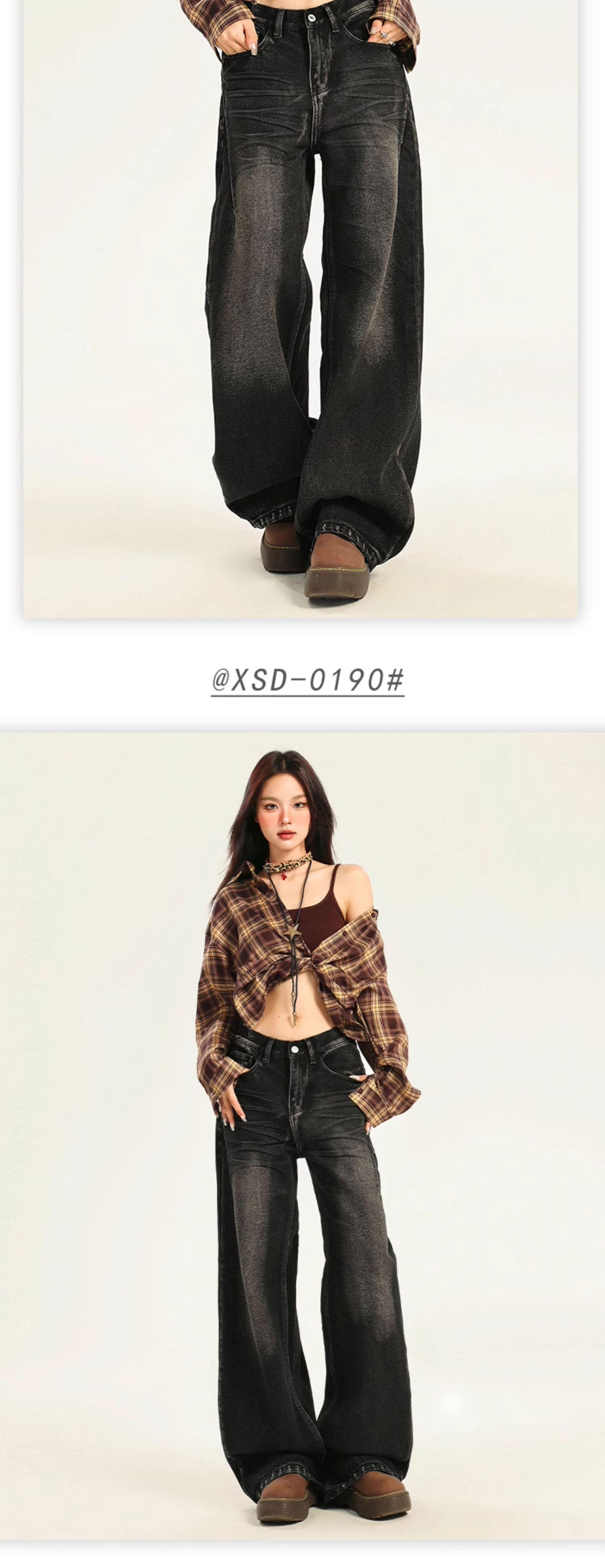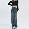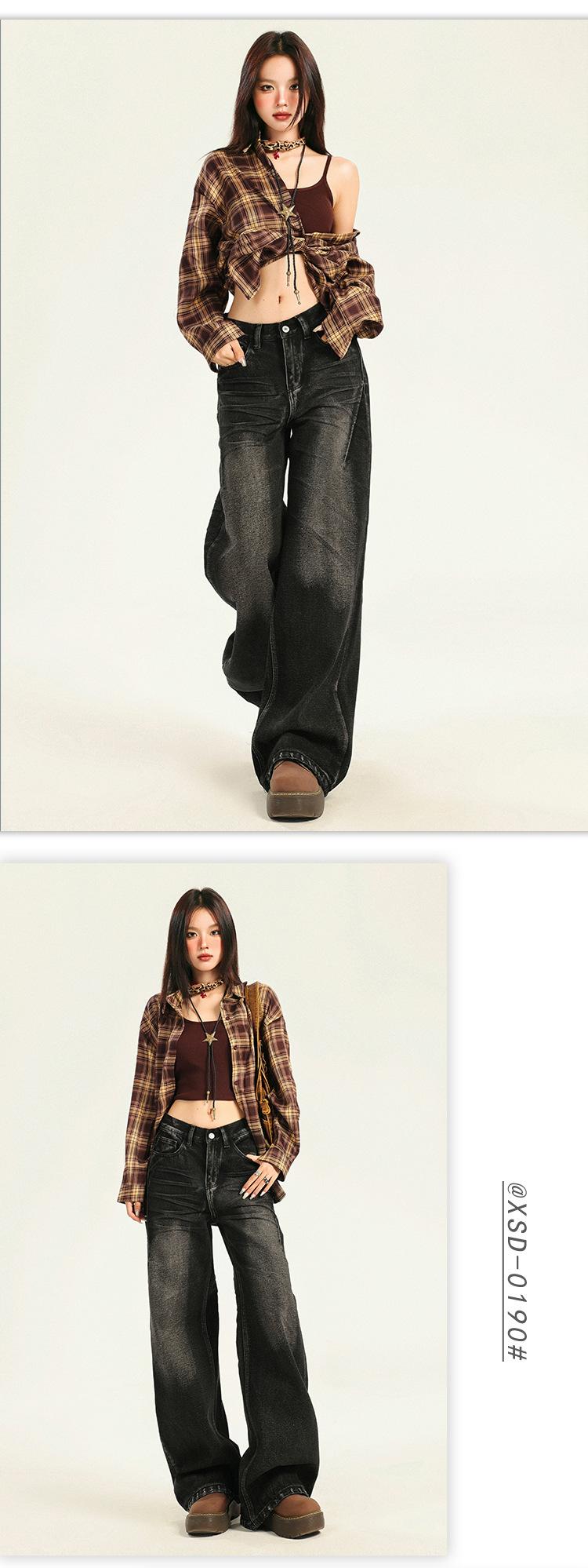 Jeans Americanos Retro Negros para Mujer 2025 Primavera y Verano Nuevo Cintura Alta Slim Pierna Recta Sueltos Pierna Ancha Pantalones Largos hasta el Piso