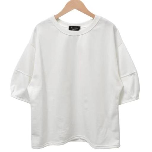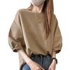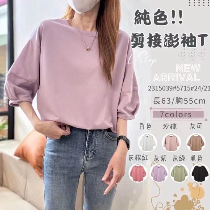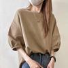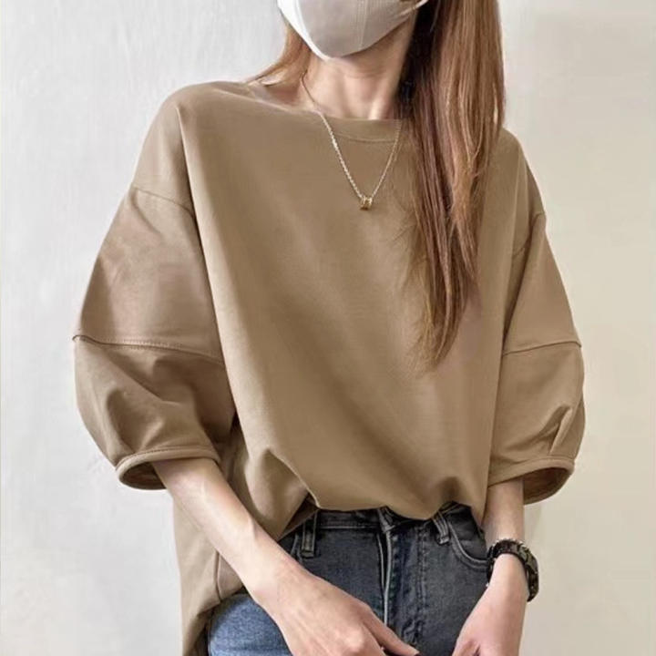 Playera Nueva Top Holgado Color Puro Cuello Redondo Empalme Ins Versátil 2025 Estilo Caliente Talla Grande para Mujer Ropa Casual de Trabajo