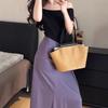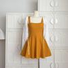 Vestido de punto suave que ciñe la cintura para mujer Verano Nuevo Adelgazante Temperamento Falda corta Cárdigan Conjunto de dos piezas