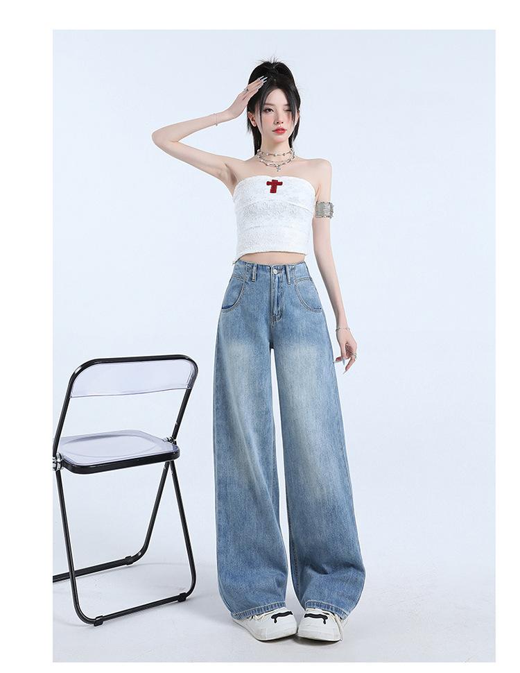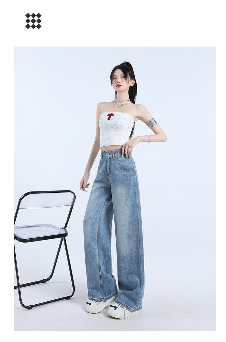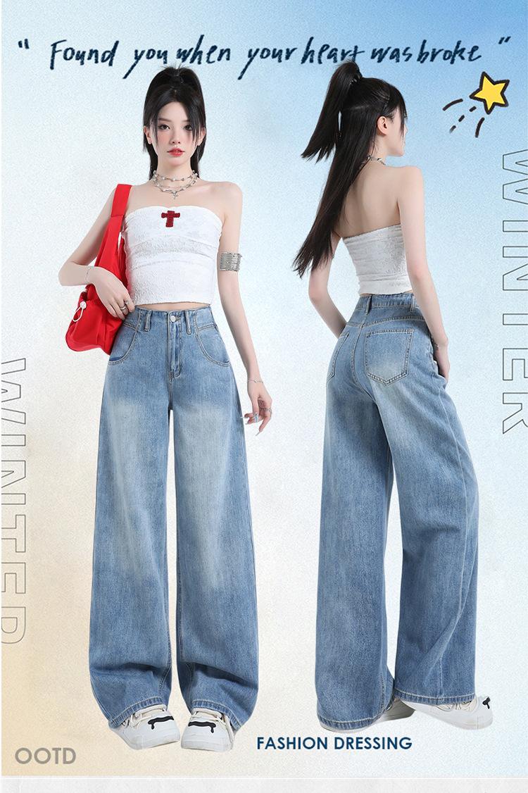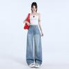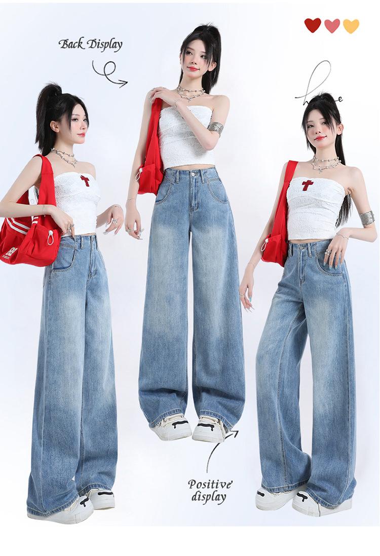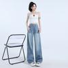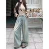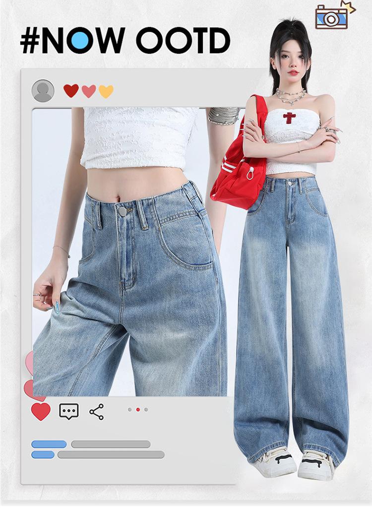 8347# Jeans Retro de Pierna Ancha para Mujer Nuevos de Cintura Alta Estilo Americano Pantalones Sueltos Antiguos Dipped de Spice Girl