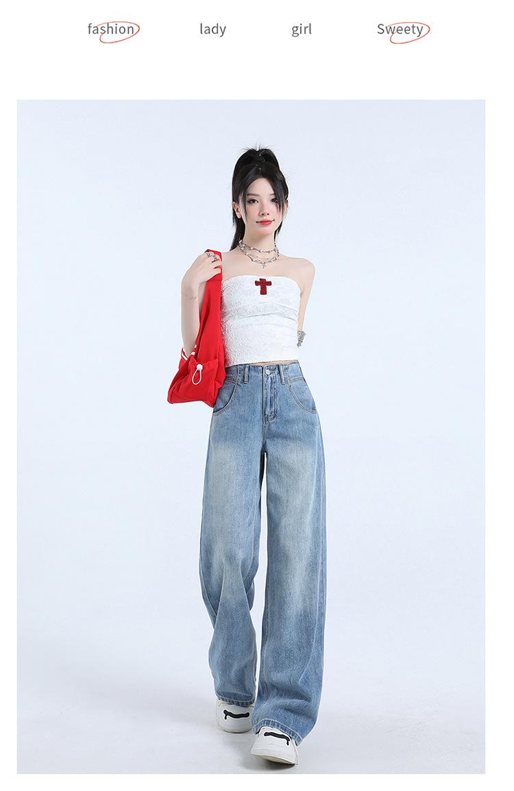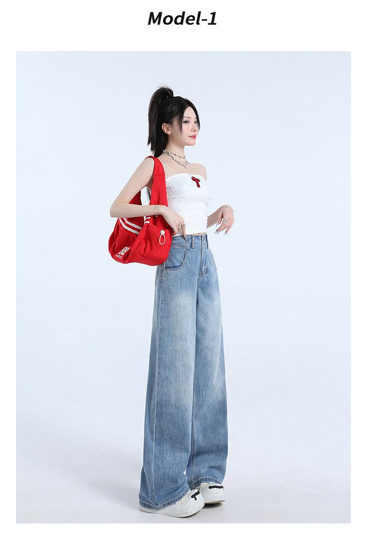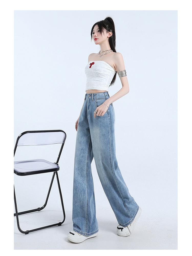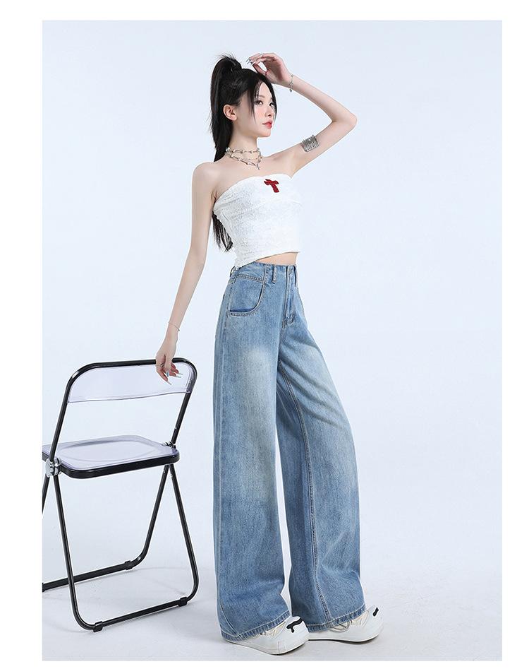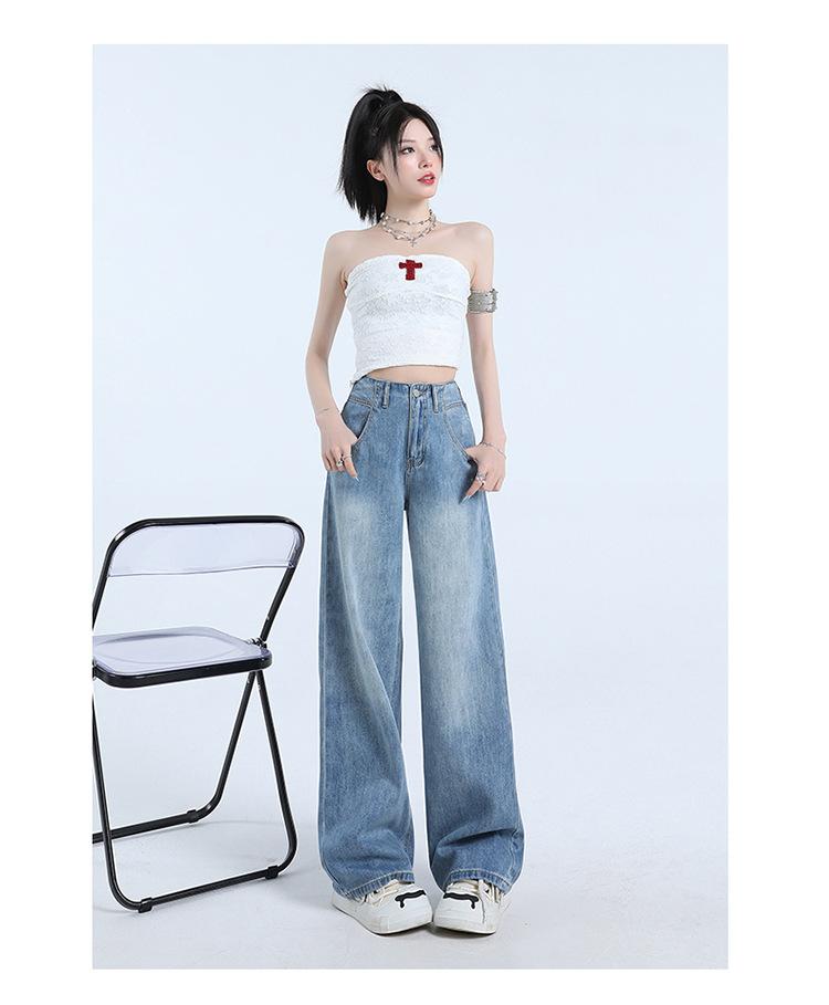 8347# Jeans Retro de Pierna Ancha para Mujer Nuevos de Cintura Alta Estilo Americano Pantalones Sueltos Antiguos Dipped de Spice Girl
