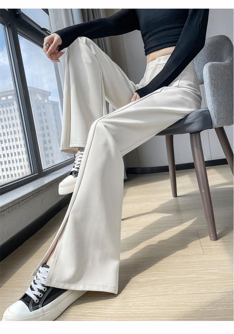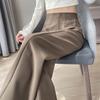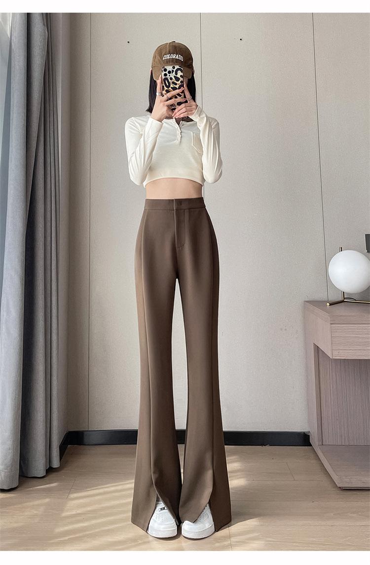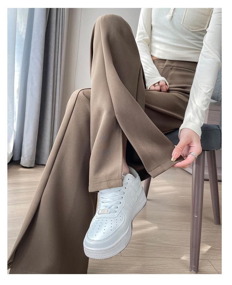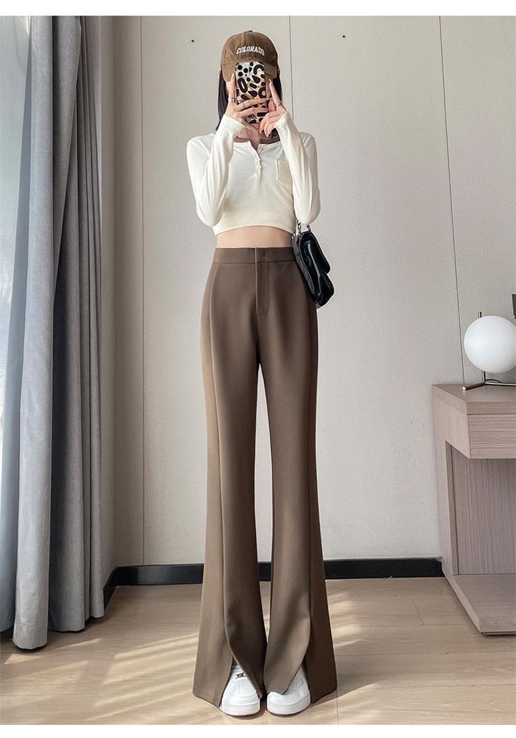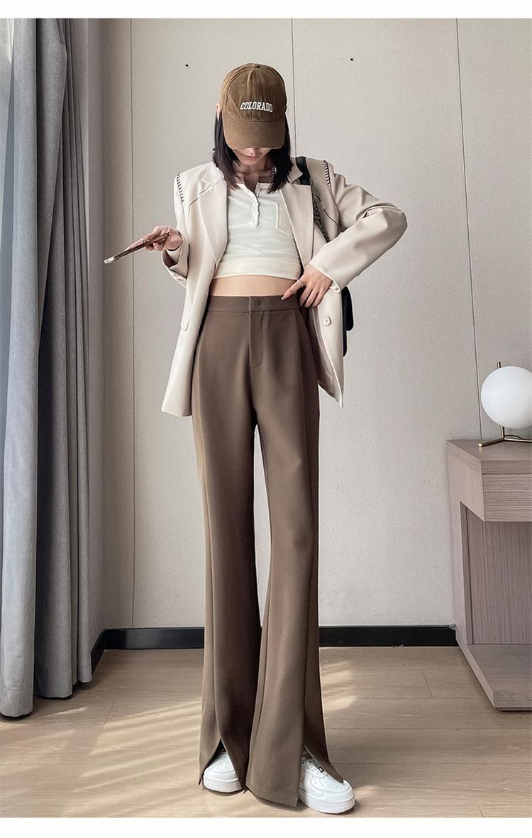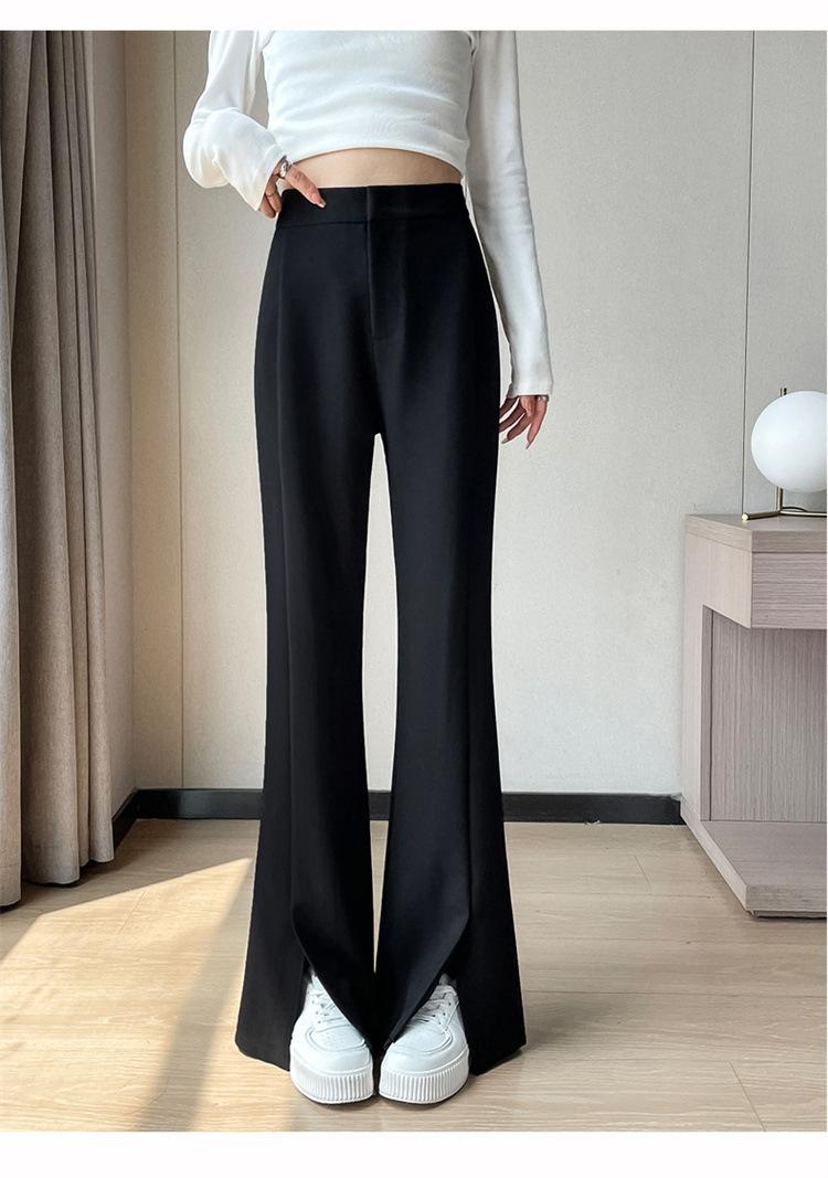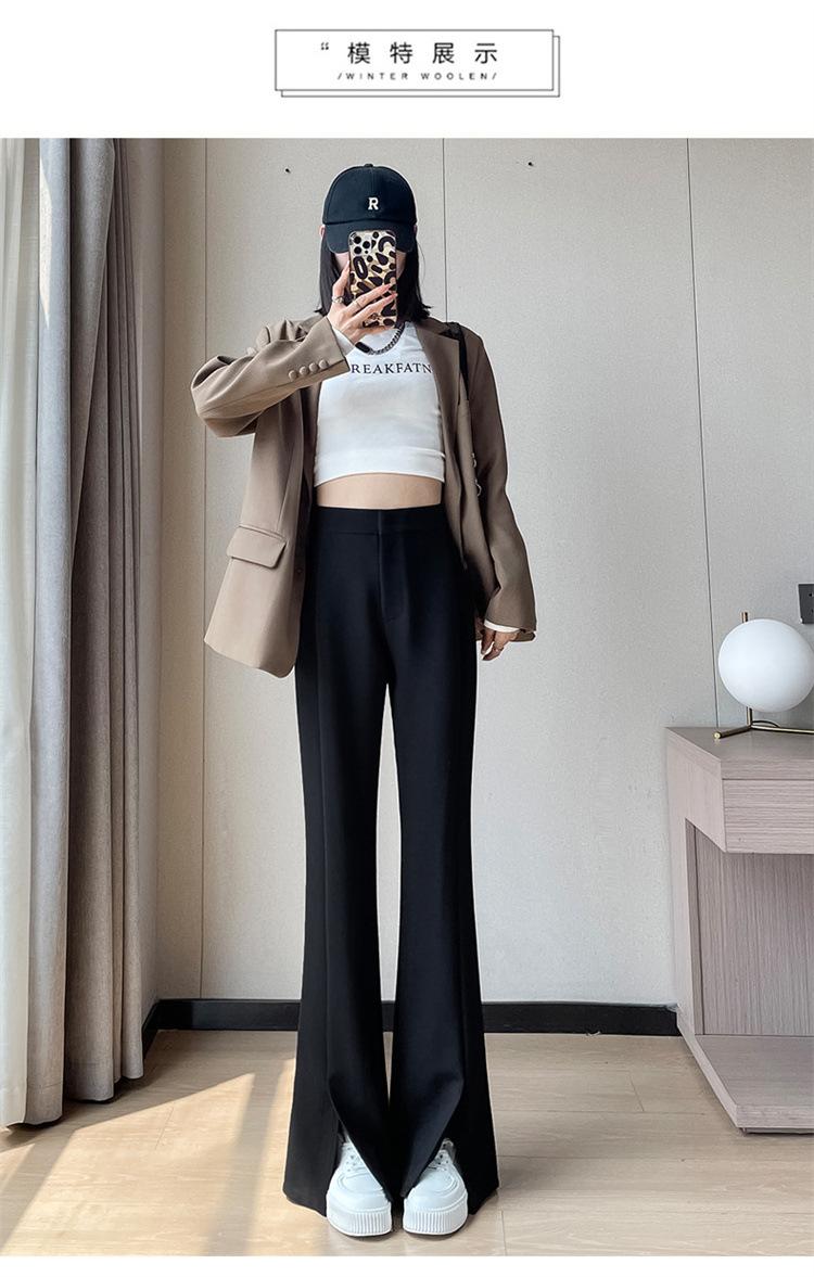 Pantalones de traje de terciopelo con abertura Otoño e Invierno 2025 Cintura alta Rectos Lana Pierna ancha Ligeramente acampanados Pantalones casuales para mujer