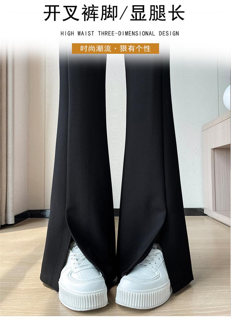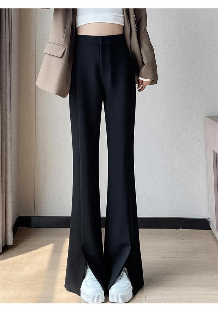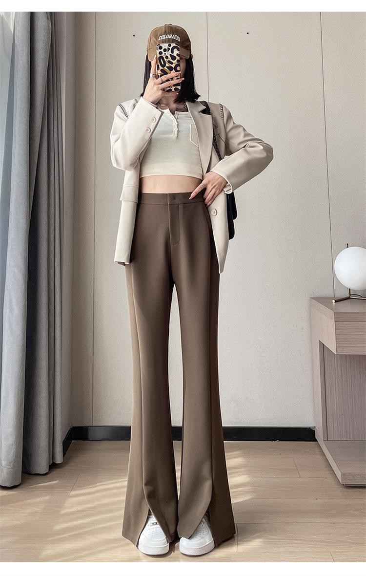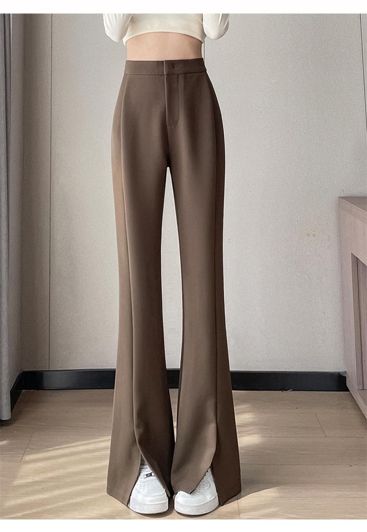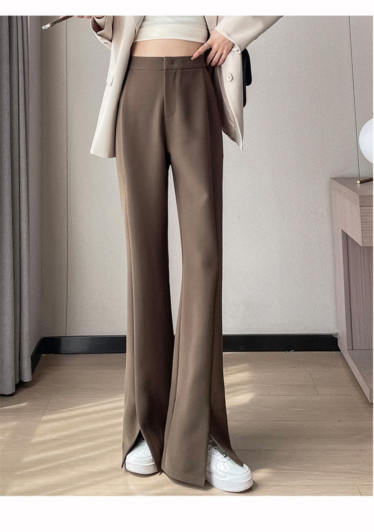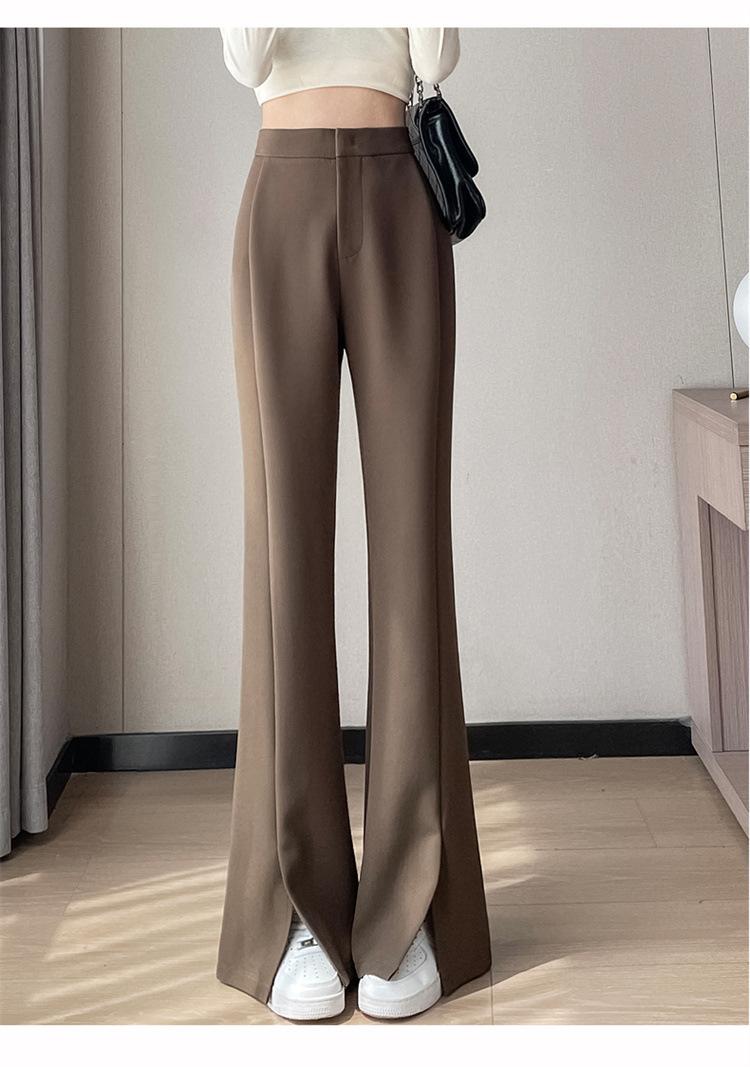 Pantalones de traje de terciopelo con abertura Otoño e Invierno 2025 Cintura alta Rectos Lana Pierna ancha Ligeramente acampanados Pantalones casuales para mujer