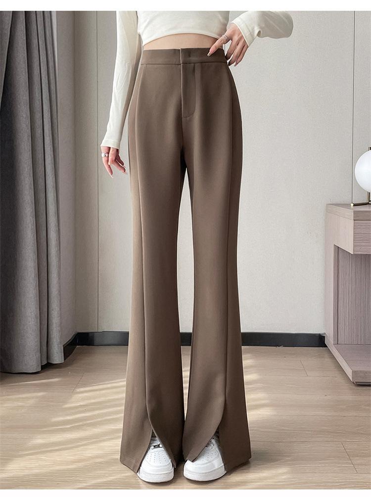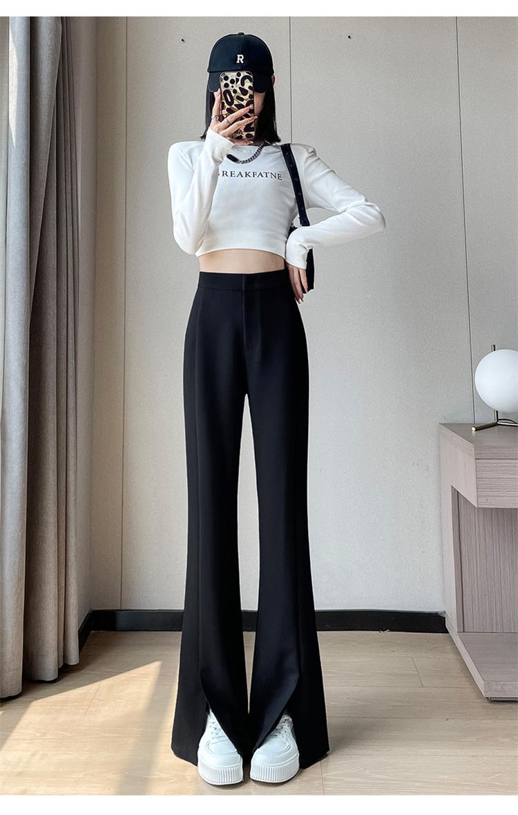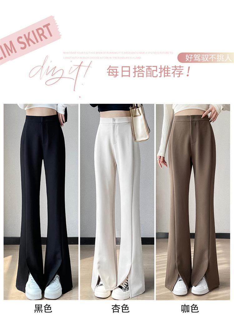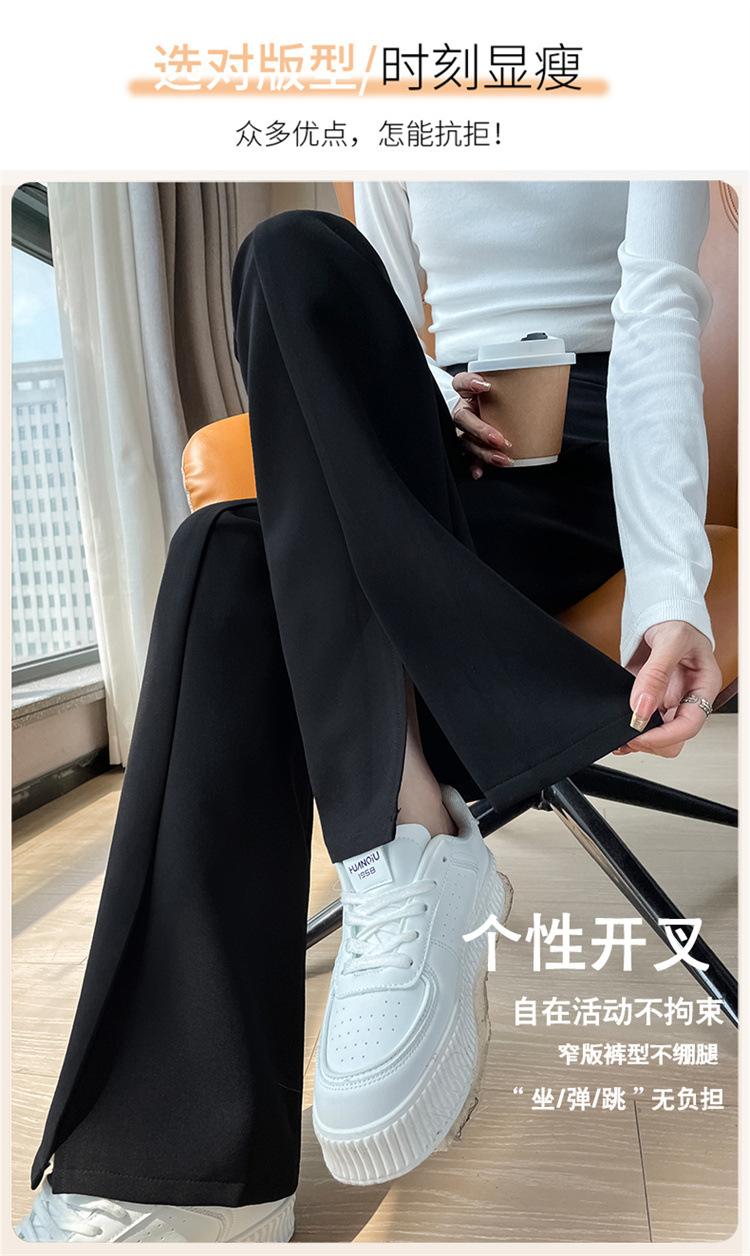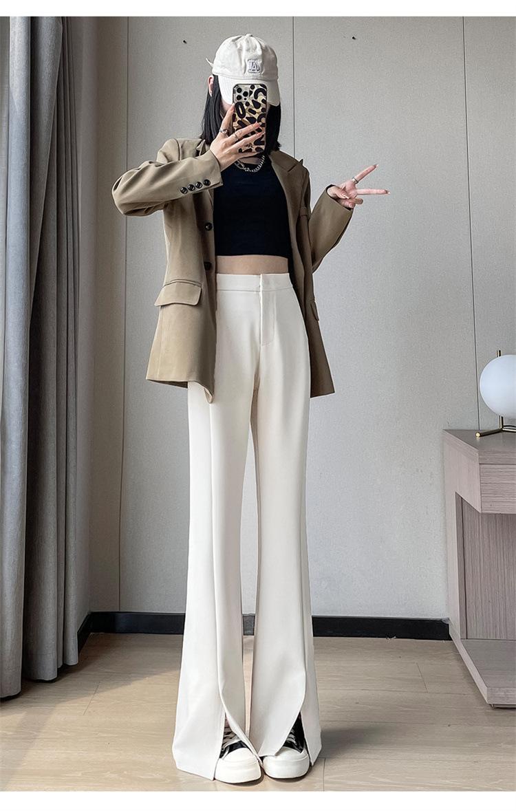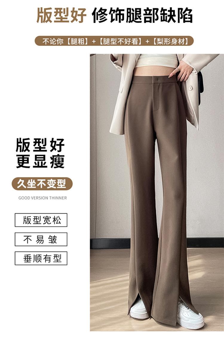 Pantalones de traje de terciopelo con abertura Otoño e Invierno 2025 Cintura alta Rectos Lana Pierna ancha Ligeramente acampanados Pantalones casuales para mujer