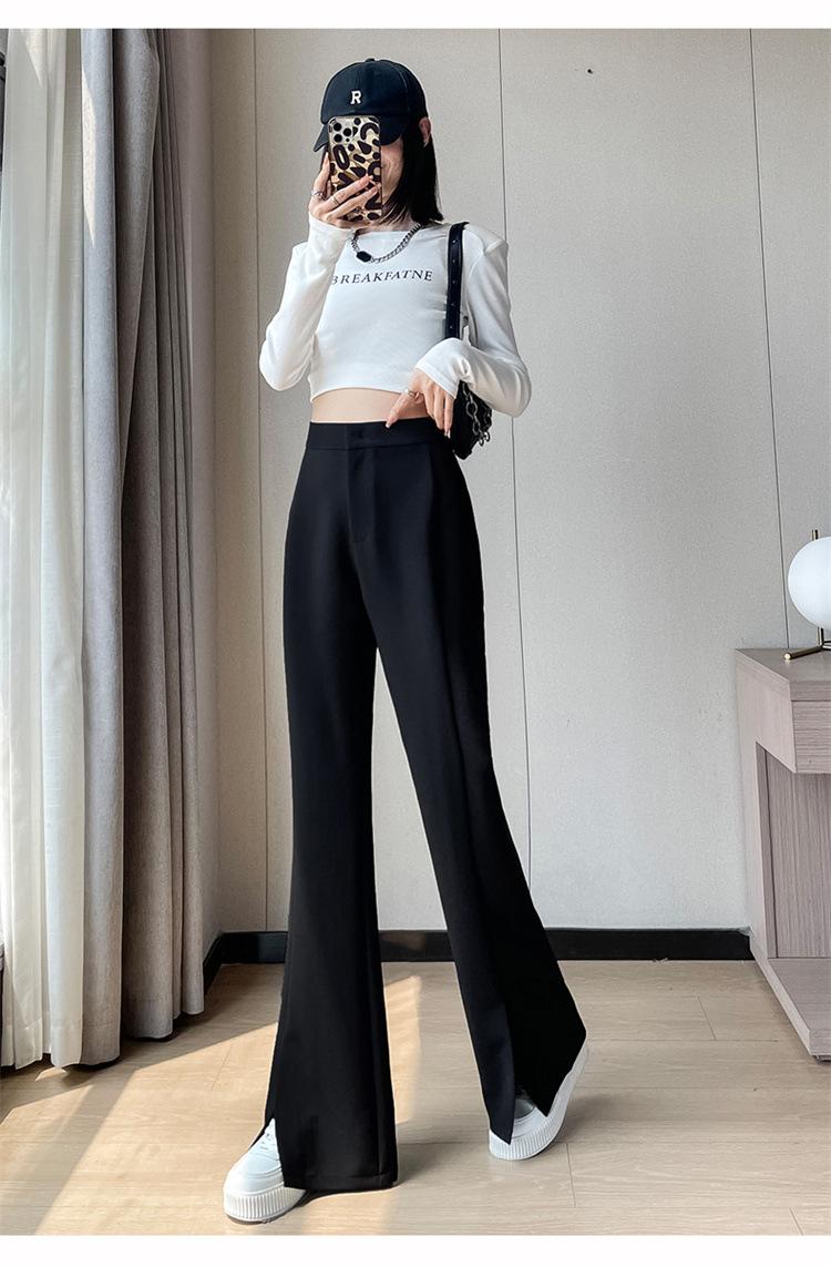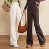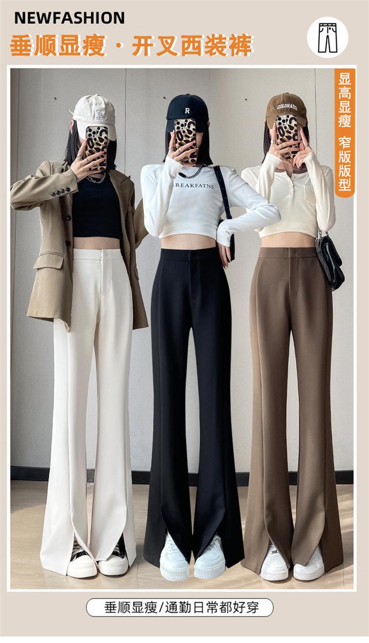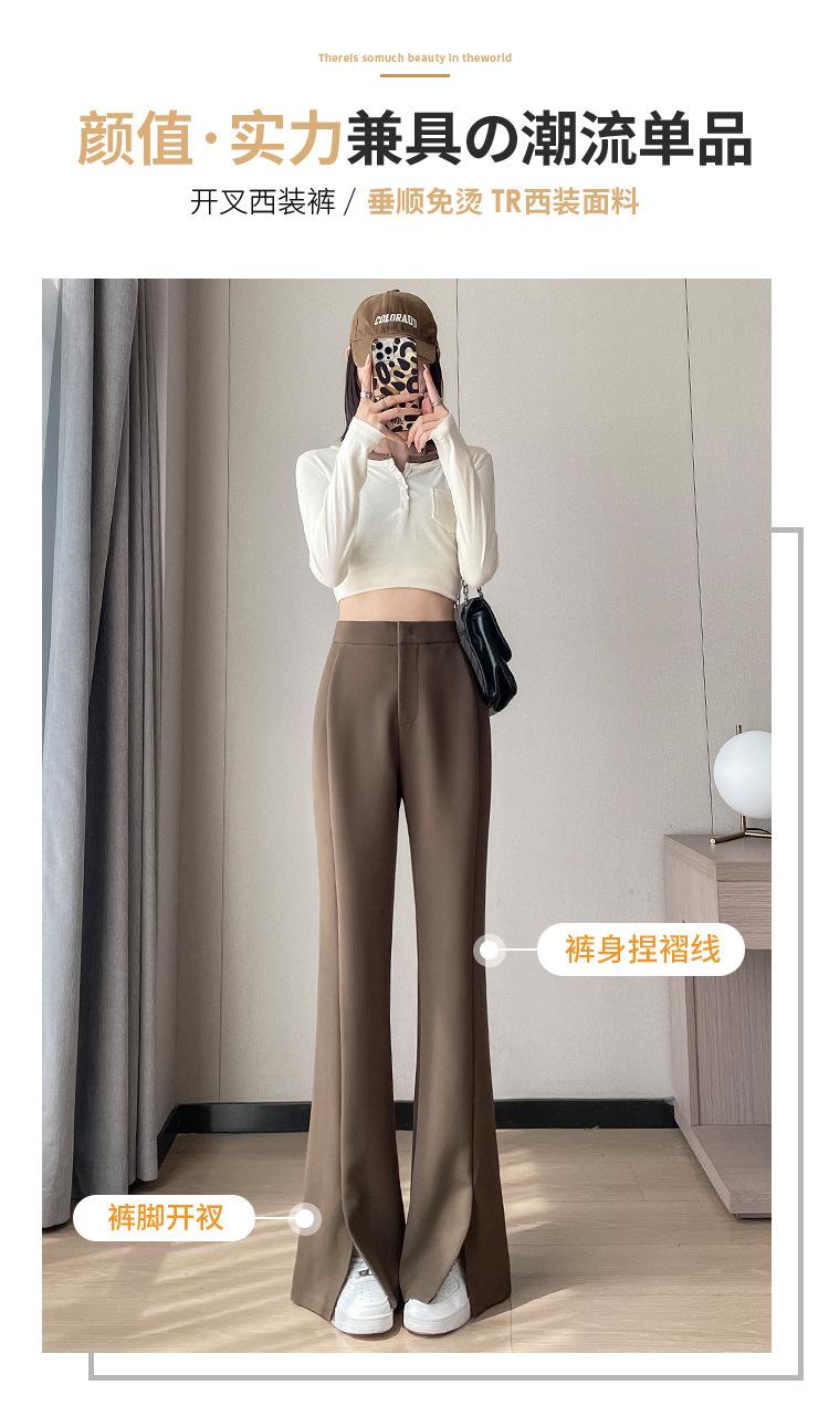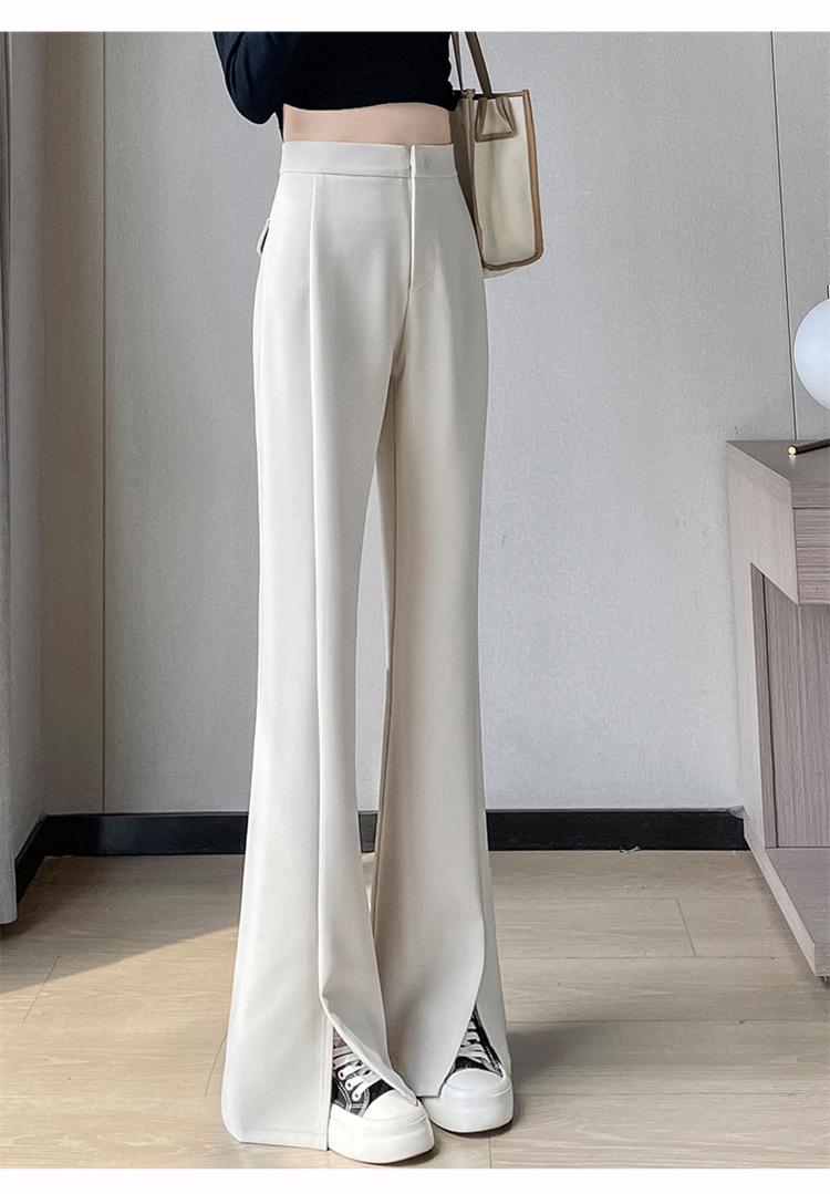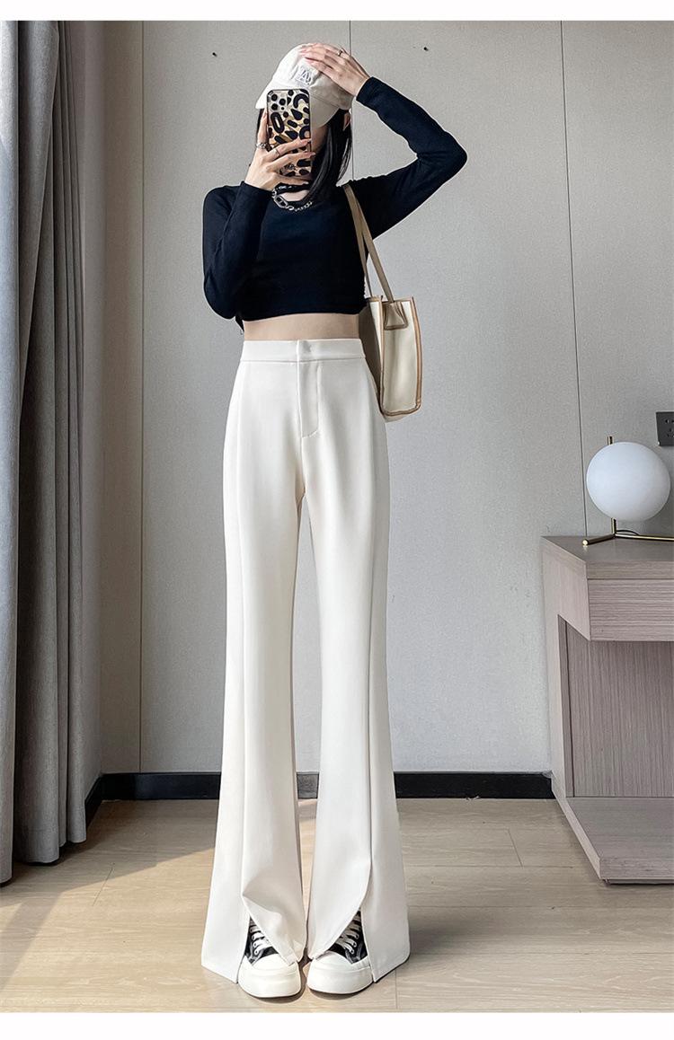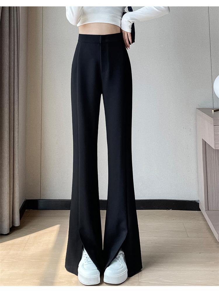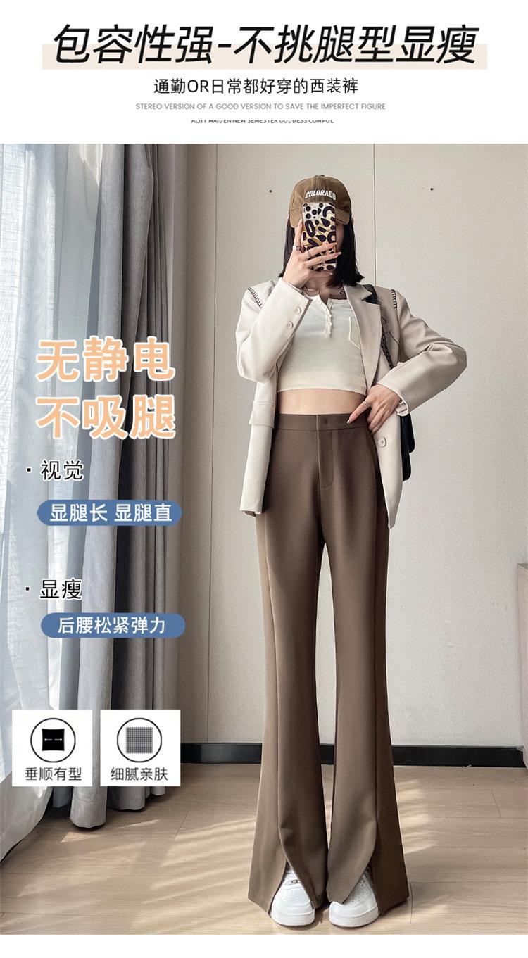 Pantalones de traje de terciopelo con abertura Otoño e Invierno 2025 Cintura alta Rectos Lana Pierna ancha Ligeramente acampanados Pantalones casuales para mujer