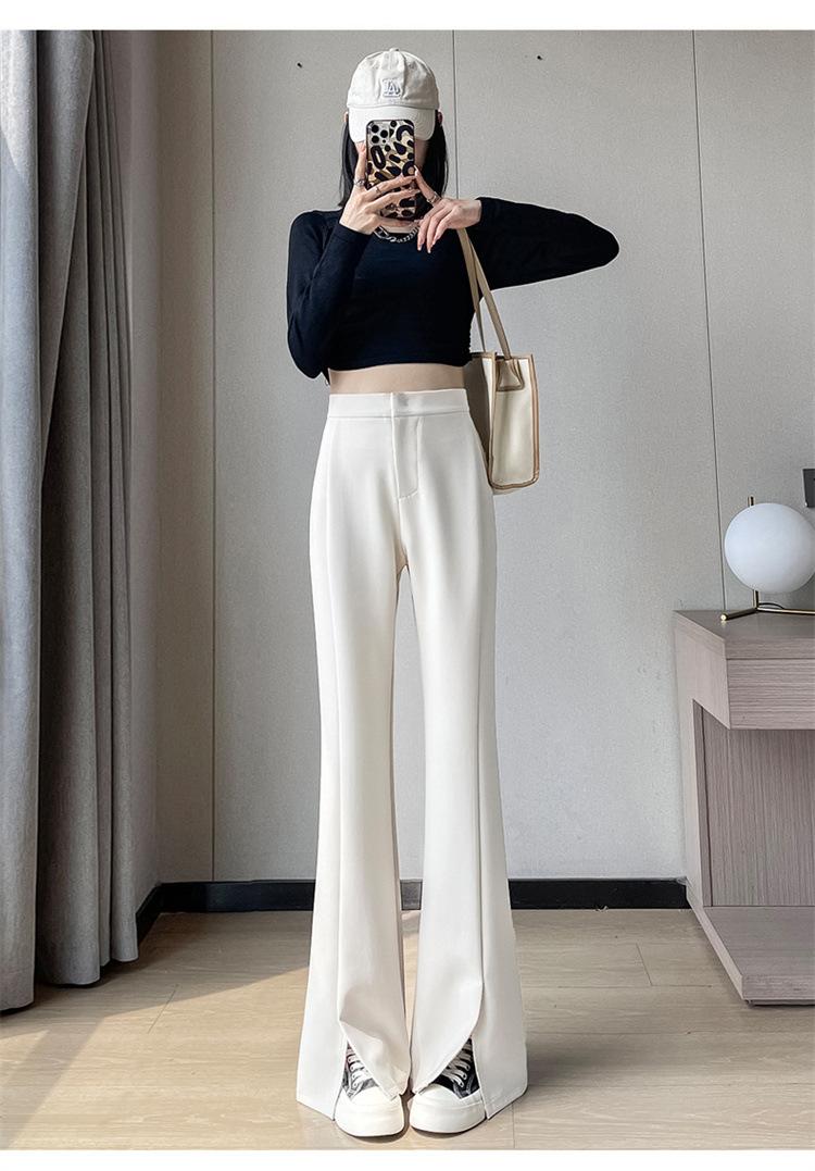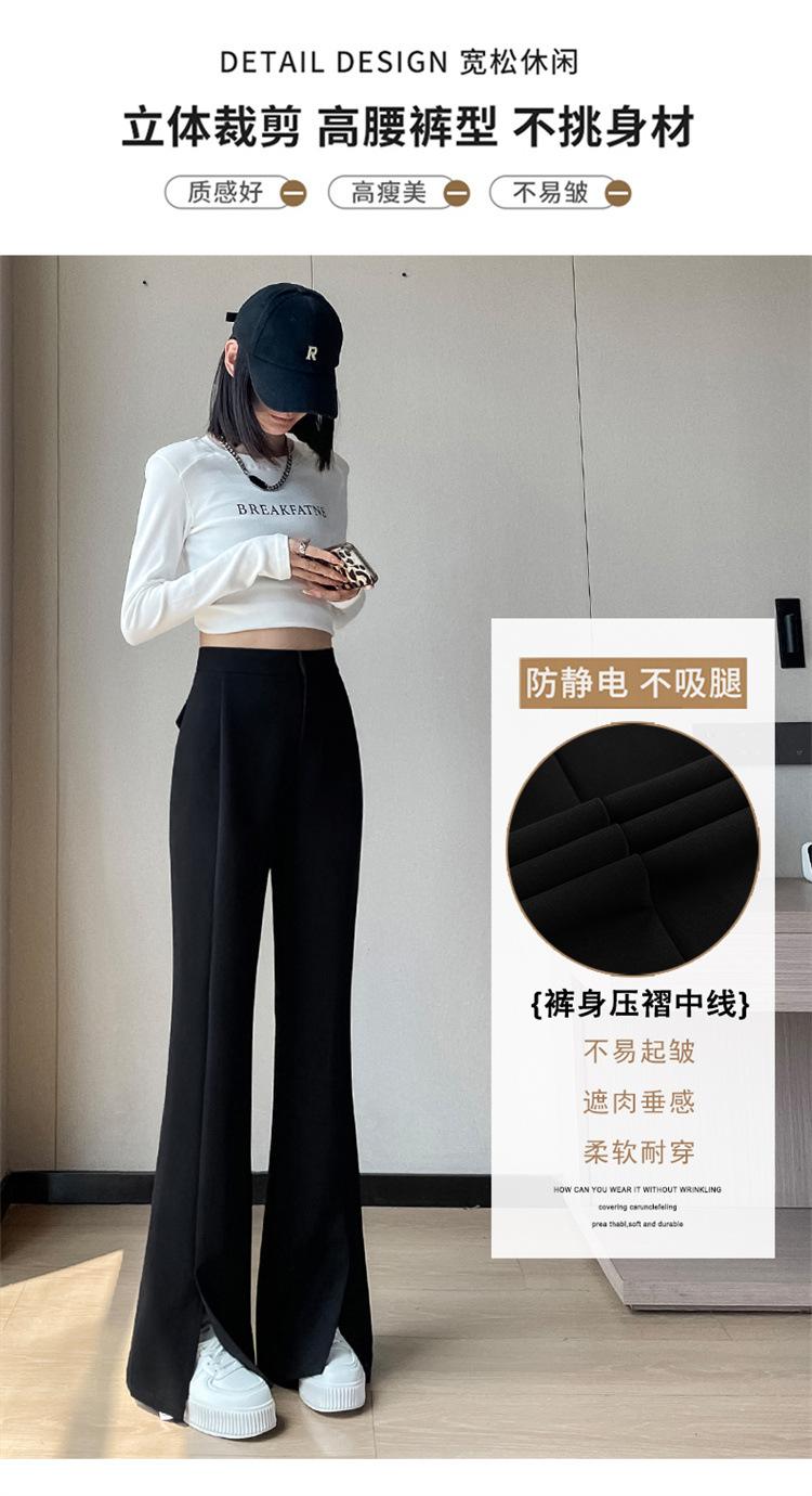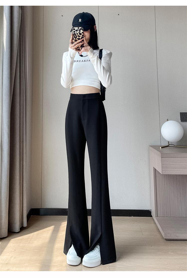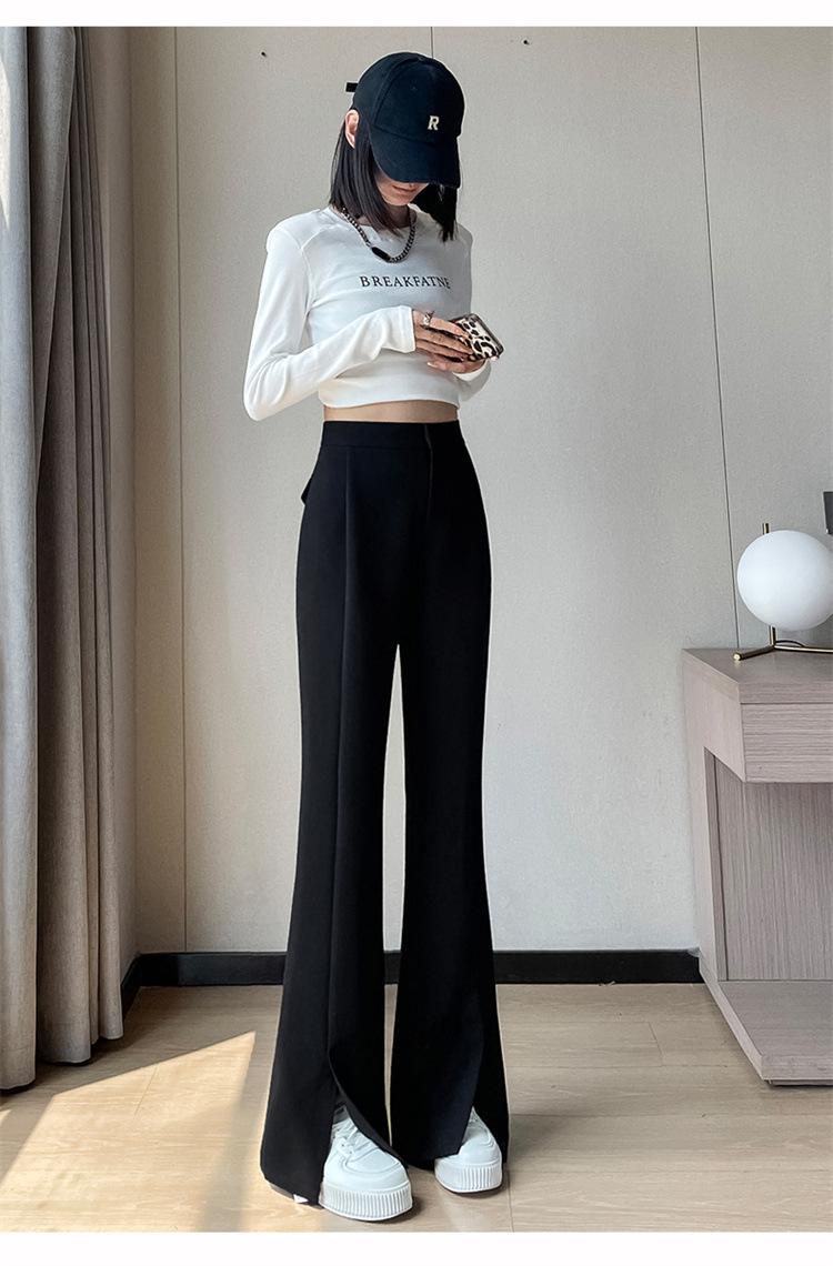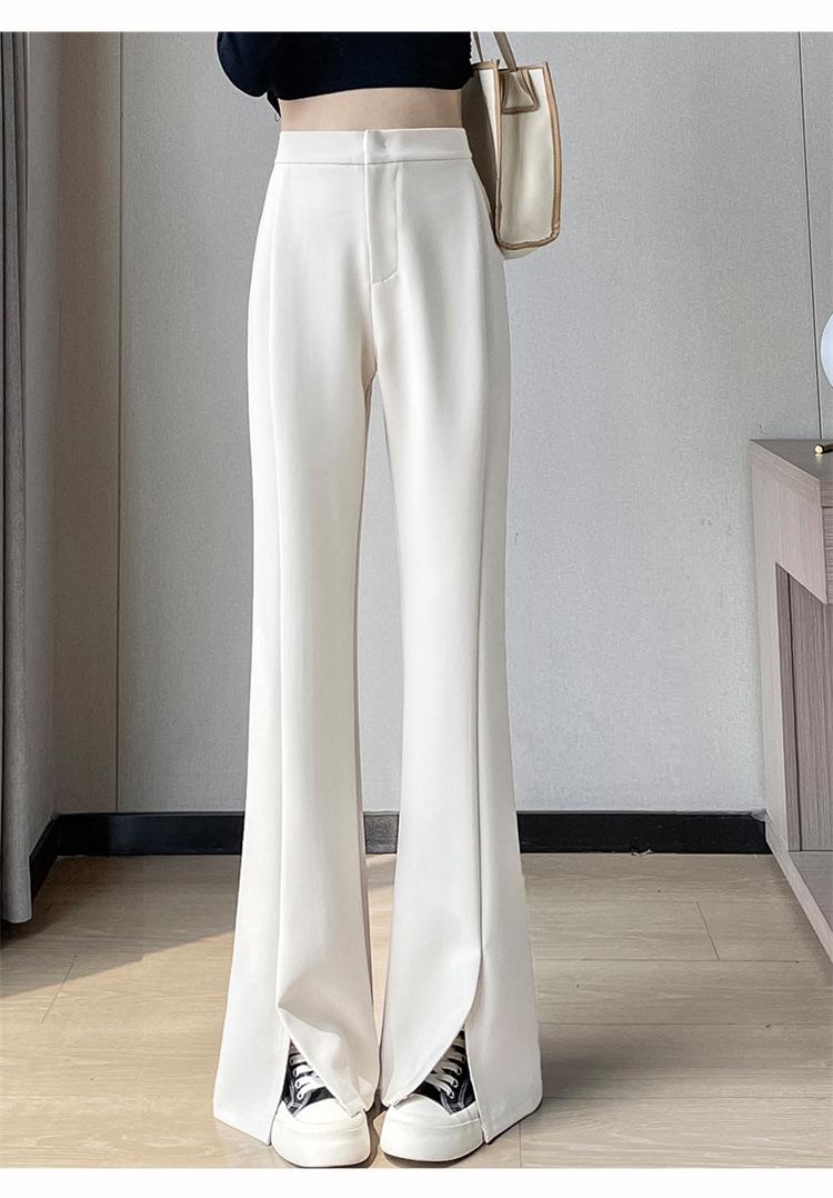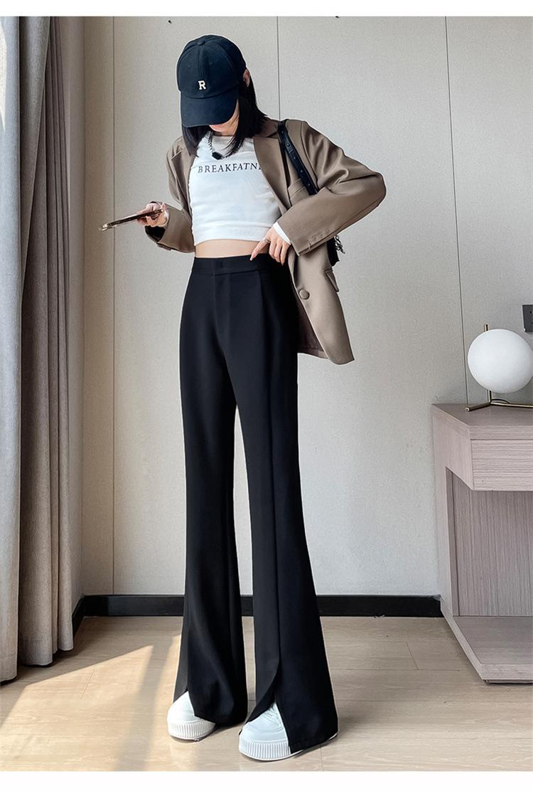 Pantalones de traje de terciopelo con abertura Otoño e Invierno 2025 Cintura alta Rectos Lana Pierna ancha Ligeramente acampanados Pantalones casuales para mujer
