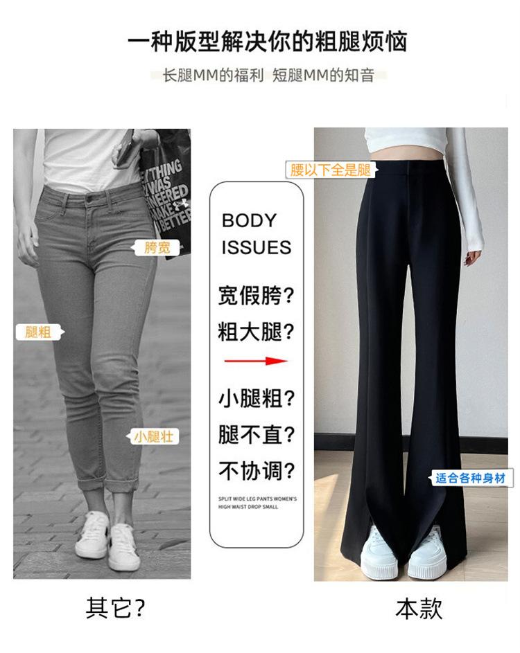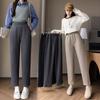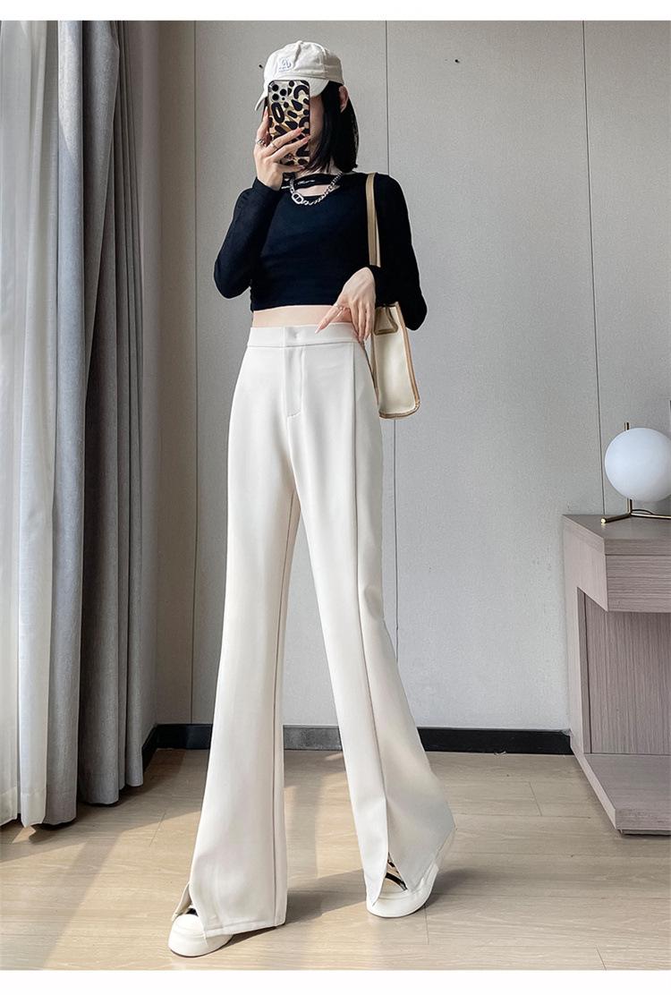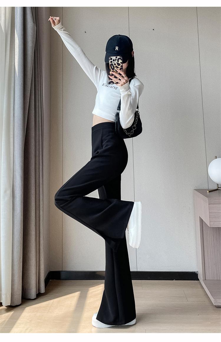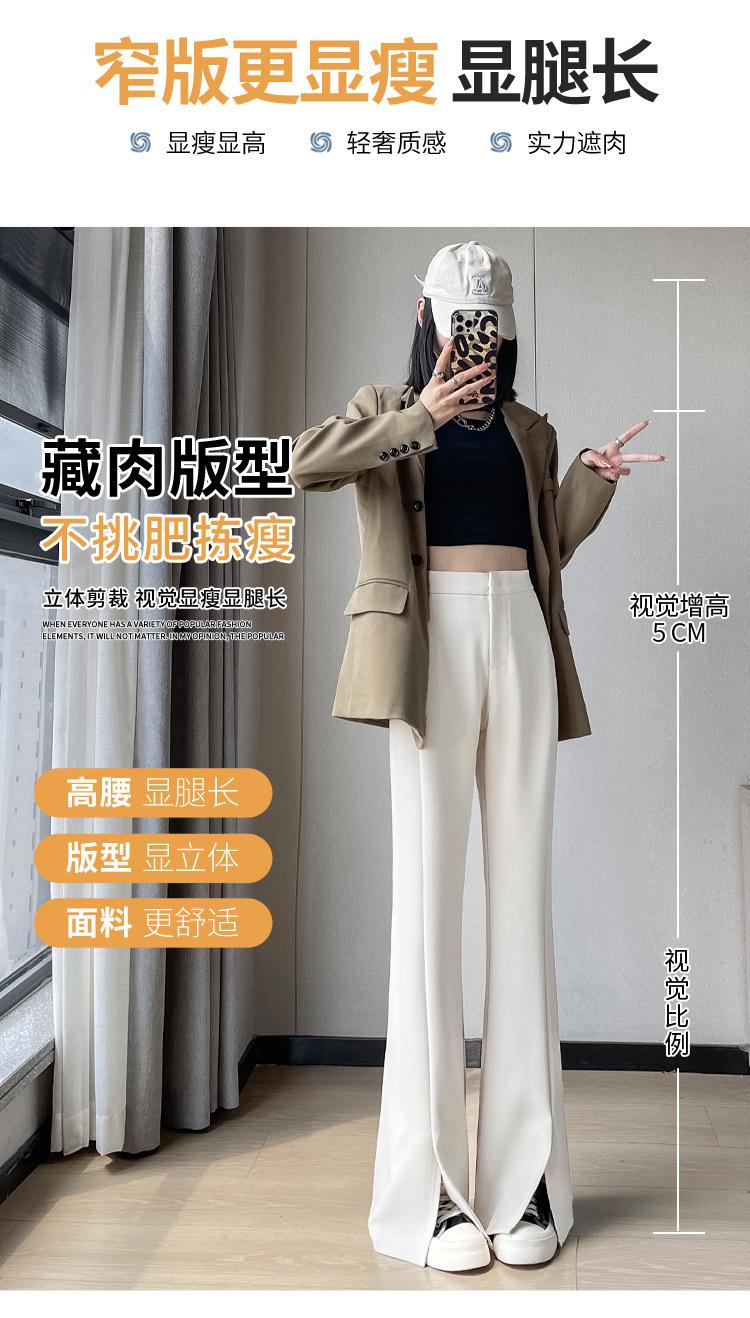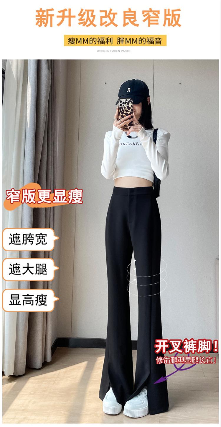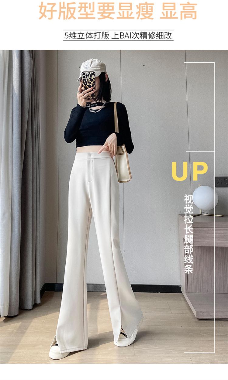 Pantalones de traje de terciopelo con abertura Otoño e Invierno 2025 Cintura alta Rectos Lana Pierna ancha Ligeramente acampanados Pantalones casuales para mujer