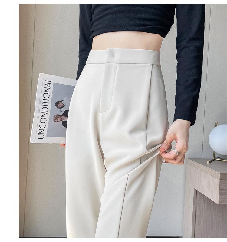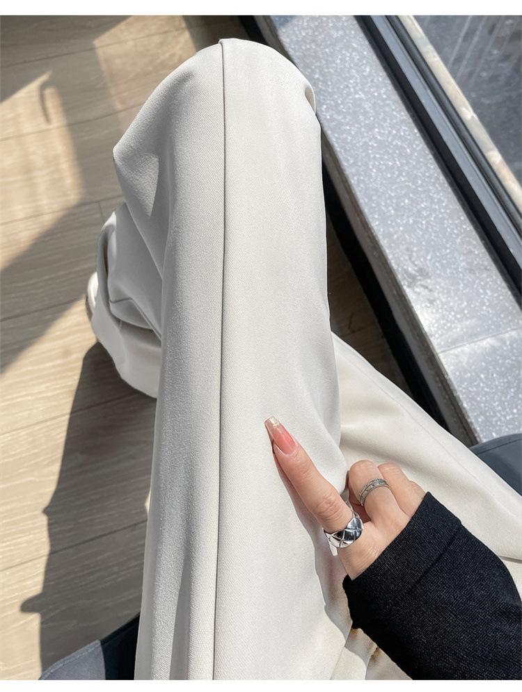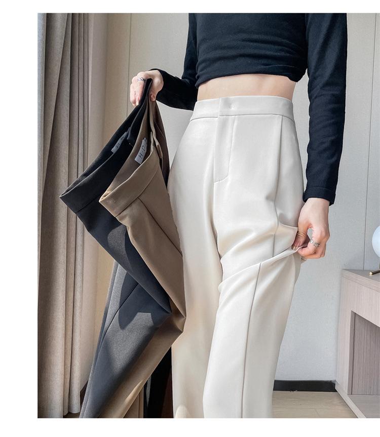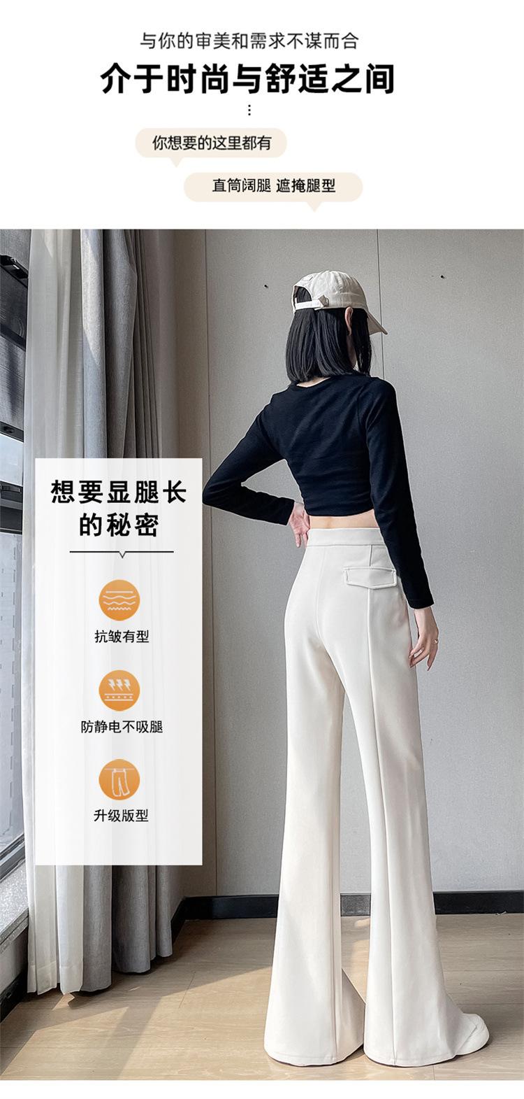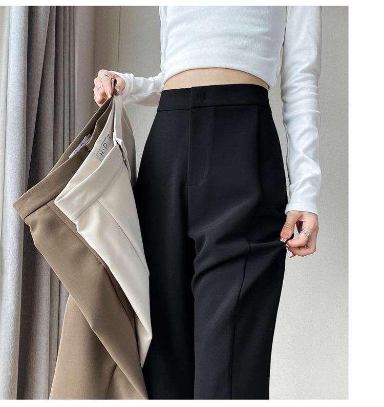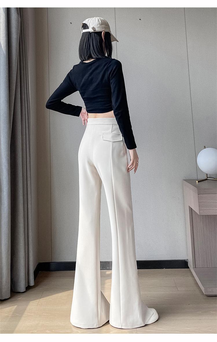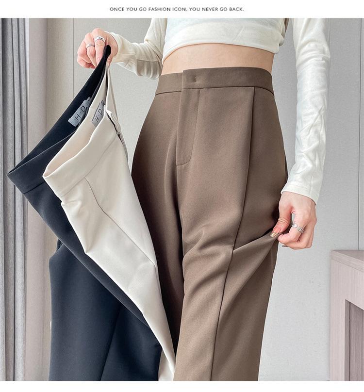 Pantalones de traje de terciopelo con abertura Otoño e Invierno 2025 Cintura alta Rectos Lana Pierna ancha Ligeramente acampanados Pantalones casuales para mujer