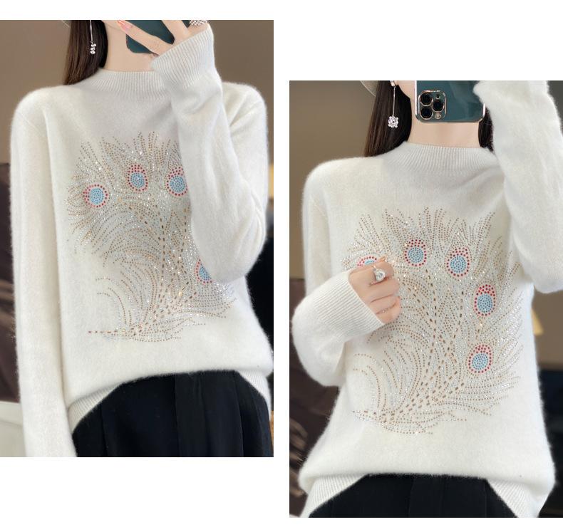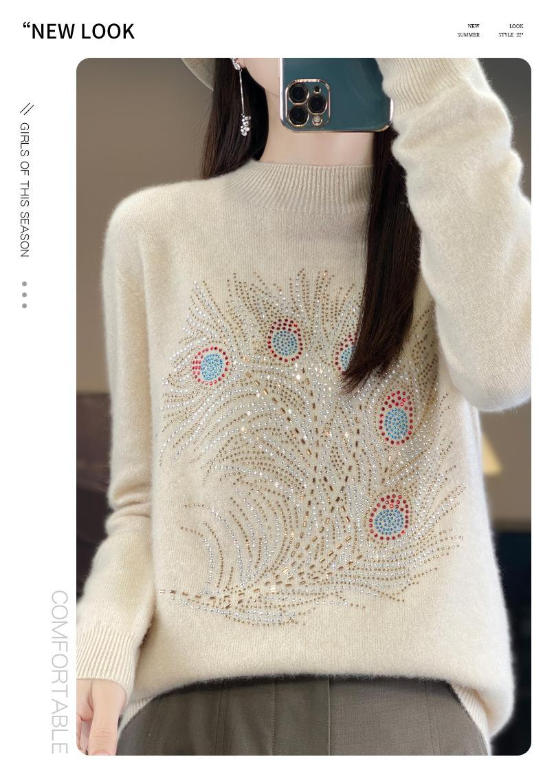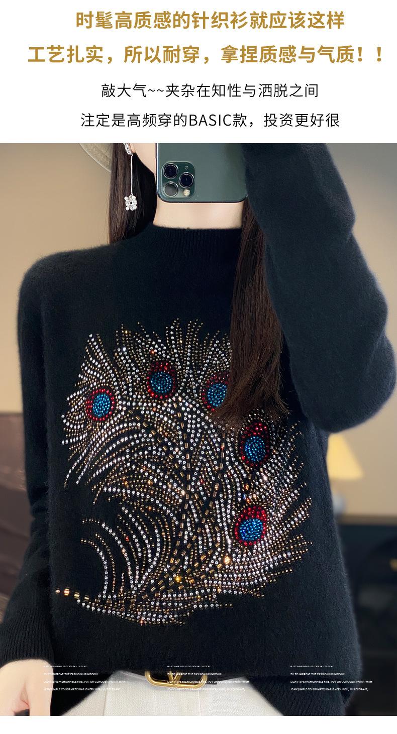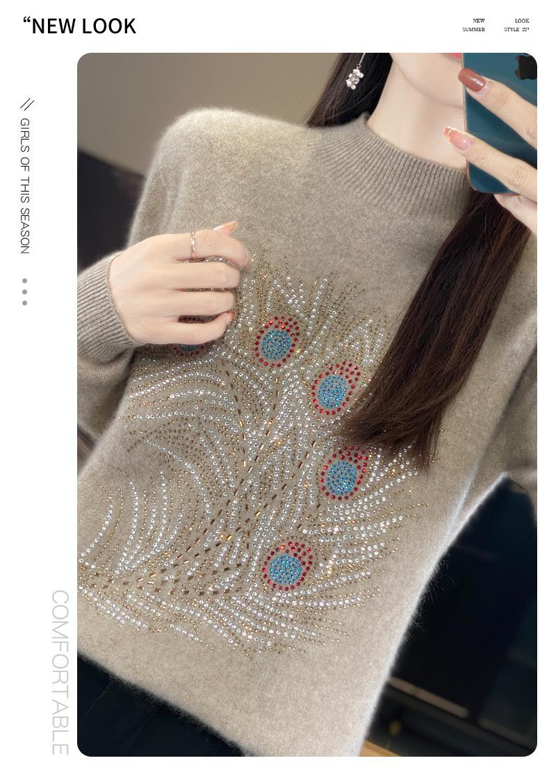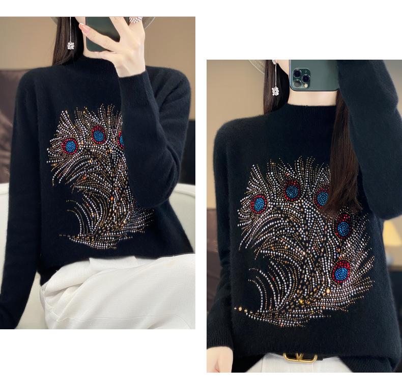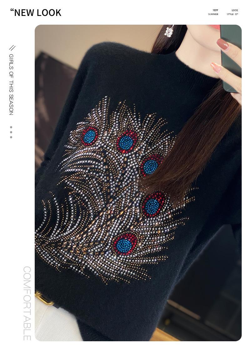 Tops Otoño e Invierno Nuevo para Mujer Andy Terciopelo Diamante Caliente Suéter Suelto Tejido Invierno Medio Cuello Alto Tejido Camiseta Base 2025