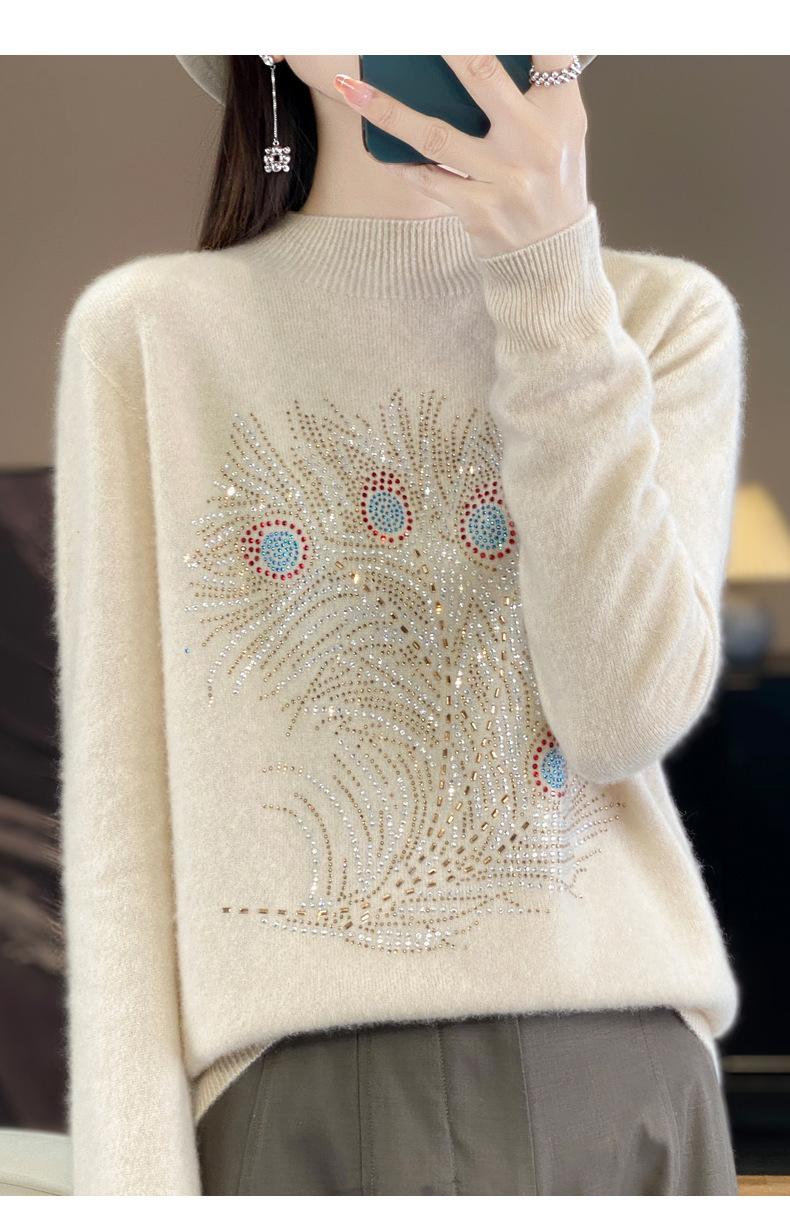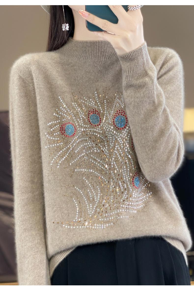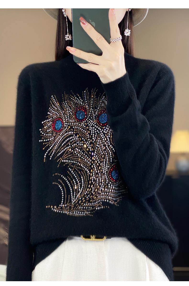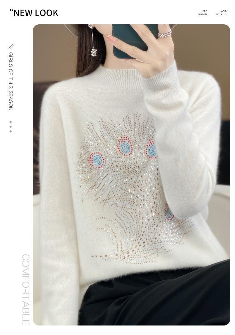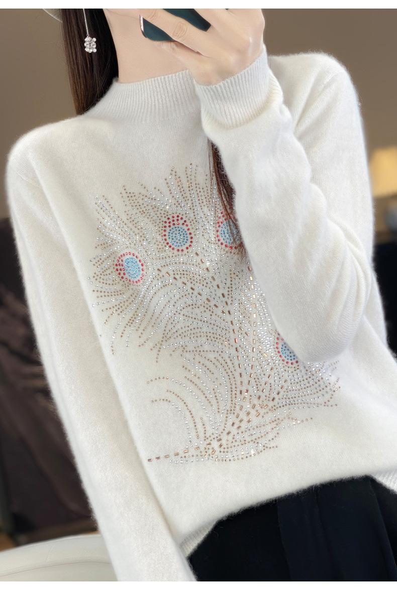 Tops Otoño e Invierno Nuevo para Mujer Andy Terciopelo Diamante Caliente Suéter Suelto Tejido Invierno Medio Cuello Alto Tejido Camiseta Base 2025