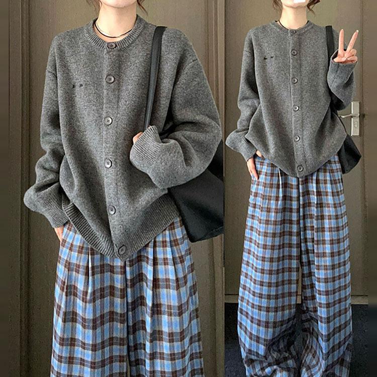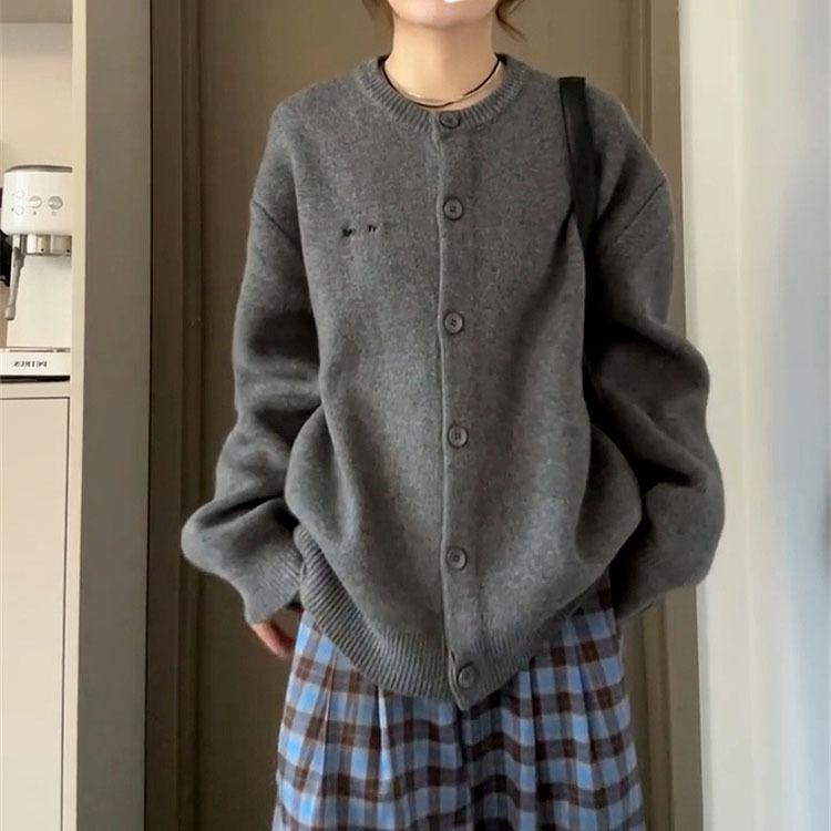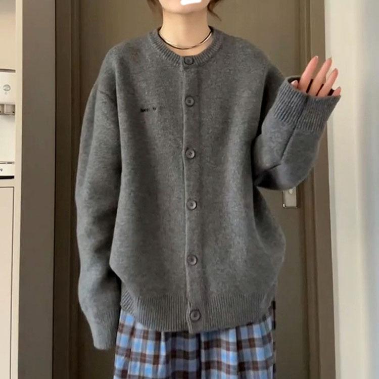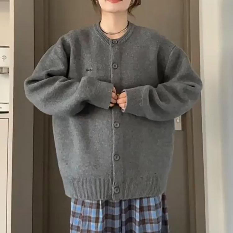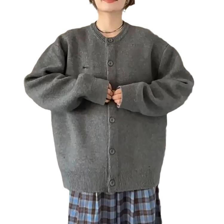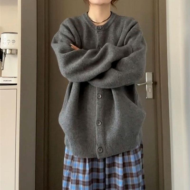 Suéter Cárdigan de Otoño Chaqueta Estilo Retro Universitario Gris Suave Relajado Americano Versátil para Mujer Invierno Top de Punto