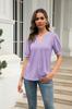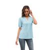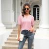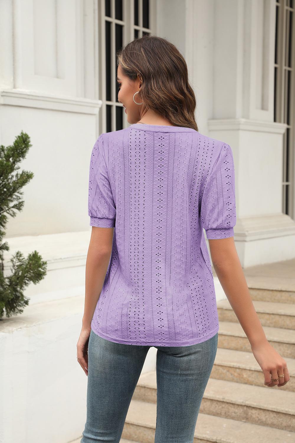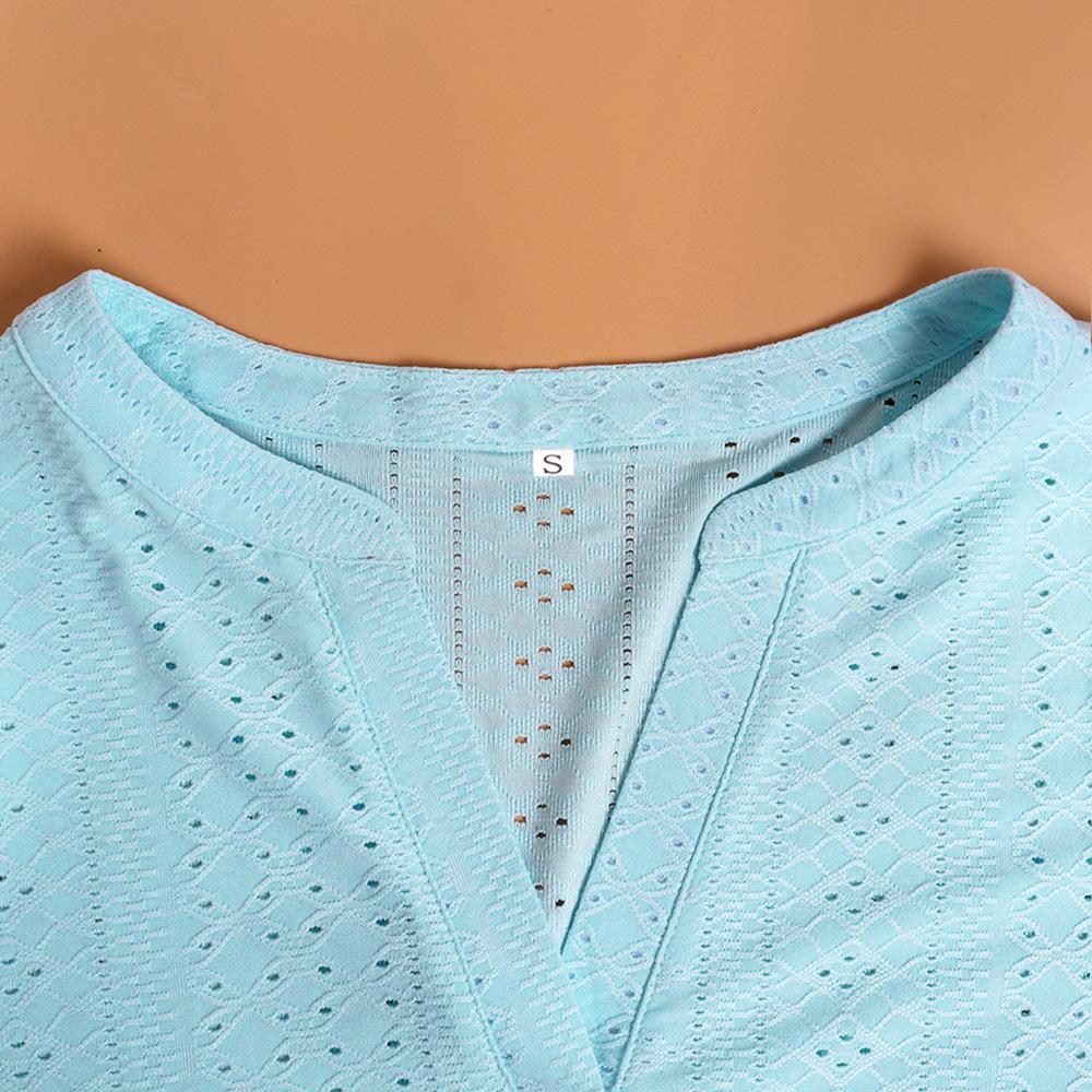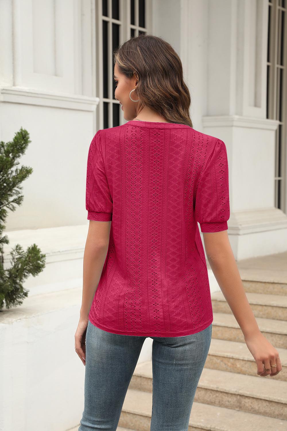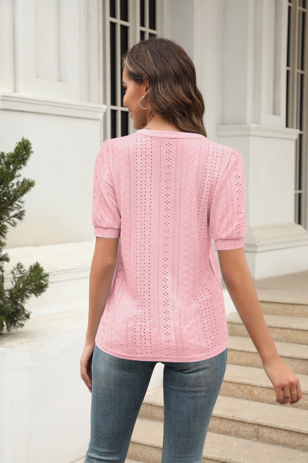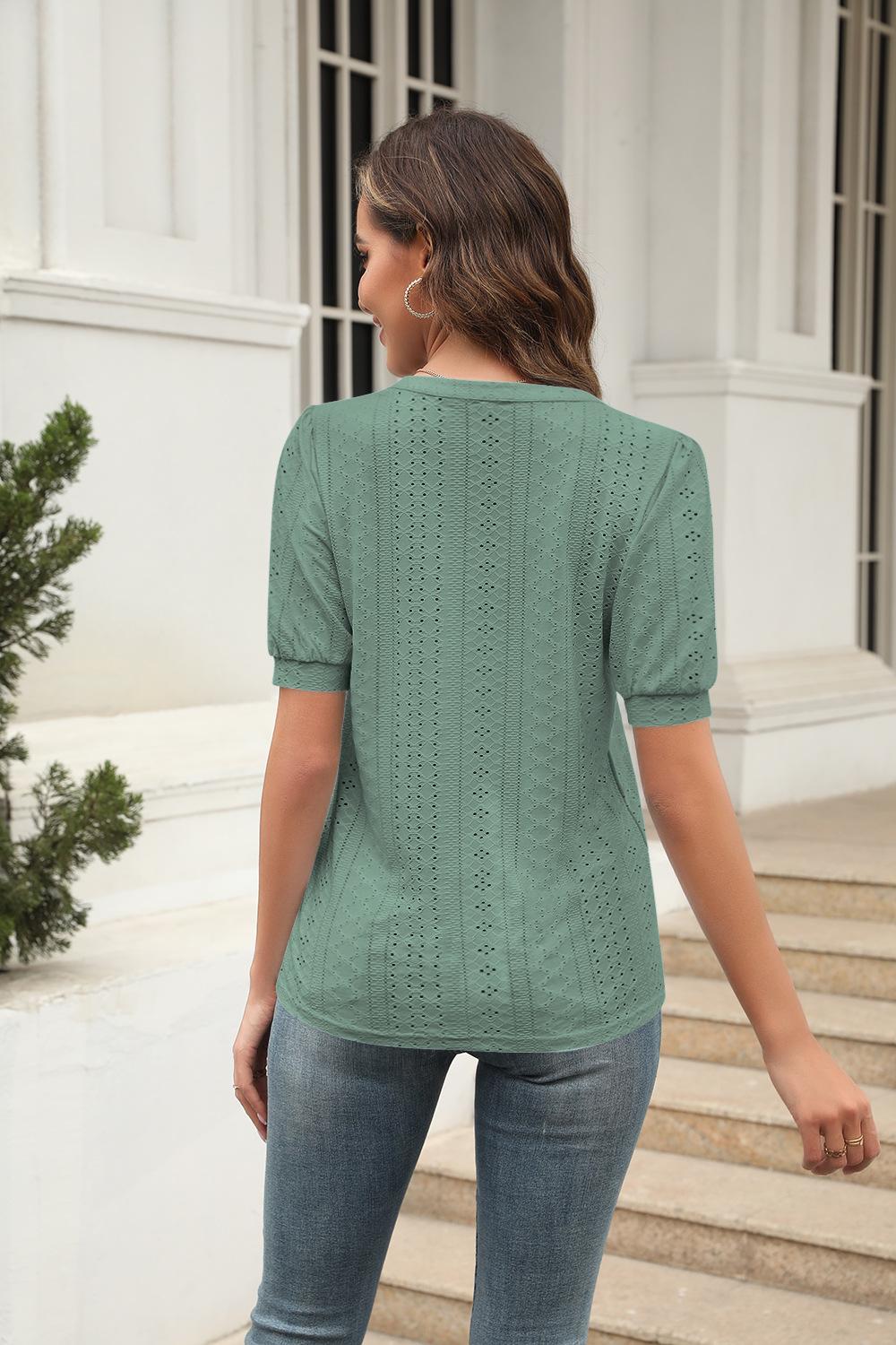 Camiseta Holgada de Verano Casual Europea y Americana 2023 con Cuello en V de Color Sólido Calada Manga Abullonada