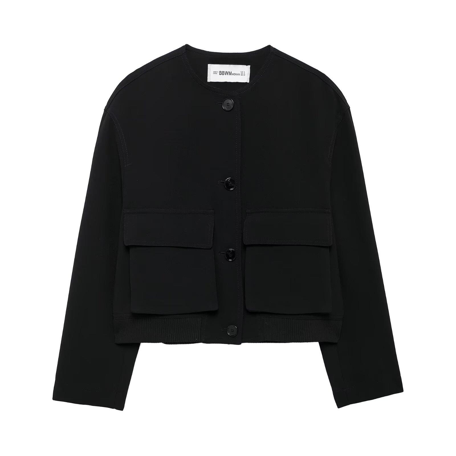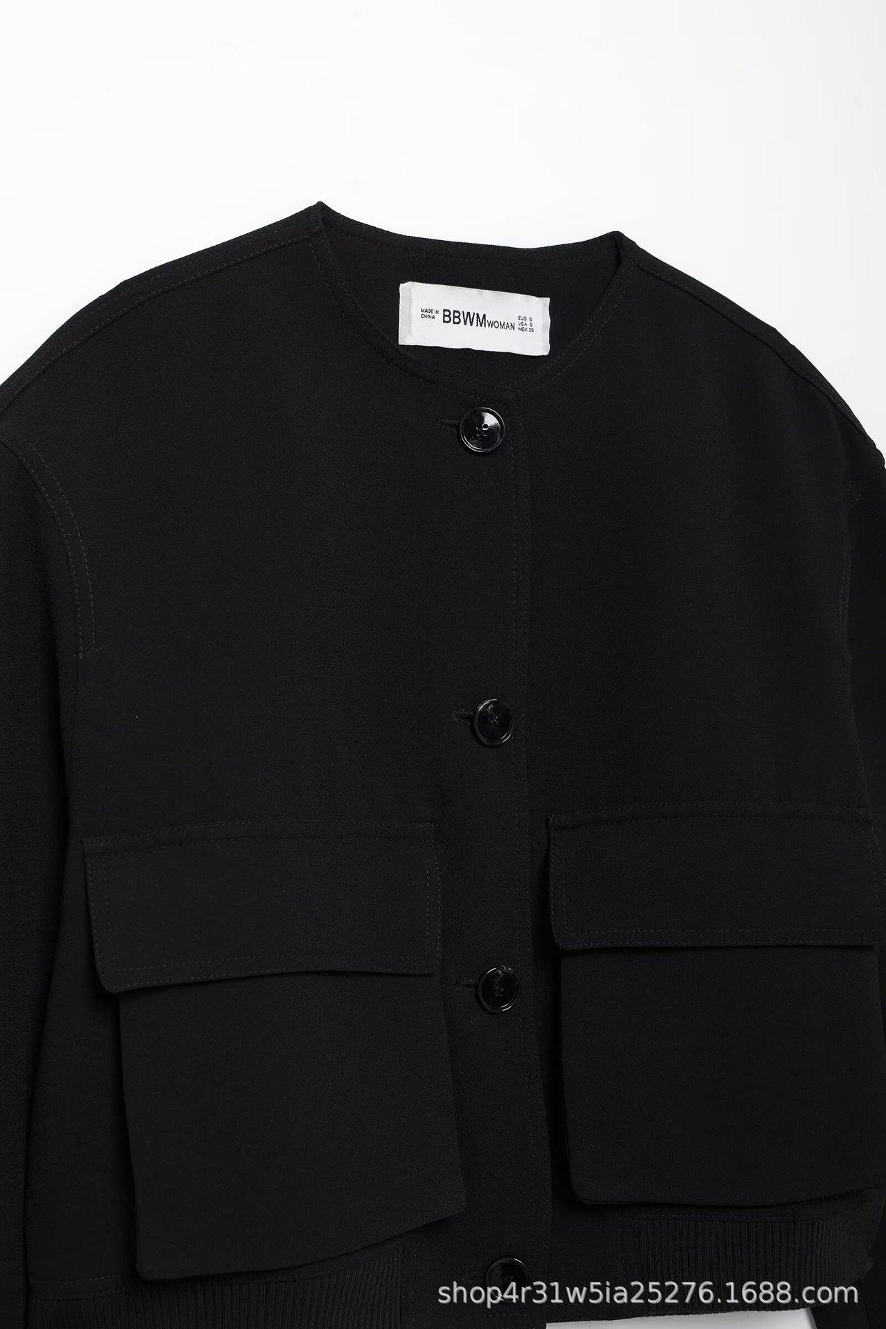 Venta al por mayor transfronteriza europea y americana 2025 Primavera Nueva Chaqueta corta urbana casual de mujer con bolsillo grande