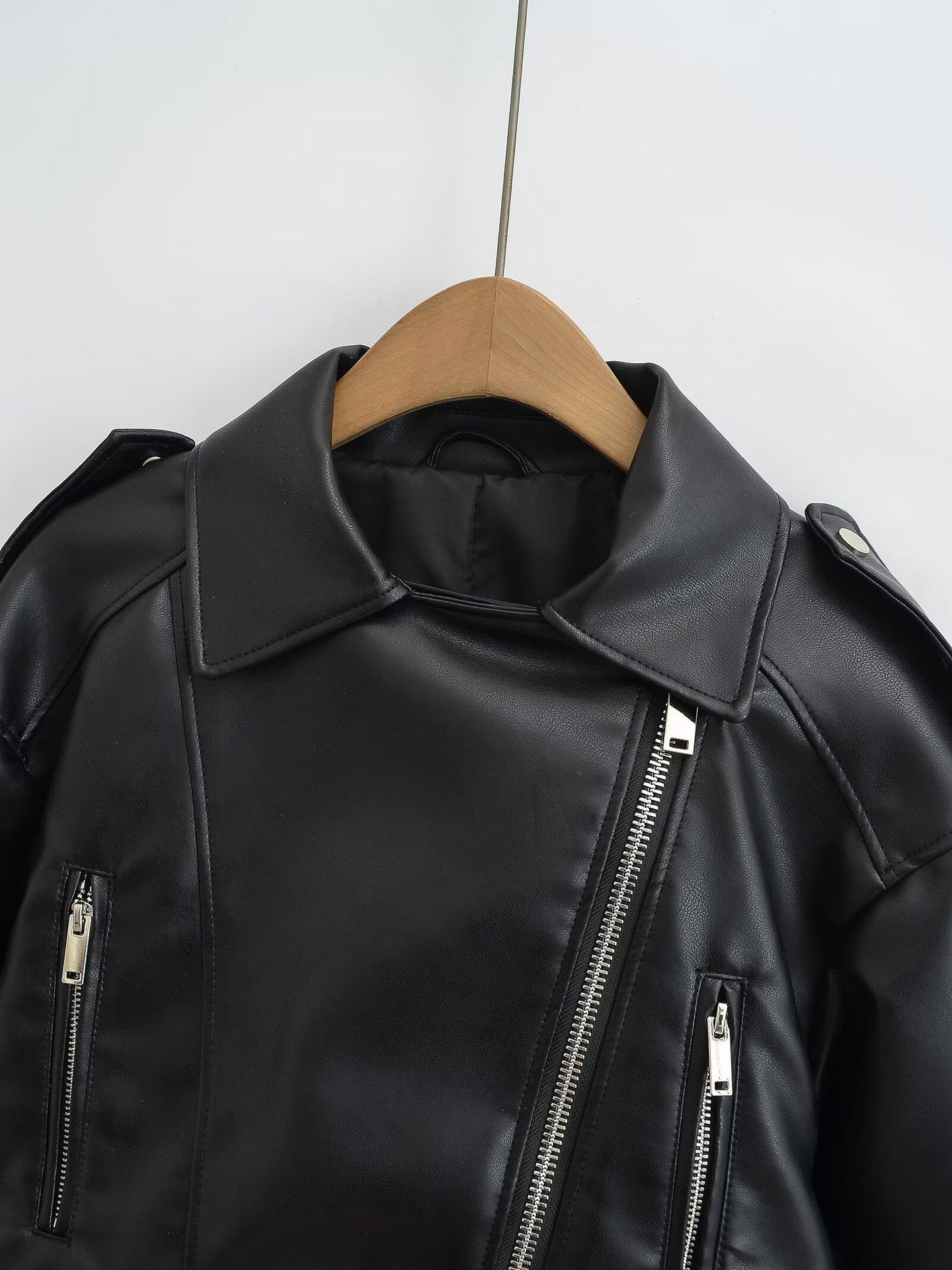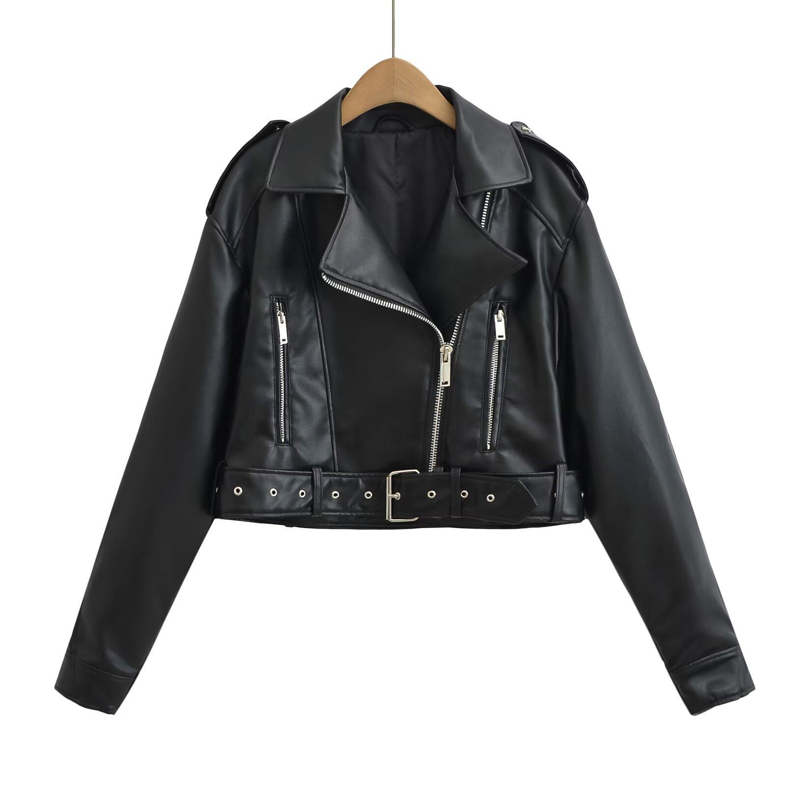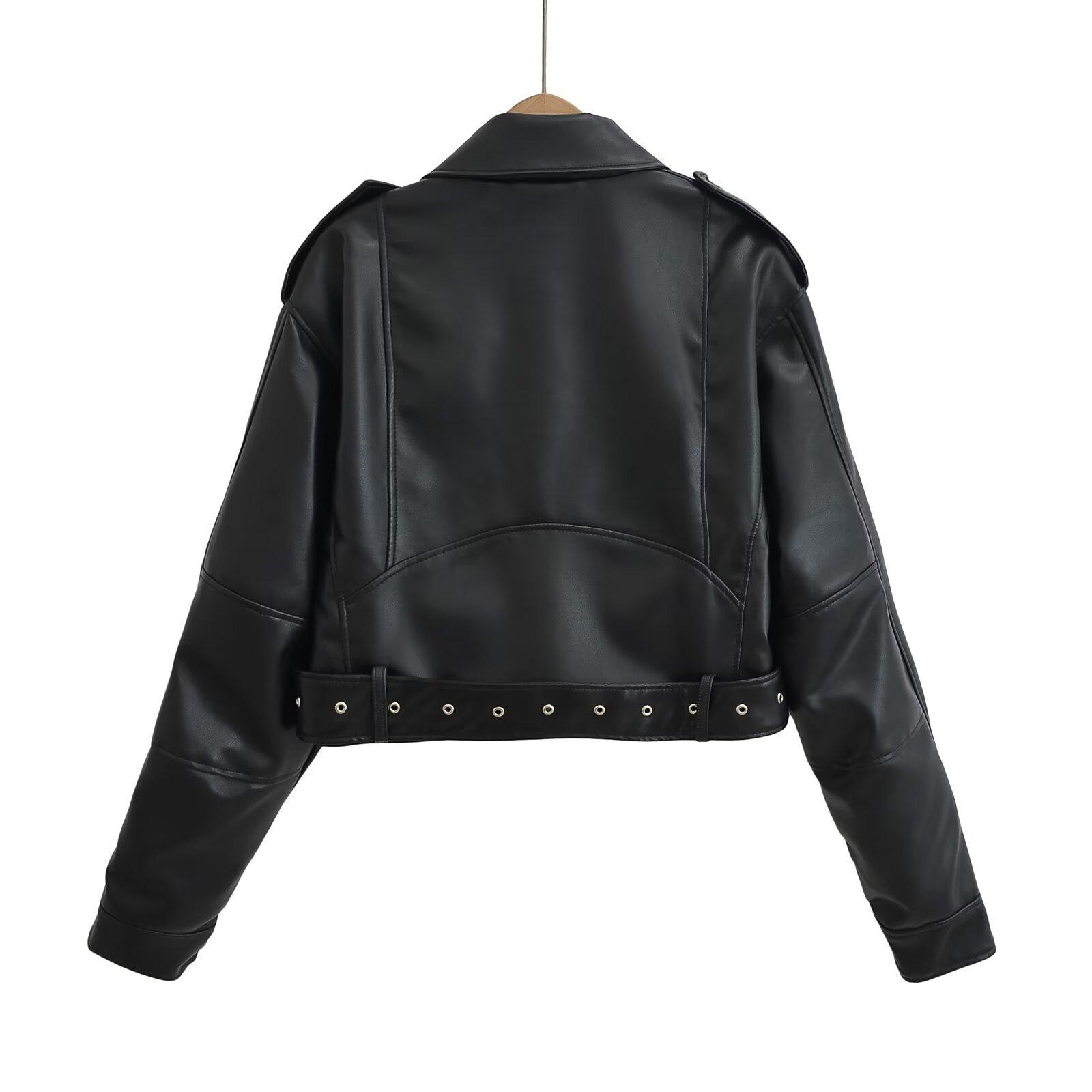 Ropa de Mujer Otoño 2024 Nueva Estilo Europeo y Americano Moda Versátil Chaqueta de Imitación de Cuero de Motocicleta 4391826