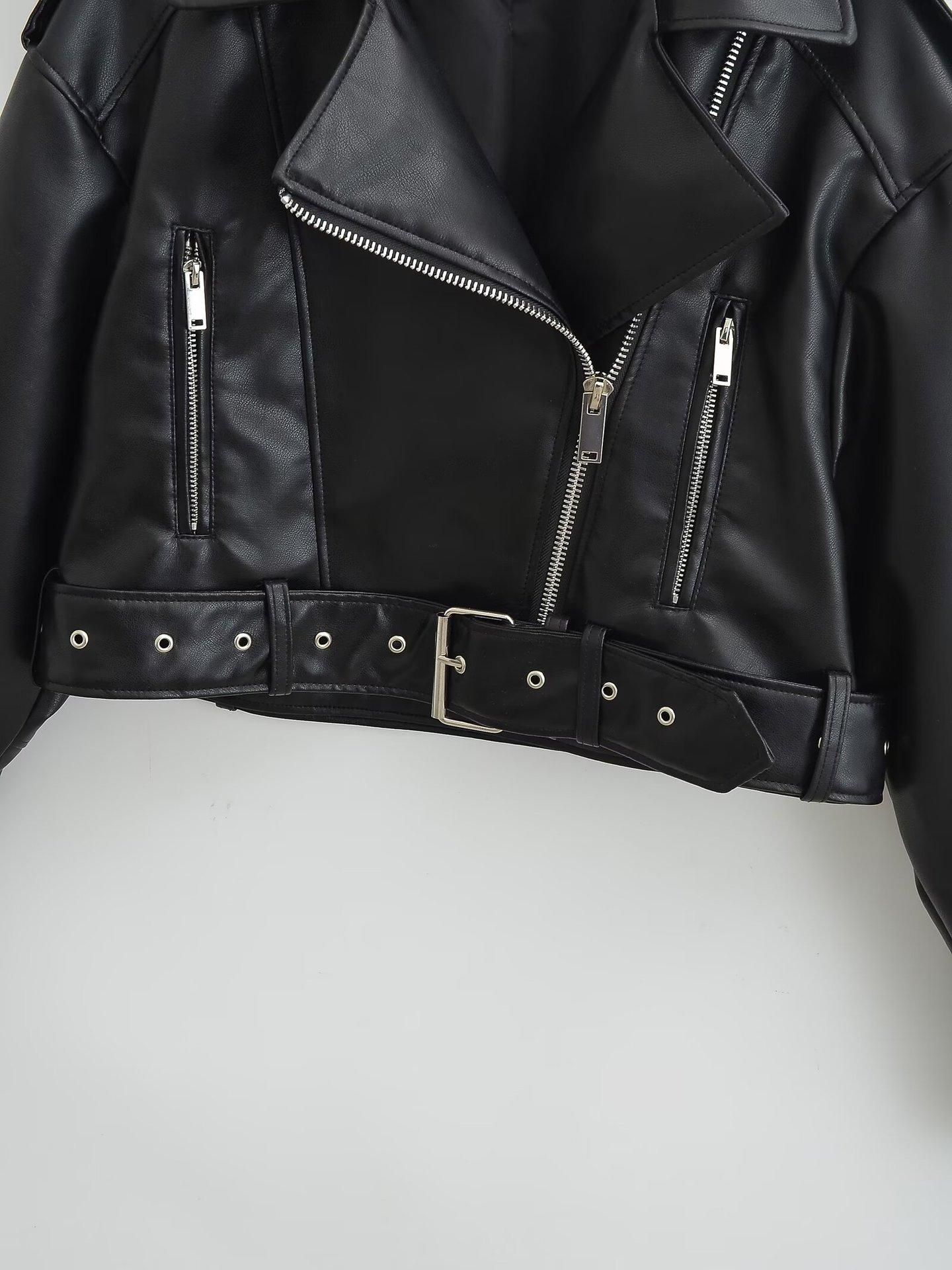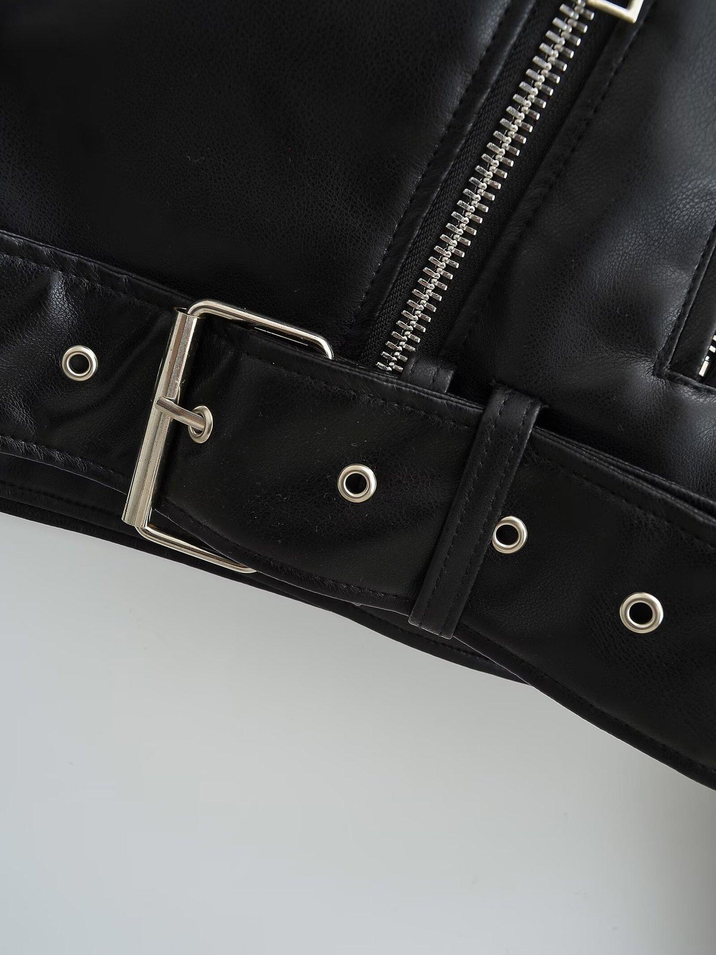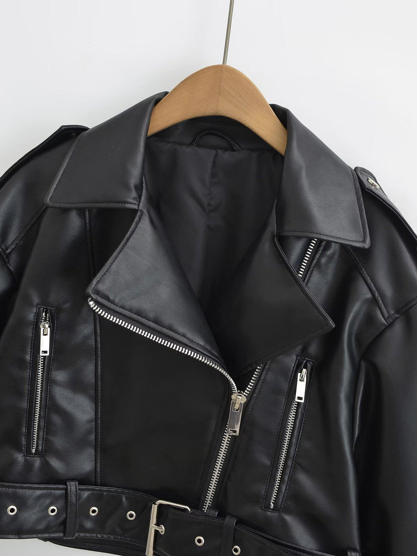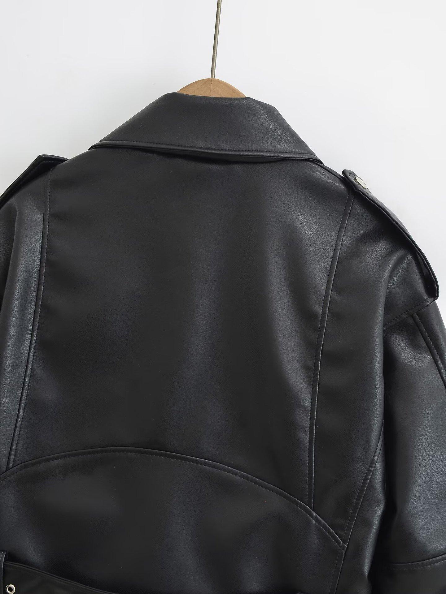 Ropa de Mujer Otoño 2024 Nueva Estilo Europeo y Americano Moda Versátil Chaqueta de Imitación de Cuero de Motocicleta 4391826