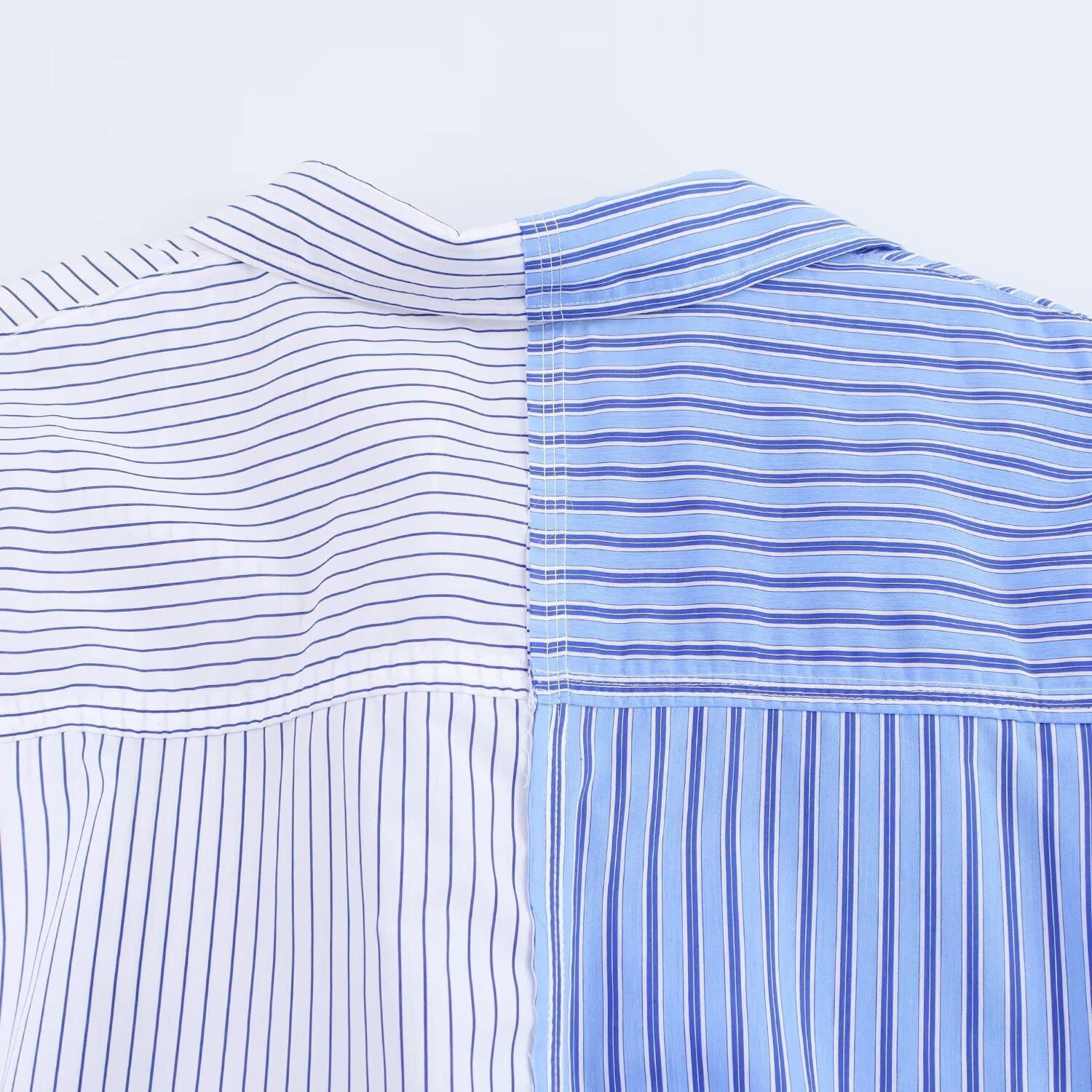 Ropa de Mujer Nueva Primavera 2025 Estilo Europeo y Americano Moda Patchwork Popelina Rayada Suelta Camisa de Solapa 4764020