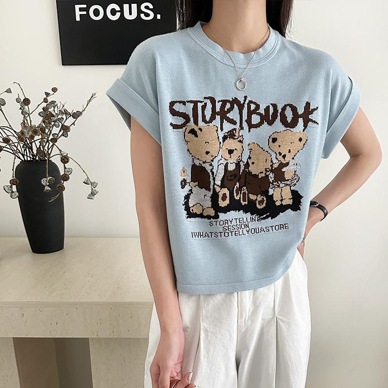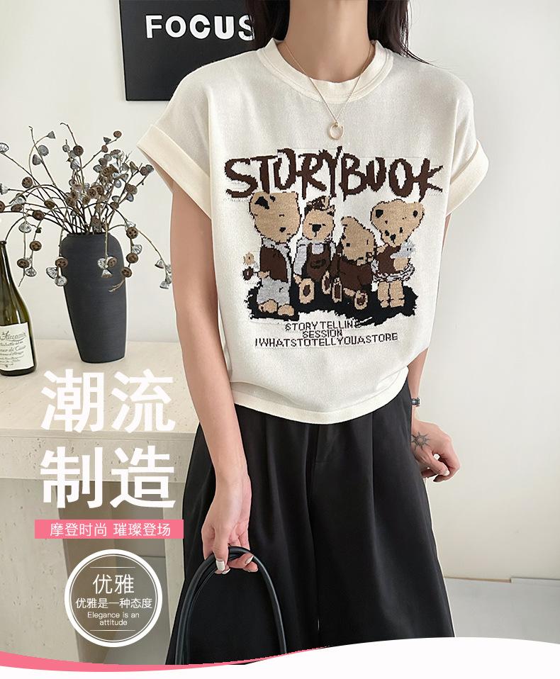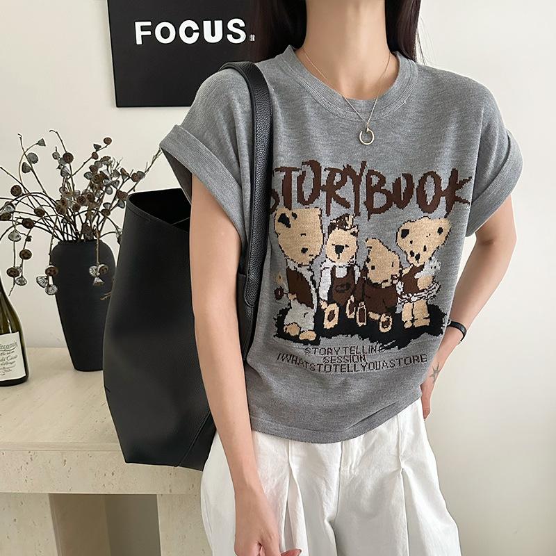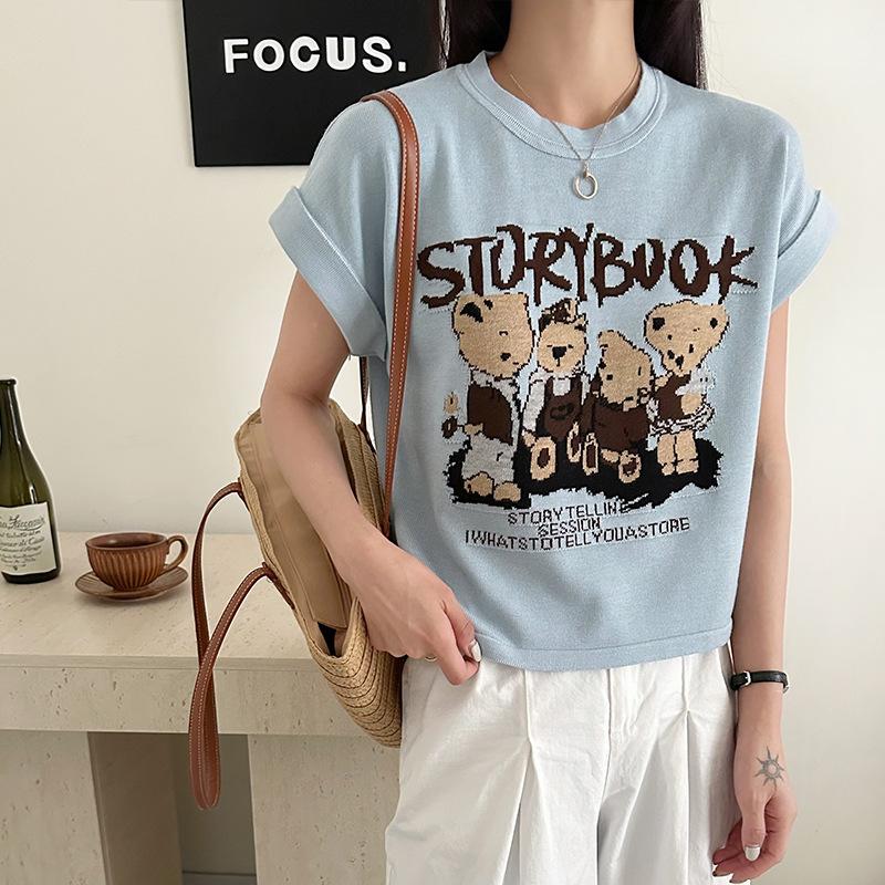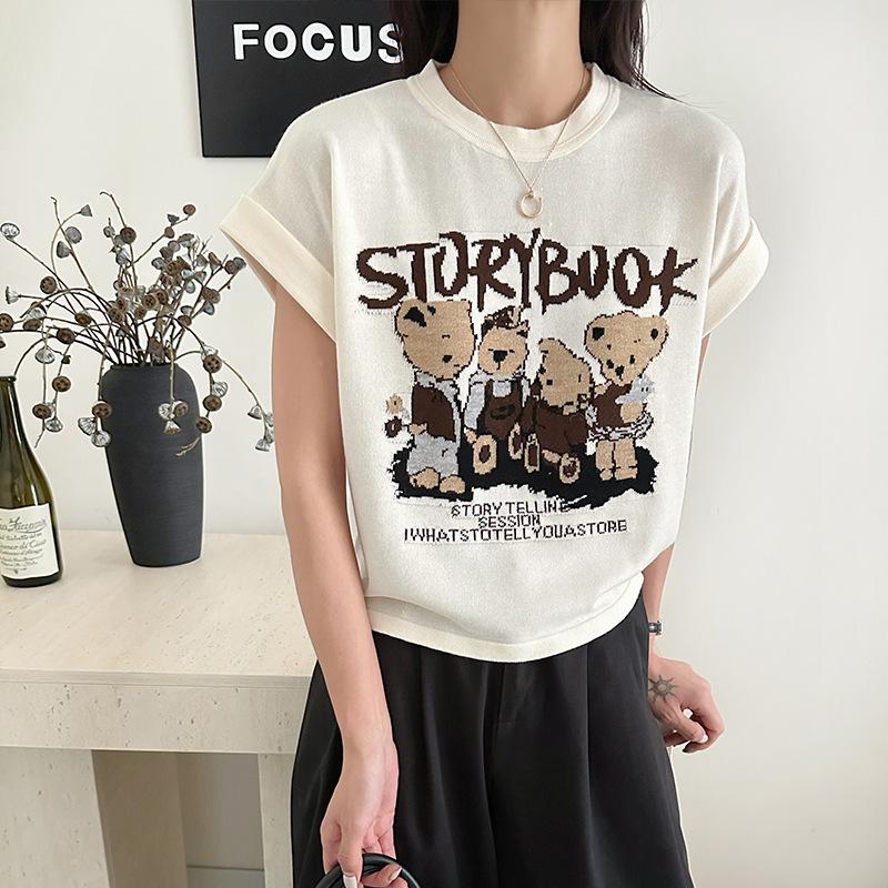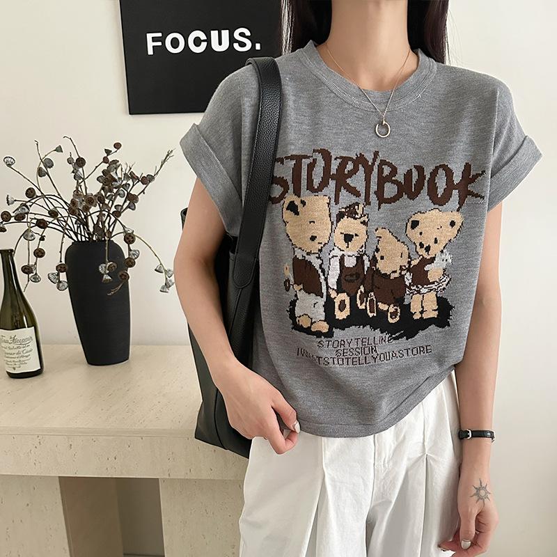 Playera de Verano Fina de Dibujos Animados para Mujer Mujer 2025 Nueva Caliente Manga Corta Mujer Sentido del Diseño Nicho Estilo Occidental Top