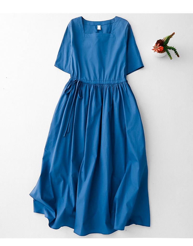 Vestido de cuello cuadrado para mujer Primavera y Verano de alta gama 2025 Nuevo Algodón Elegante Vestido Largo Falda Suelta