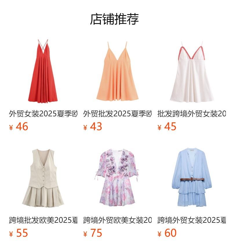 Ropa de Mujer al por Mayor para Exportación Transfronteriza 2025 Primavera y Verano Estilo Europeo y Americano Cuello en V Cintura Vestido Corto con Tirantes para Mujer G82682