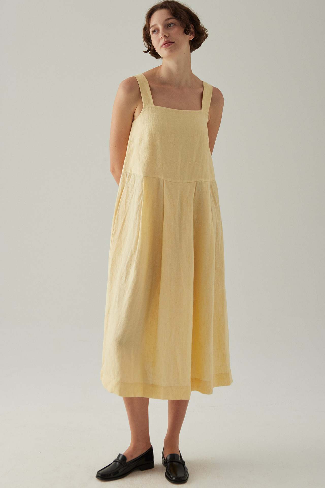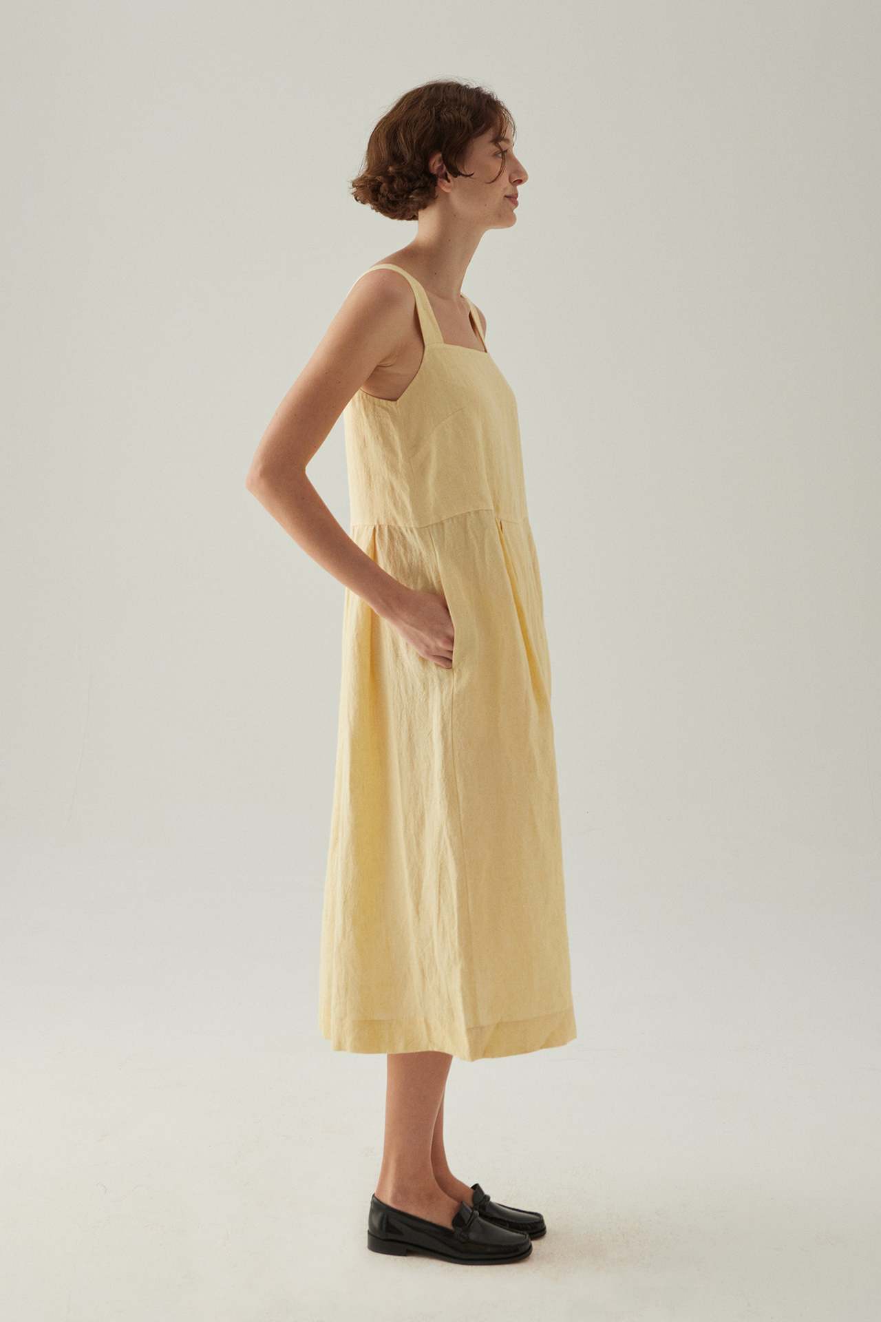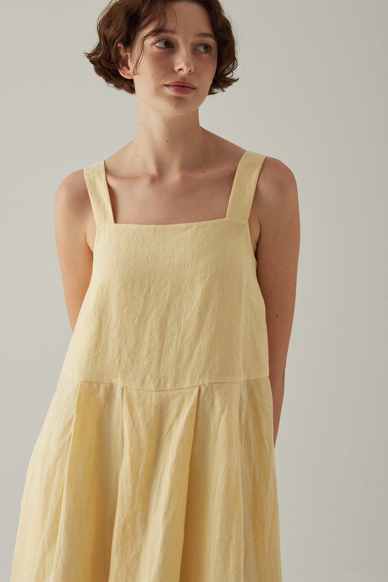 Ropa al por mayor transfronteriza europea y americana, Falda larga amarilla de tirantes de verano, Vestido chaleco de cuello cuadrado francés