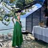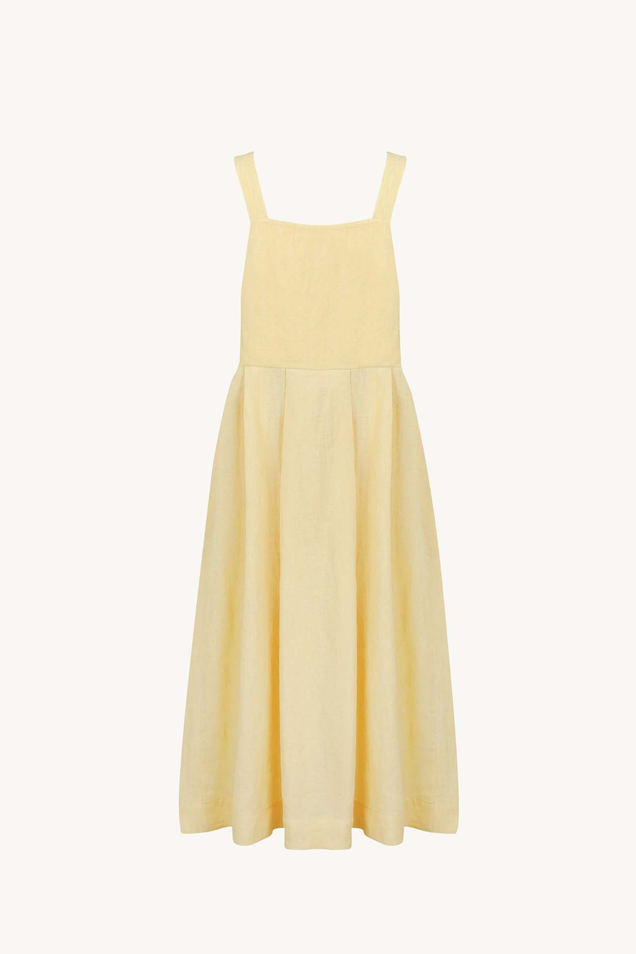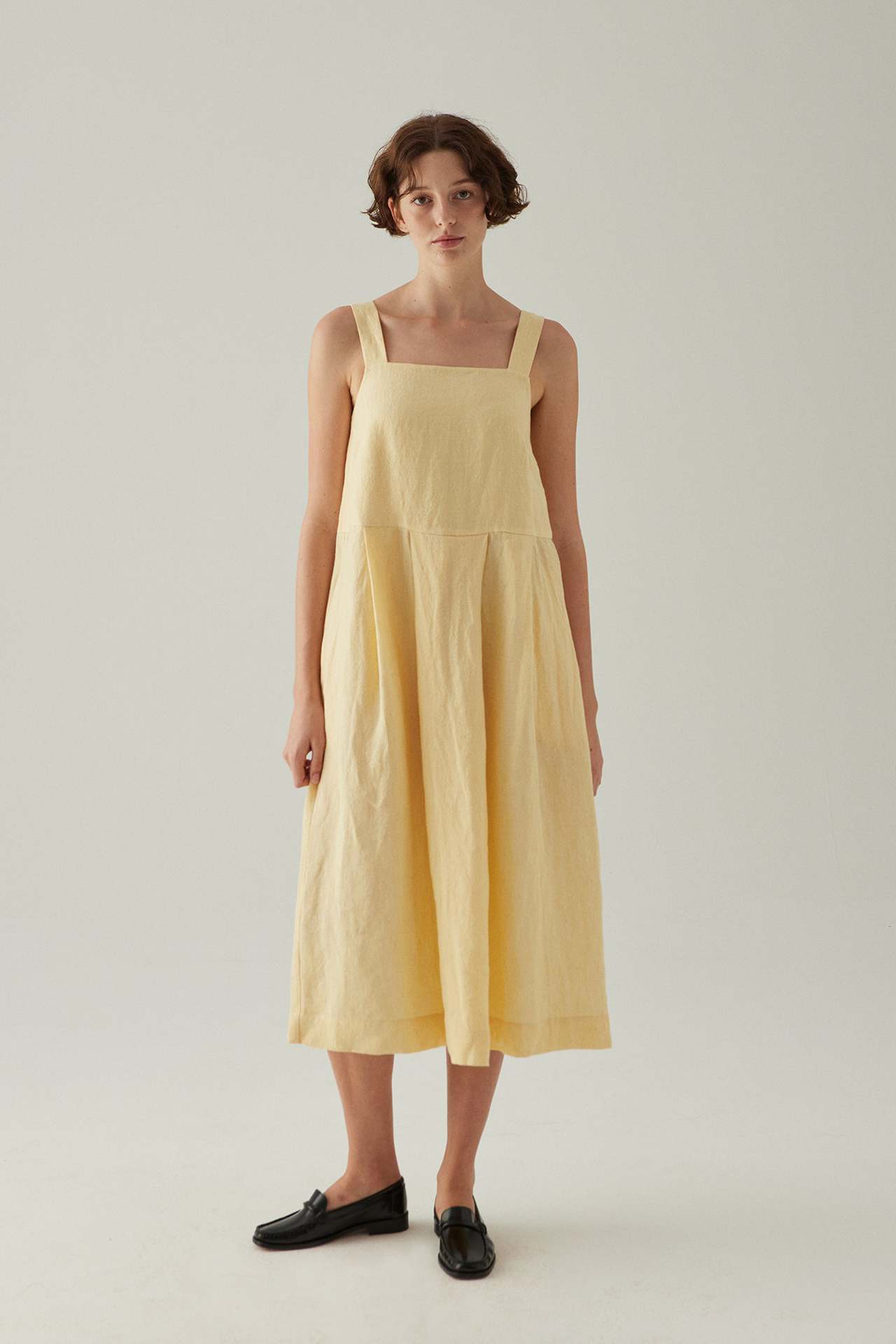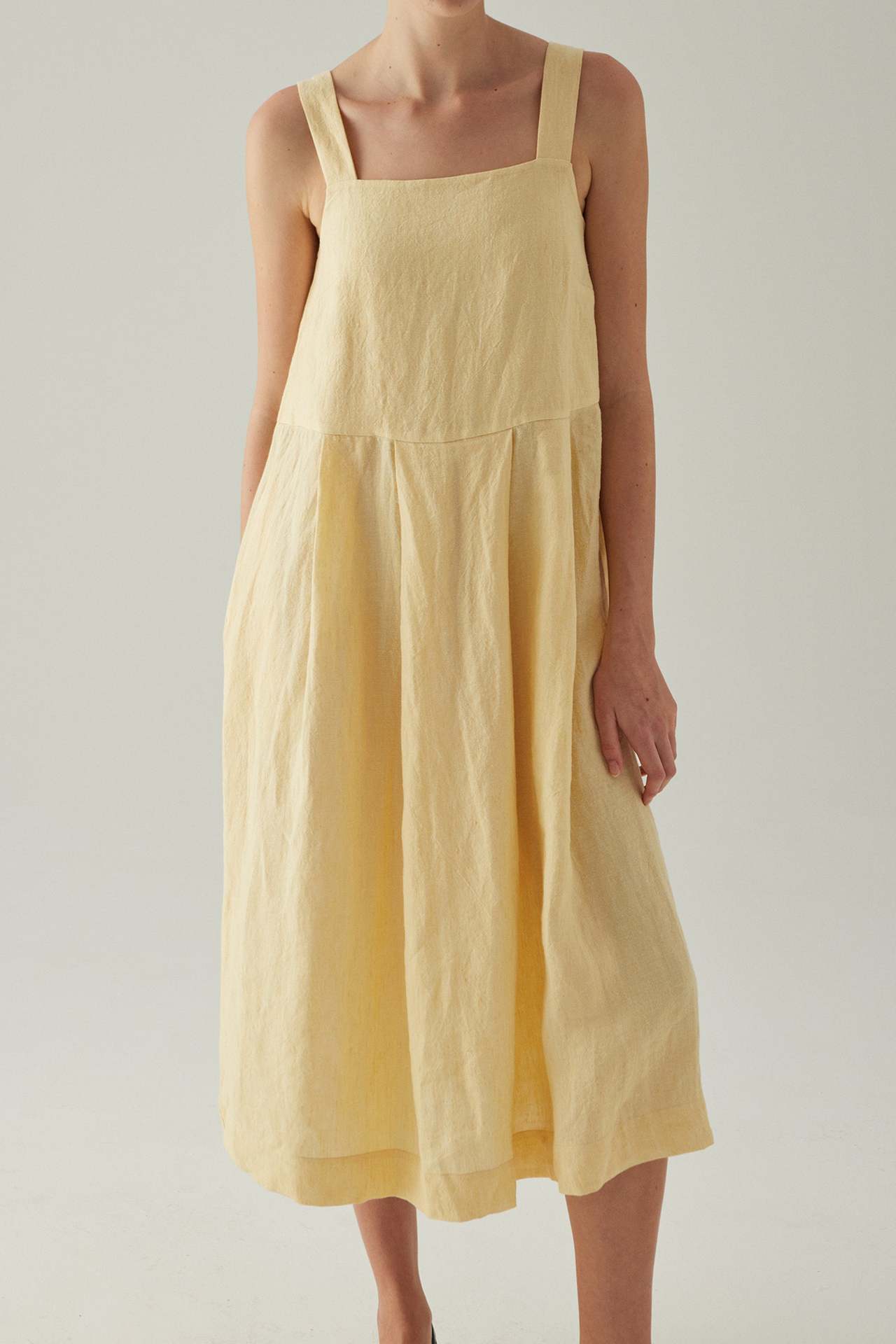 Ropa al por mayor transfronteriza europea y americana, Falda larga amarilla de tirantes de verano, Vestido chaleco de cuello cuadrado francés