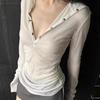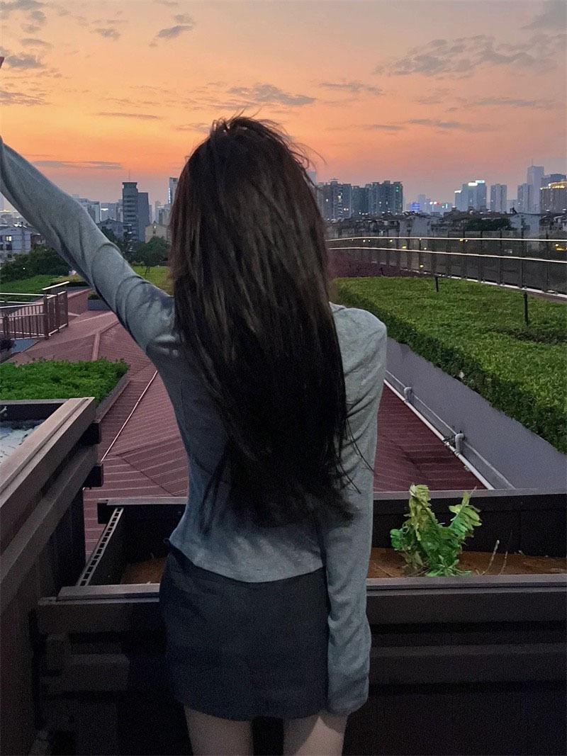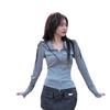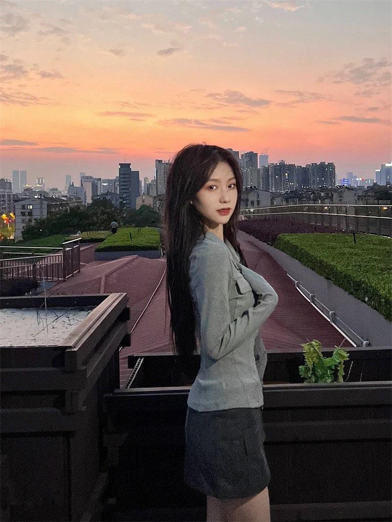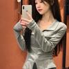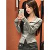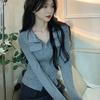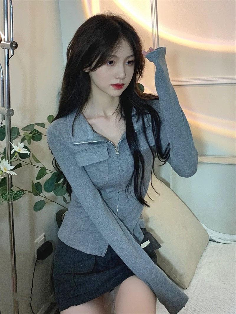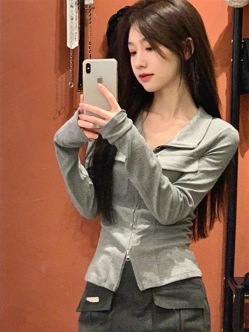 Chicas Calientes Chic Slim-Fit Adelgazante Abrigo de Manga Larga con Cuello de Doble Cremallera Otoño Nuevo Estilo Puro Deseo Sexy Cintura Ceñida Top para Mujeres