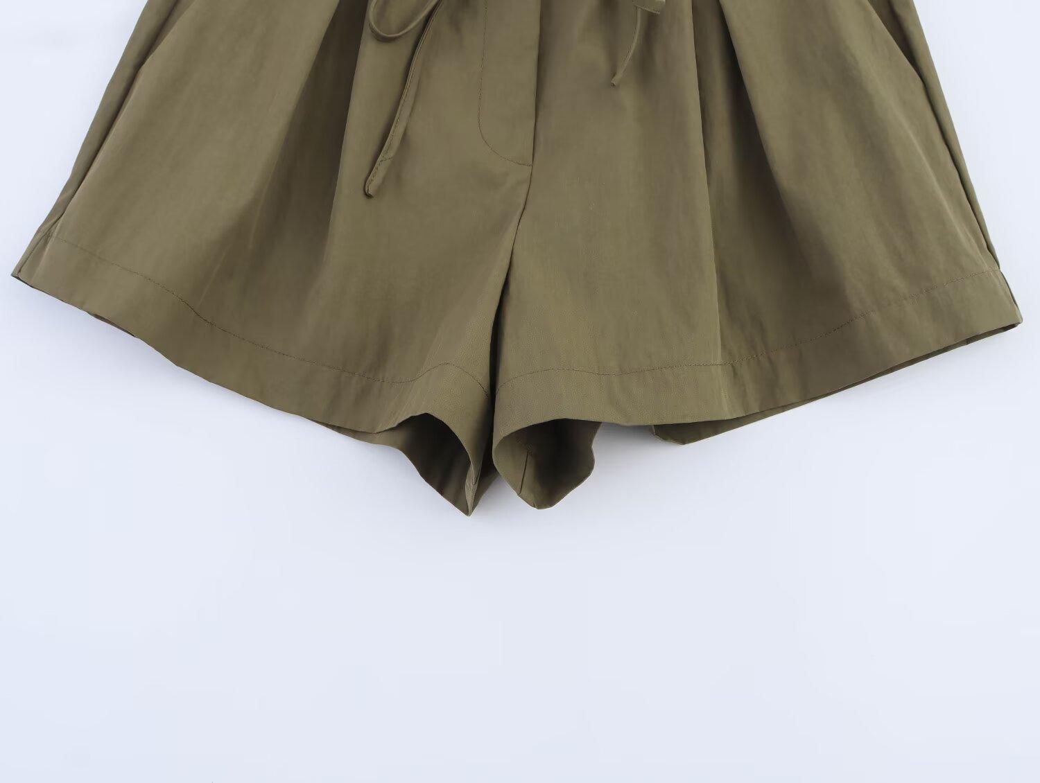 Exportación Transfronteriza Ropa de Mujer 2025 Primavera y Verano Estilo Europeo y Americano Bolsillo Camisa Corta + Traje de Shorts Mujer B482396/7