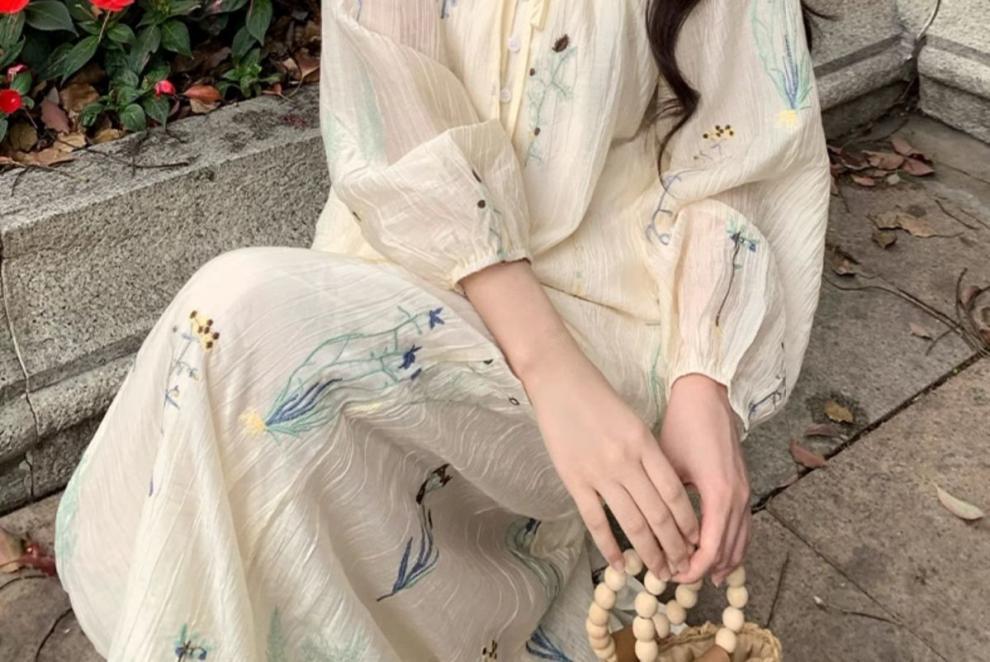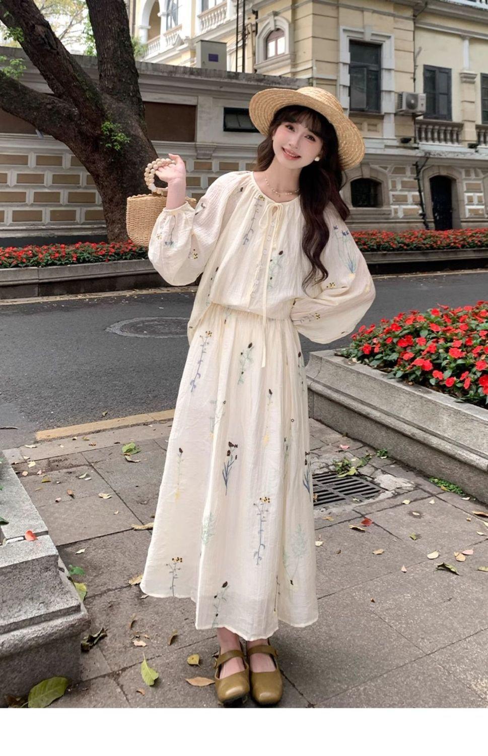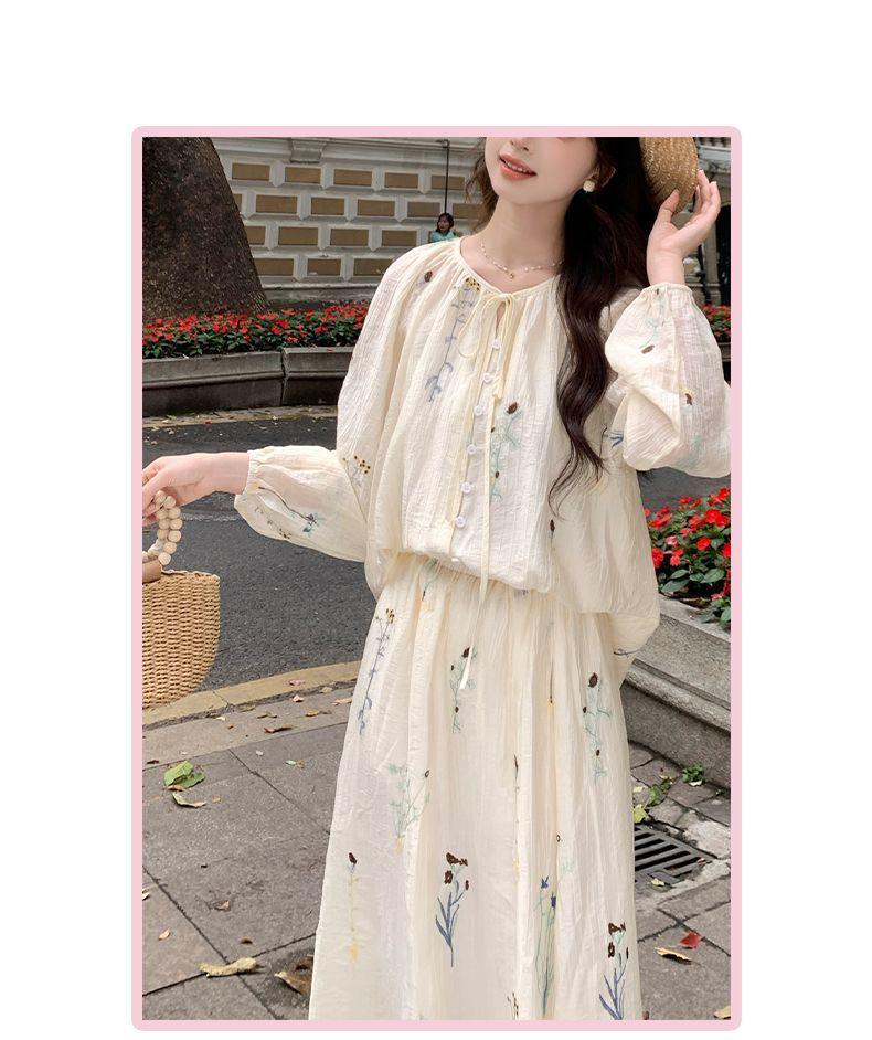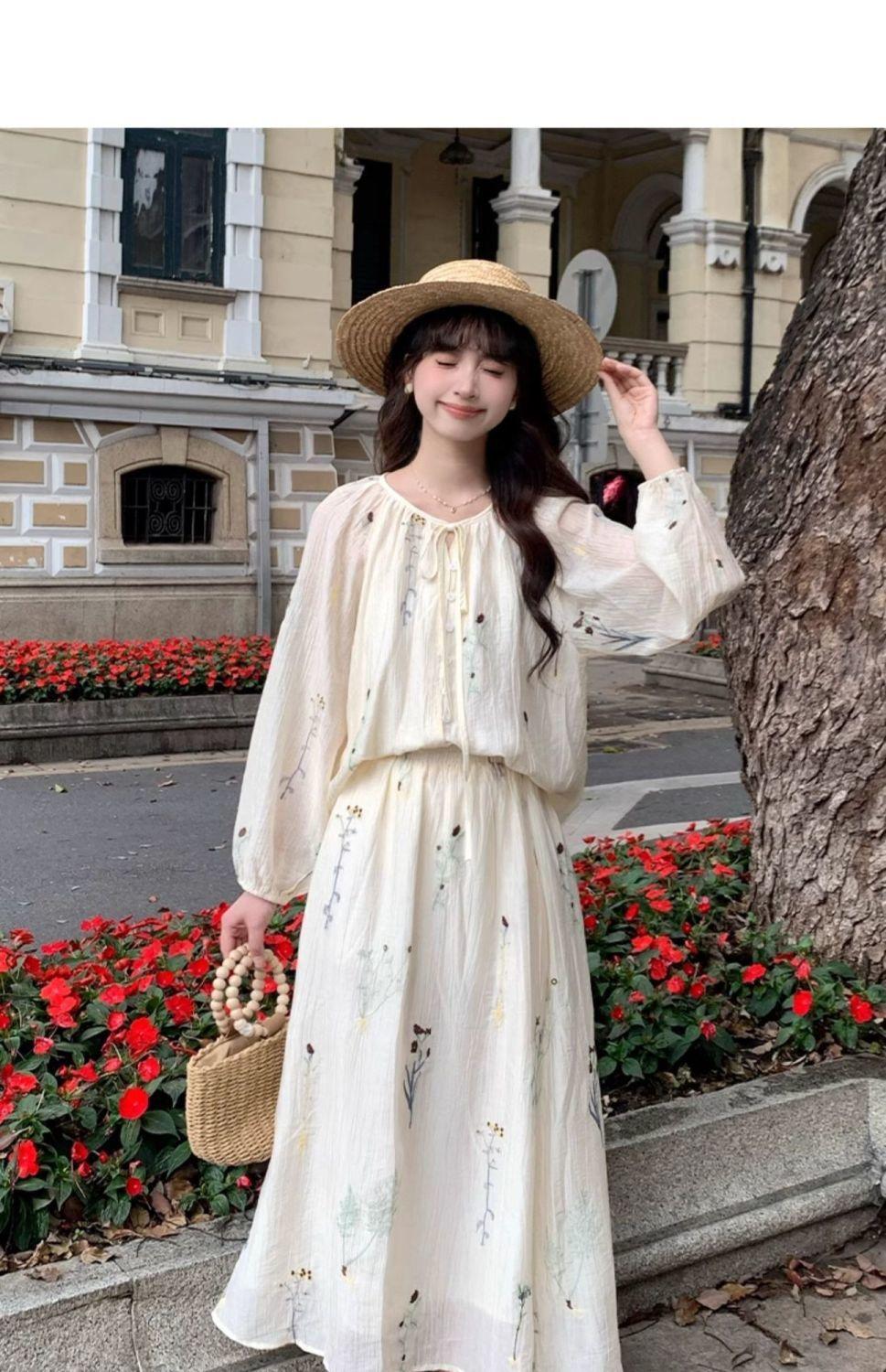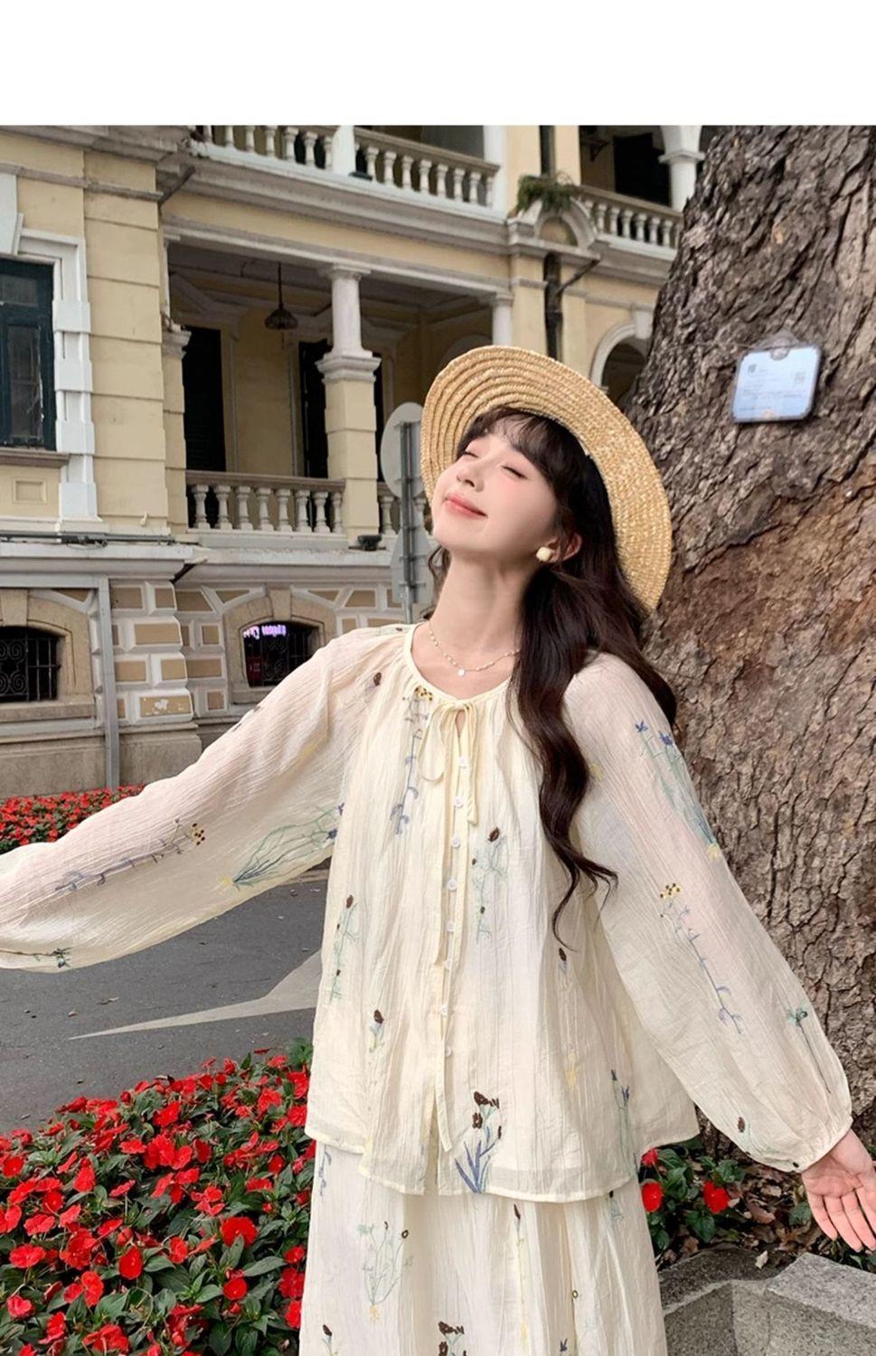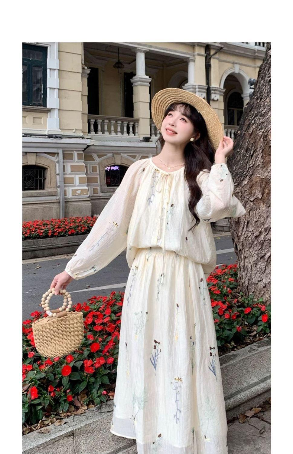 Traje de Moda Elegante Estilo Perezoso para Mujer Verano 2025 Nuevo Camisa Floral de Manga Larga para Mujer Falda de Cintura Alta Conjunto de Dos Piezas