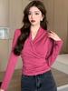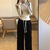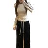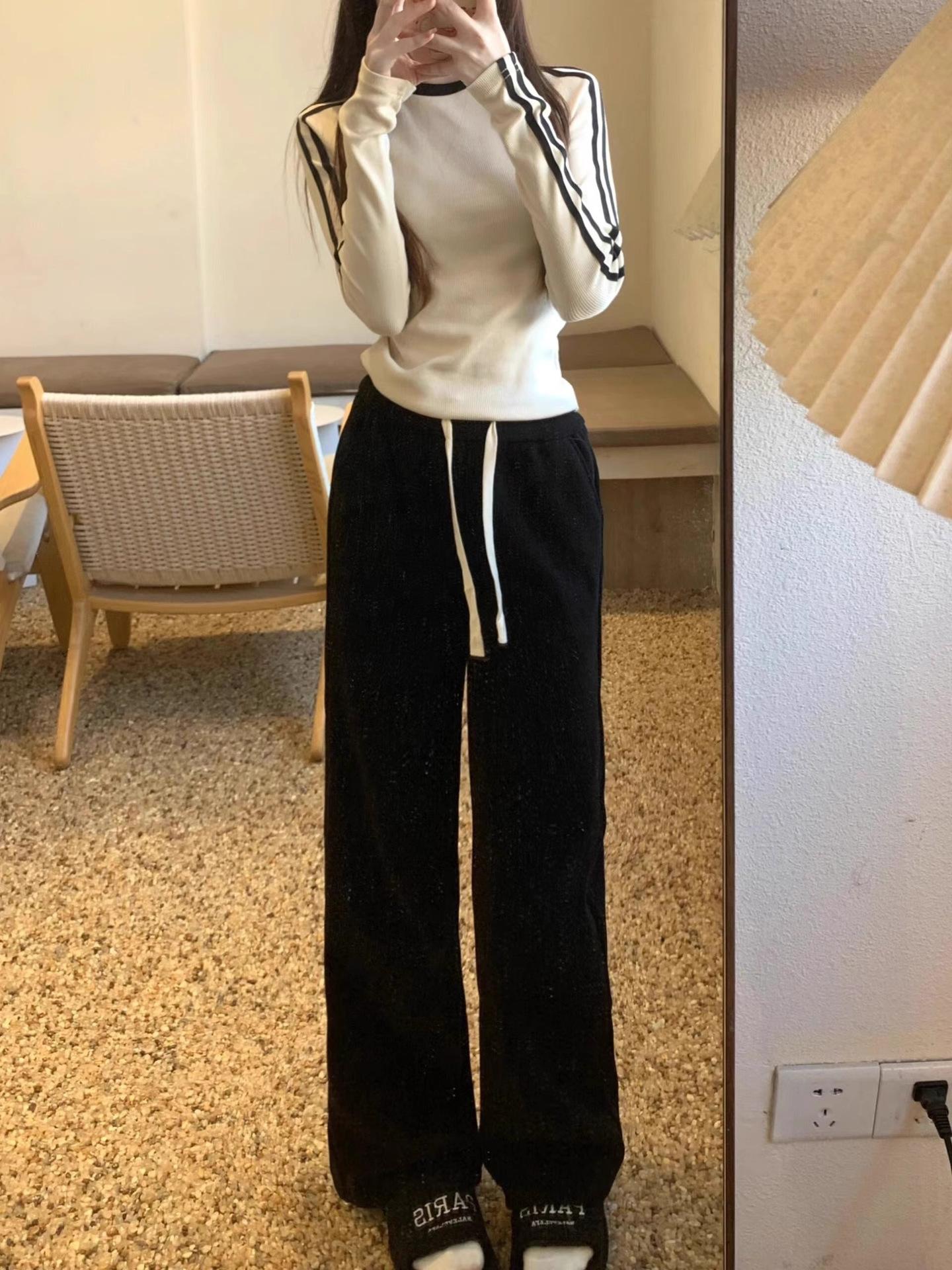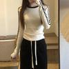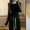 Moda Otoño Sexy Spice Girl Ajustado Ajustado Color Contraste Camiseta Manga Larga Deseo Puro Nicho Combinable Chic Top Rayado