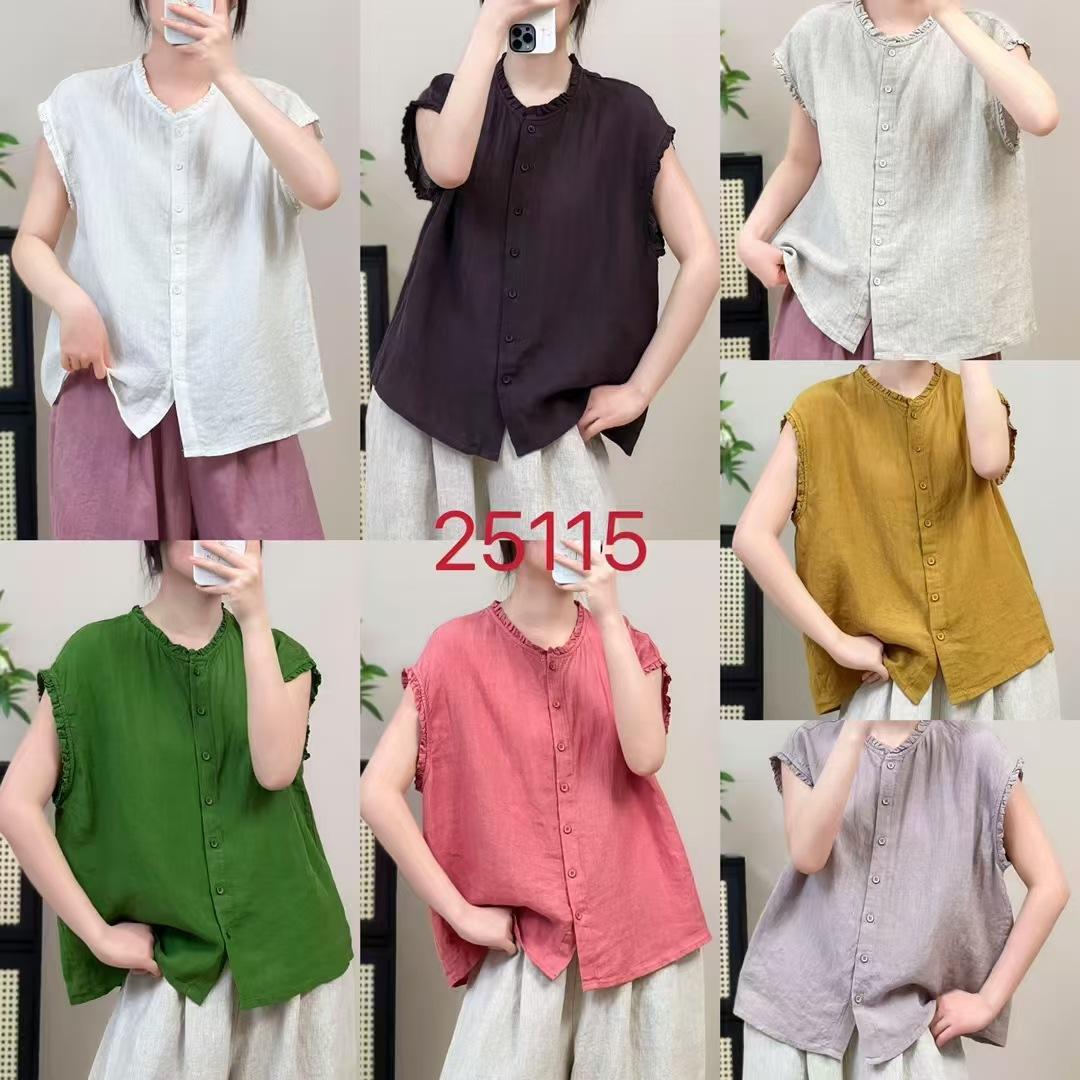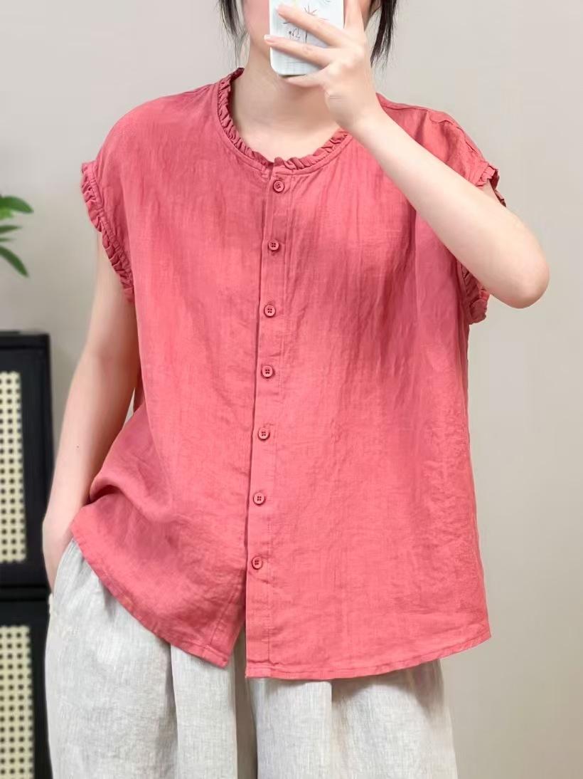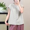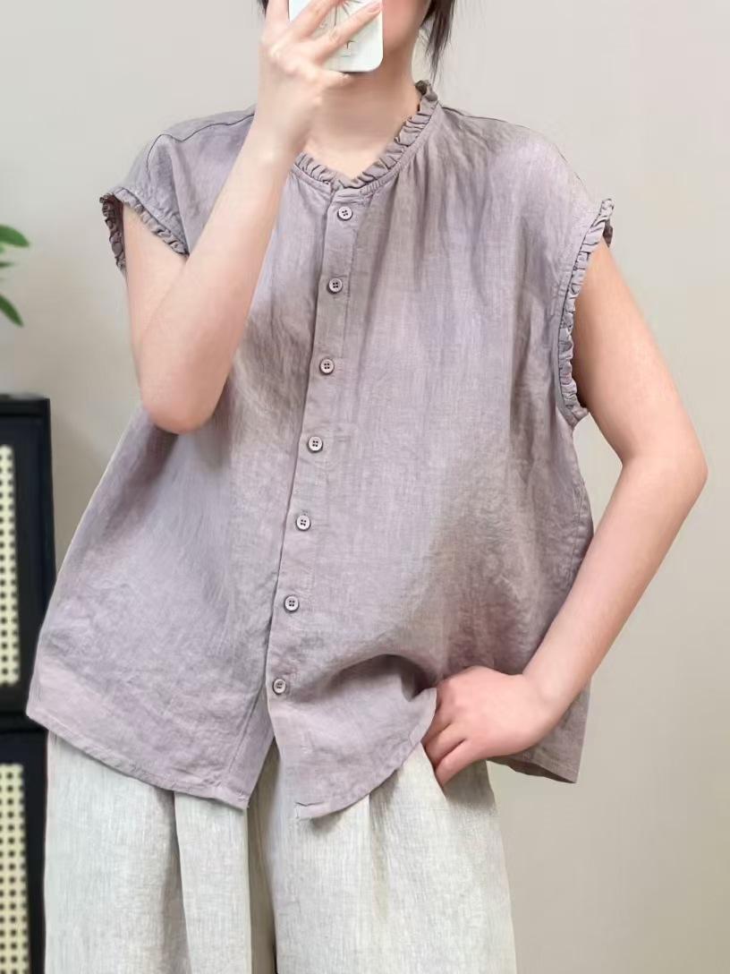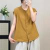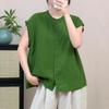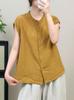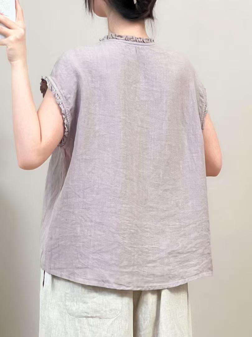 2025 Verano Nuevo Camisa Artística Vintage Casual Elegante Combinable Color Sólido Manga Corta Top de Mujer