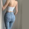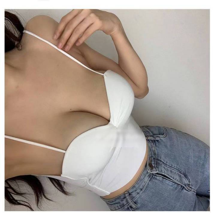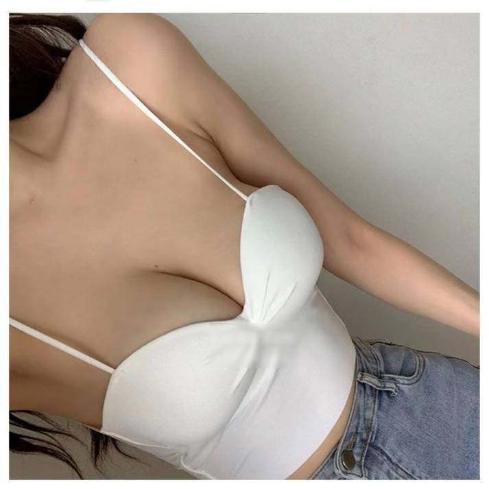Verano Estilo Europeo y Americano Sin Costuras Sin Espalda Sexy Escote Bajo Deseo Puro Crop Top Camisola de Color Sólido para Mujer Top de Chica Caliente
