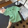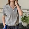 Suéter de manga corta con cuello polo estilo coreano, suave y cómodo, estilo occidental, combinable con todo, con clavícula expuesta, popular, corte ajustado