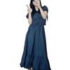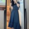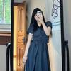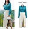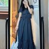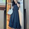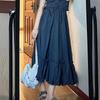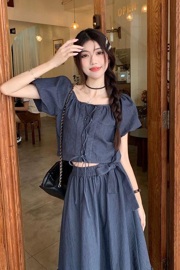 Conjunto de Moda Coreana Top de Encaje con Manga Abullonada + Falda Midi con Lazo para Mujer Verano Dos