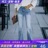 Estación Europea Ebay Amazon Bordado 3D Jeans de Cintura Alta para Mujer Pantalones Largos para Mujer Pantalones Negros Slim