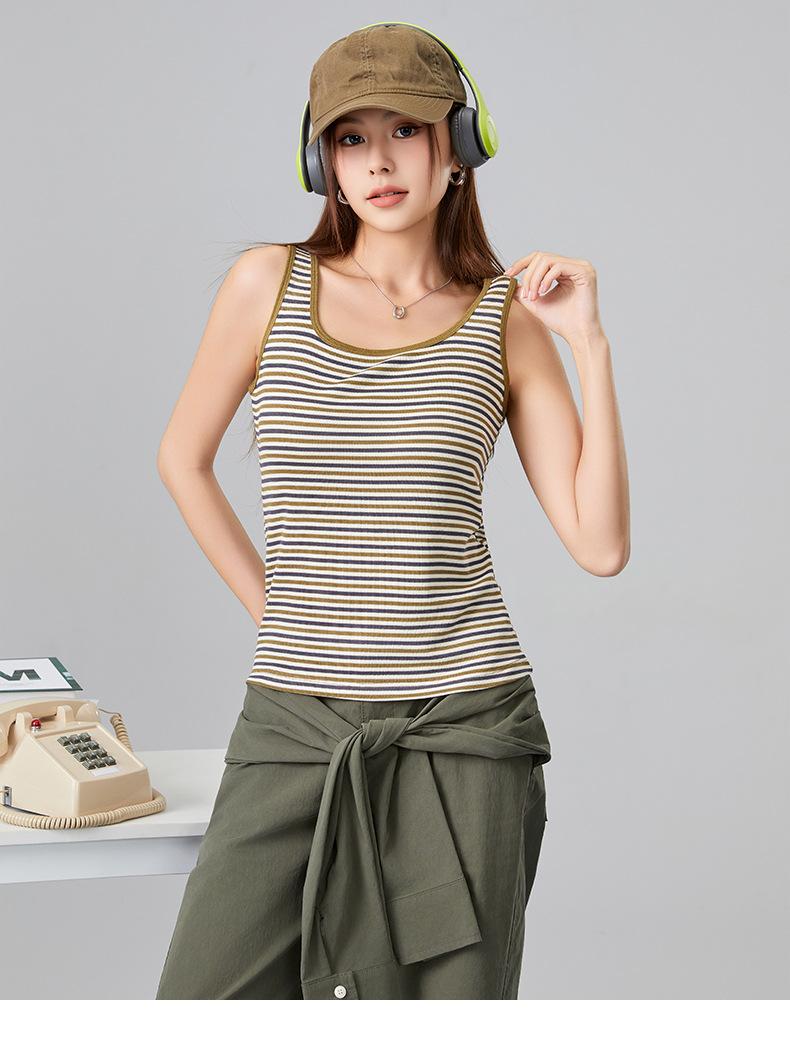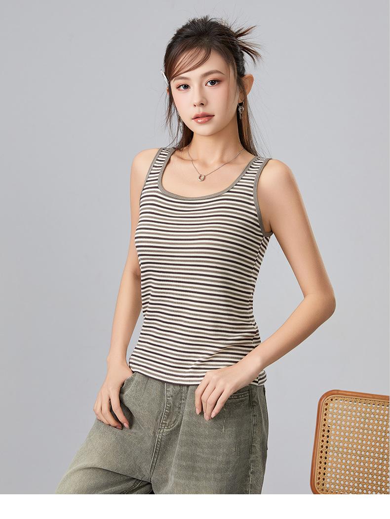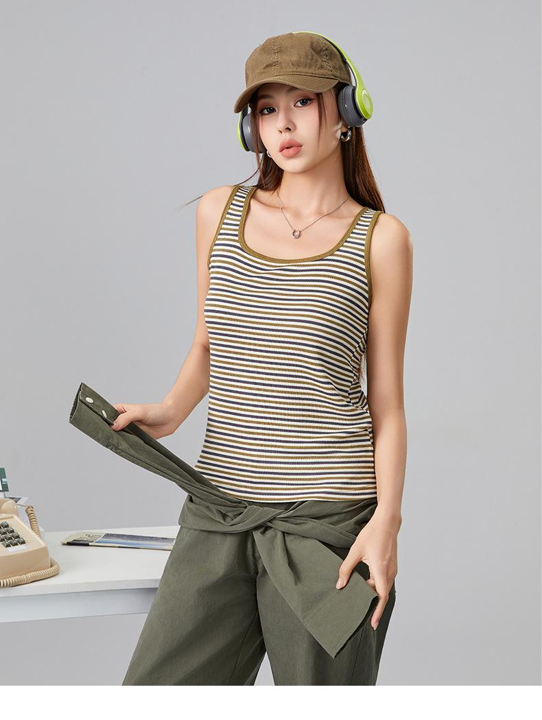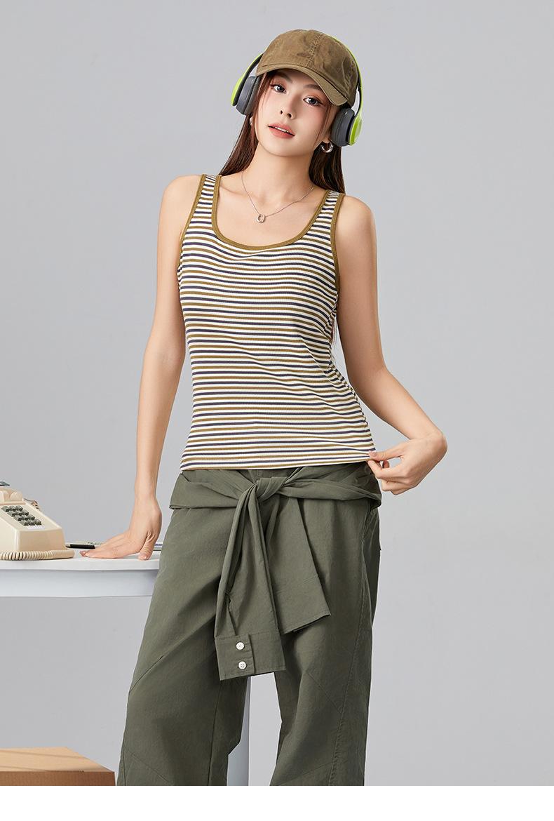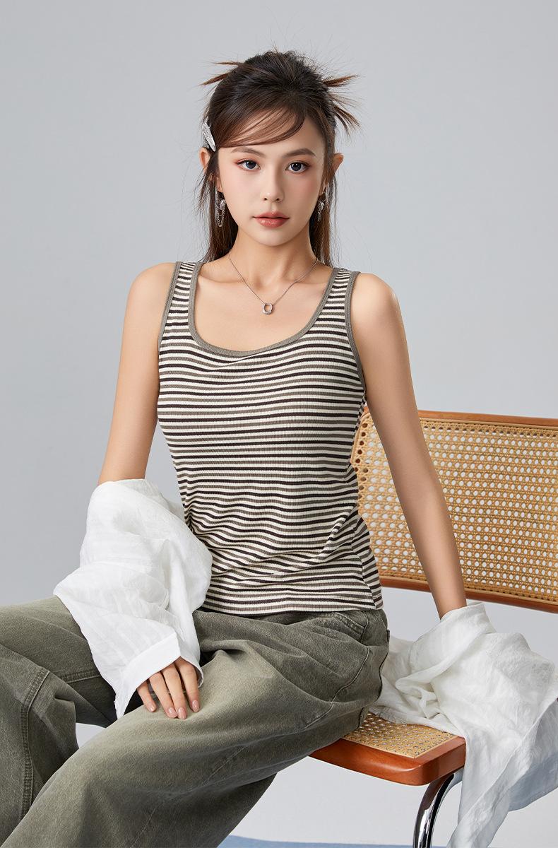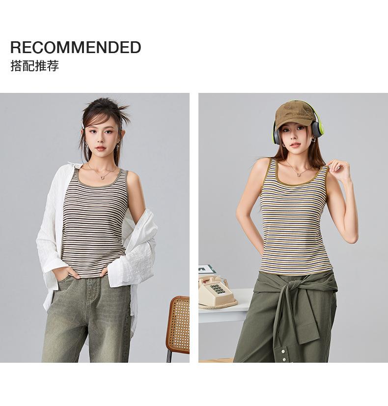 [Personalizado] Camisola Rayada para Mujer Sin Mangas Estilo Nuevo de Primavera y Verano mm Gordita Cubre los Senos y Luce Adelgazante Tops Interiores y Exteriores
