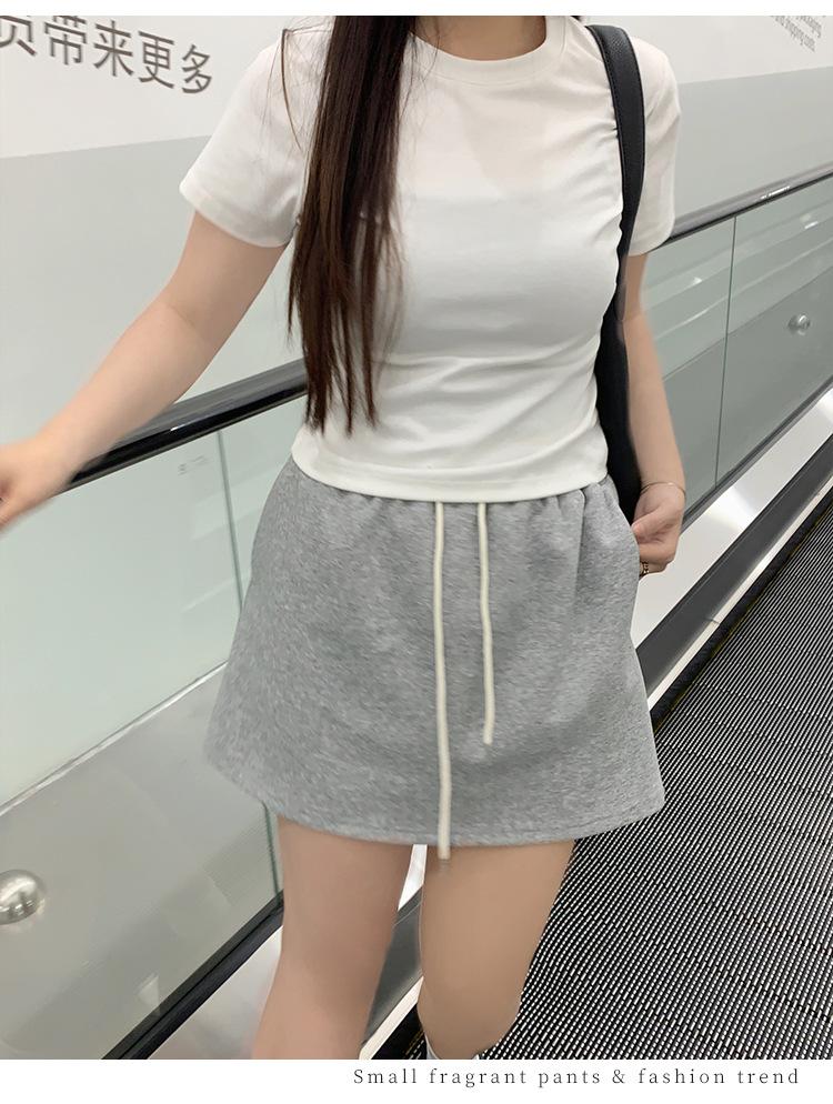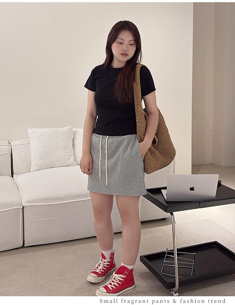 Talla grande Falda deportiva casual gris Spice Girl para mujer Falda pequeña a la cadera Cintura alta Look delgado Falda recta