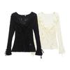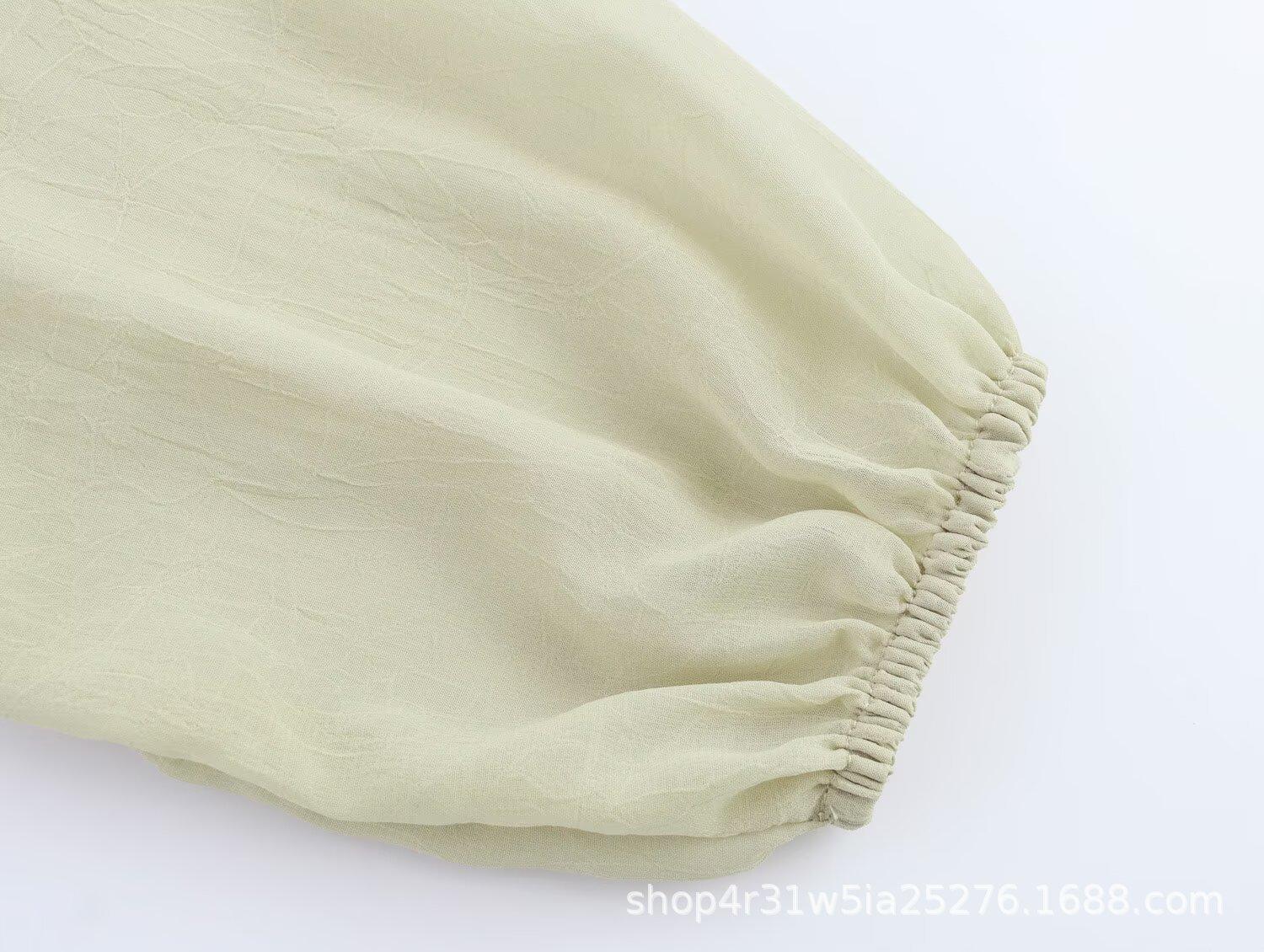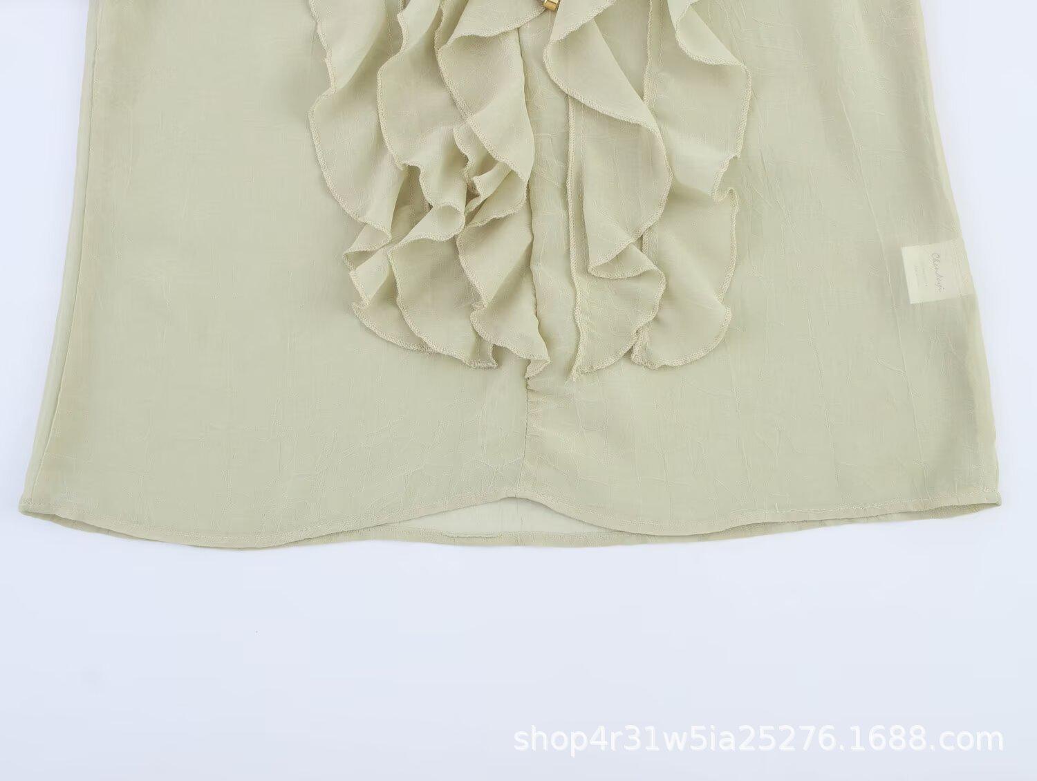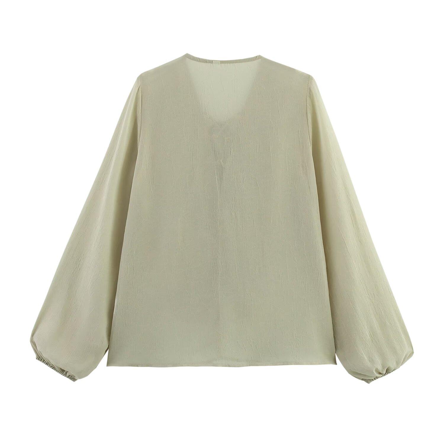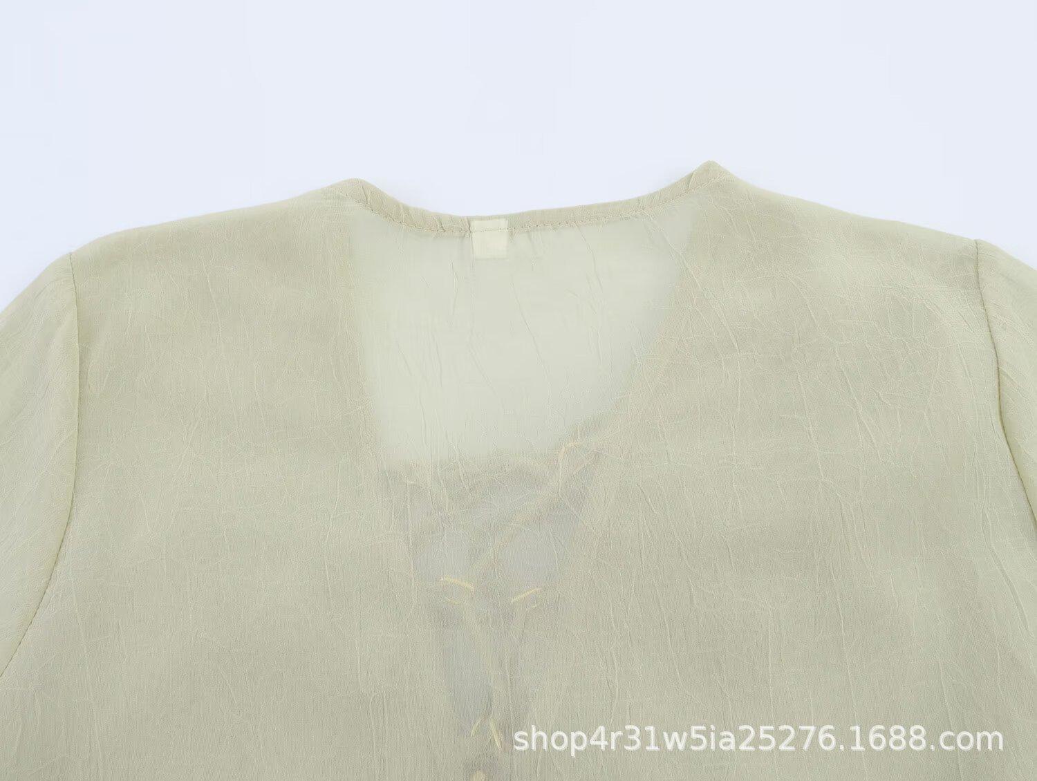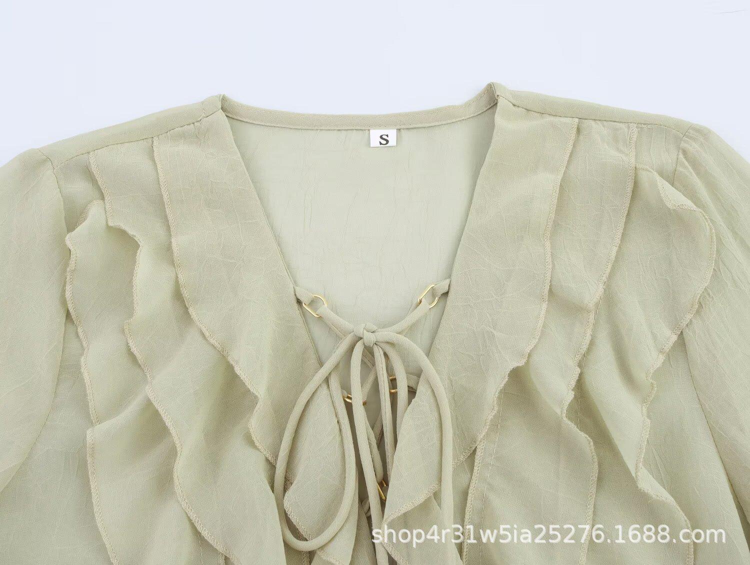Amazon Aliexpress Exportación Transfronteriza Ropa de Mujer 2025 Nueva Camisa Traslúcida Decorativa en Capas con Cuello en V y Manga Larga