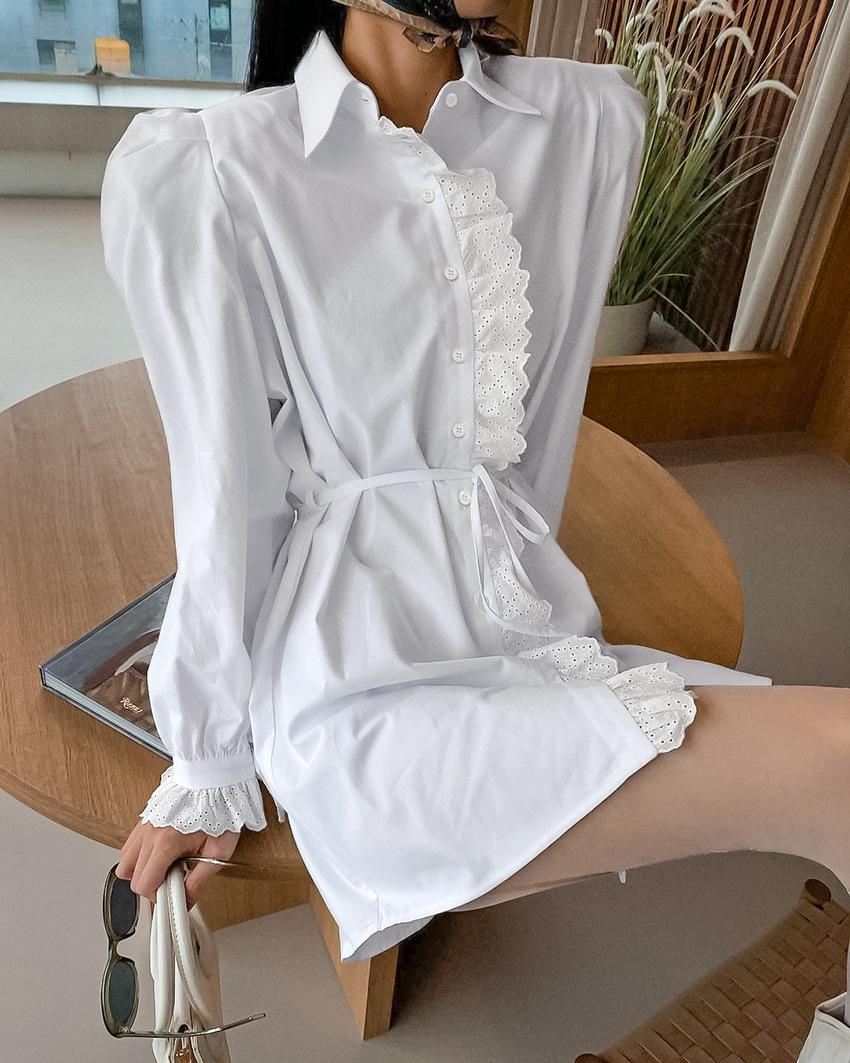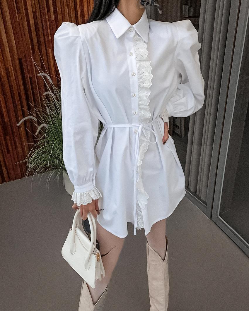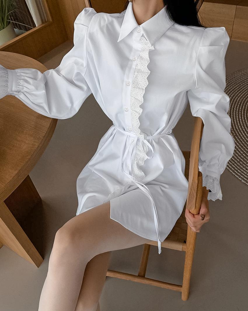 Verano 2025 Estilo Francés Elegante Vestido con Volantes y Manga Abullonada Vestido Camisero Corte A Cintura Ajustada para Mujer Sentido del Diseño Ropa de Mujer