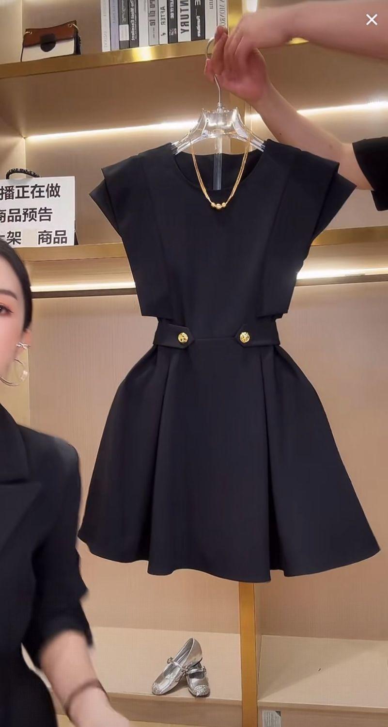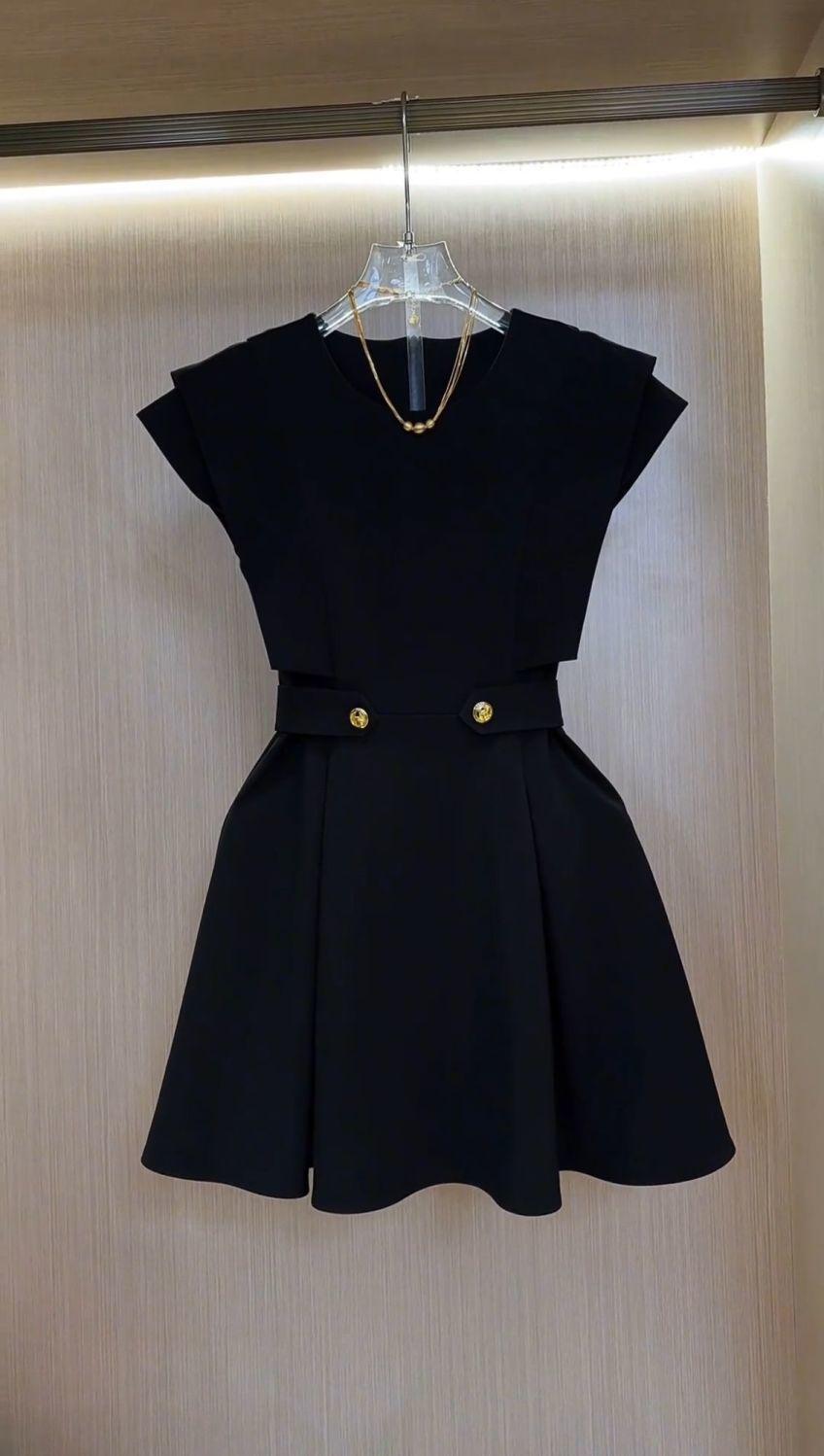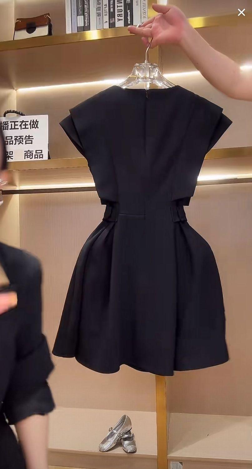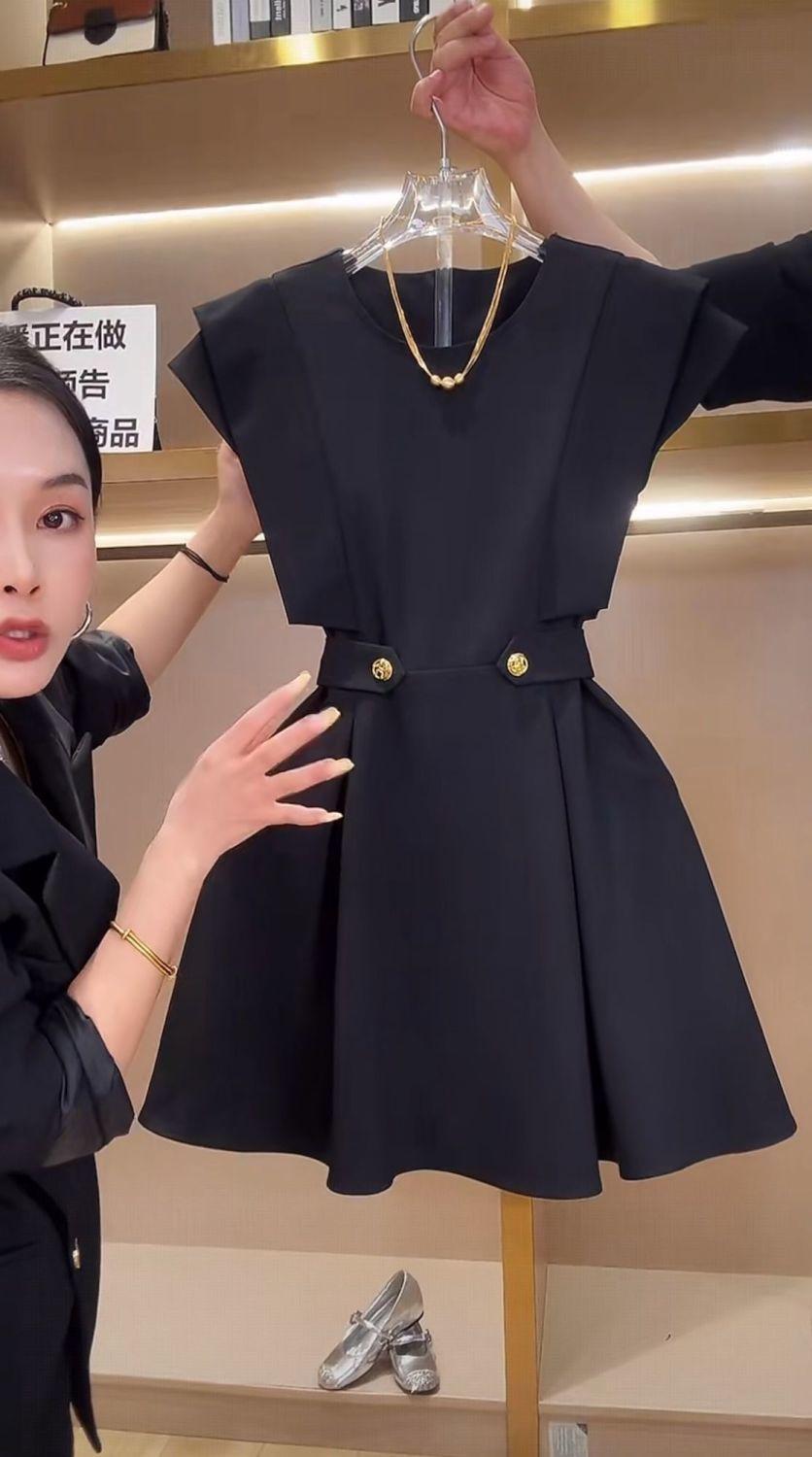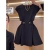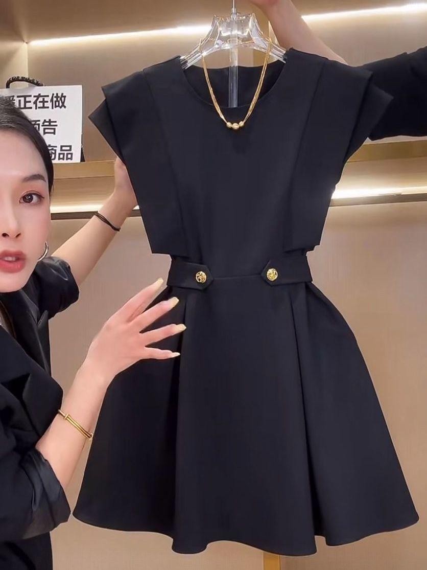 Vestido de Verano, Vestido Negro Pequeño Estilo Hepburn Francés, Diseño Falda Corta