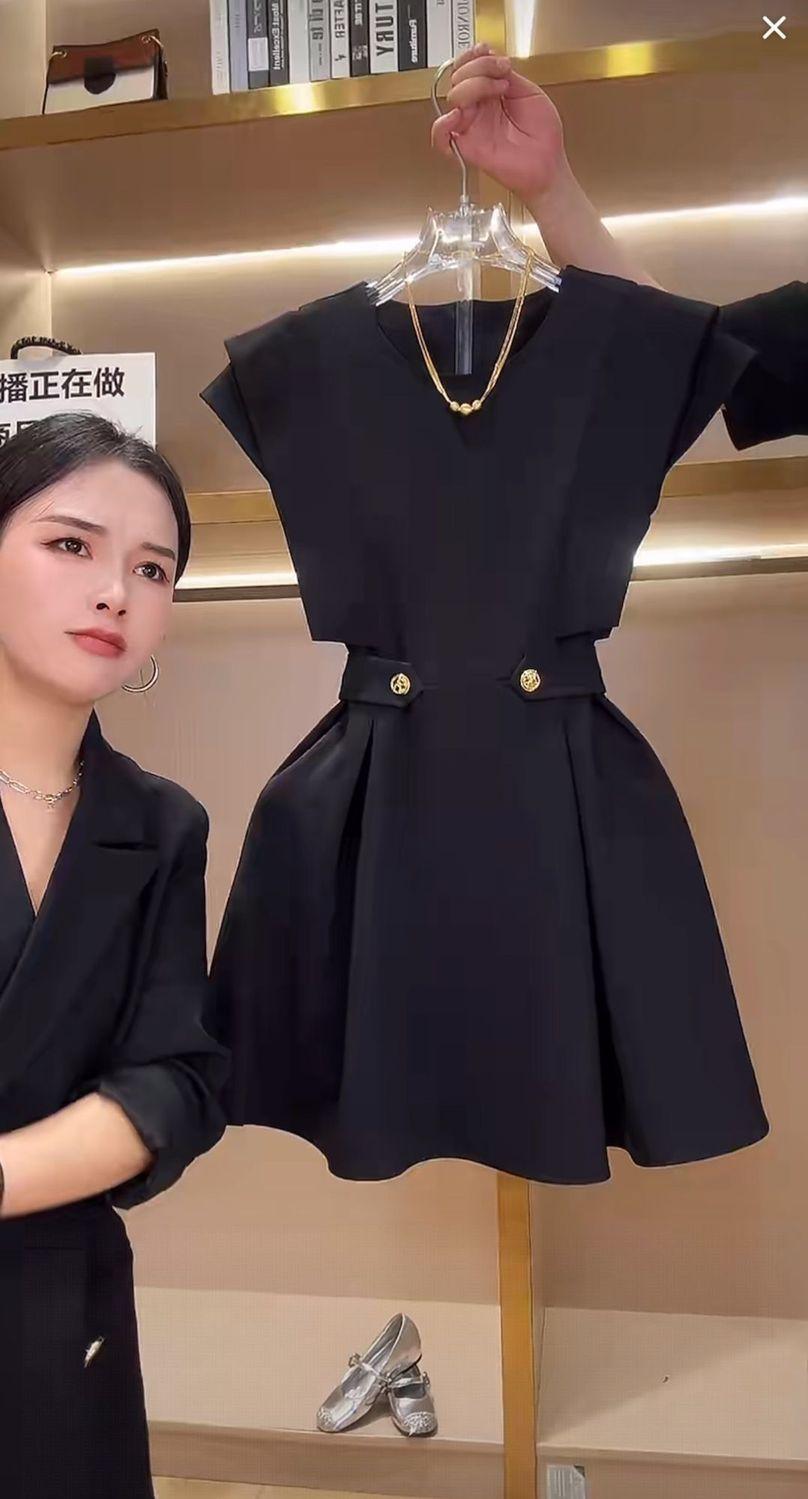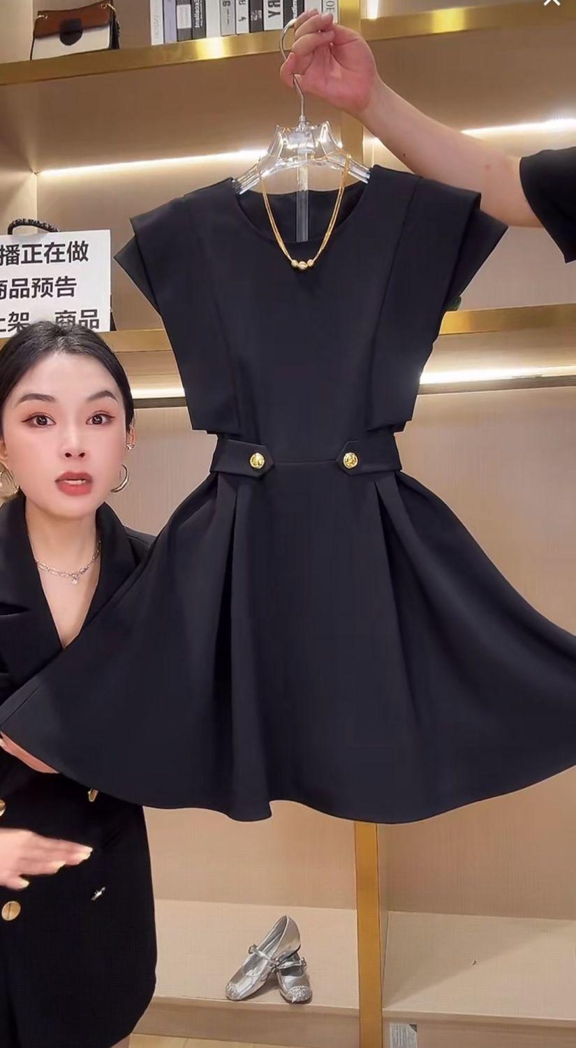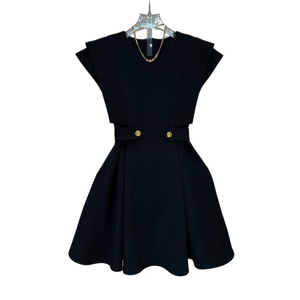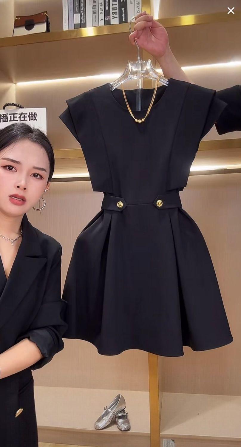 Vestido de Verano, Vestido Negro Pequeño Estilo Hepburn Francés, Diseño Falda Corta
