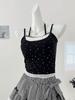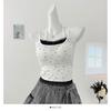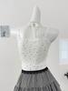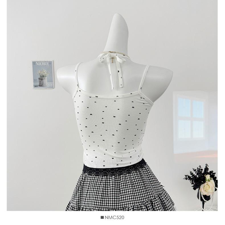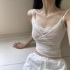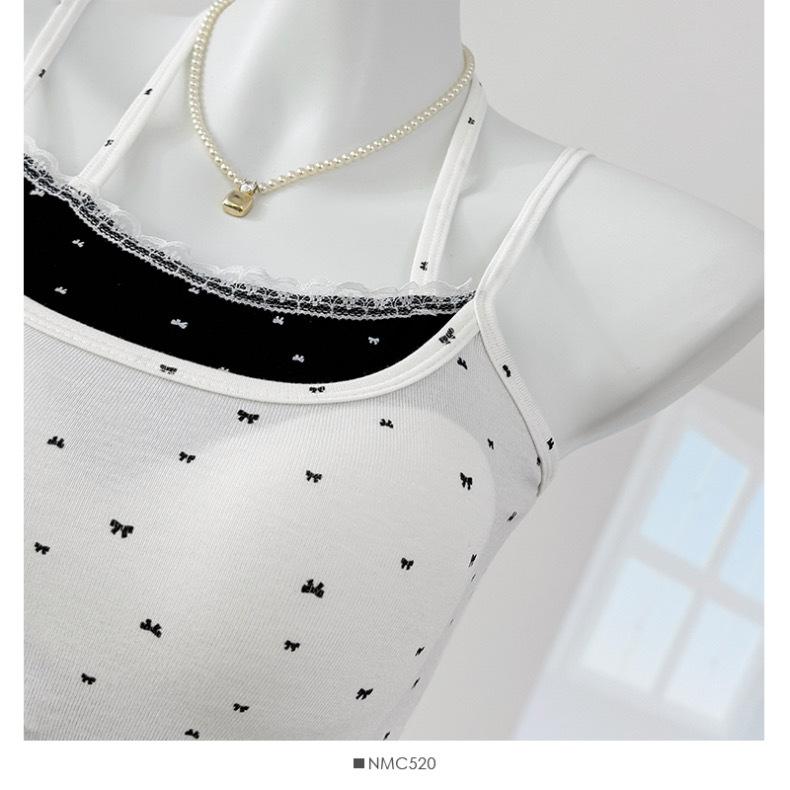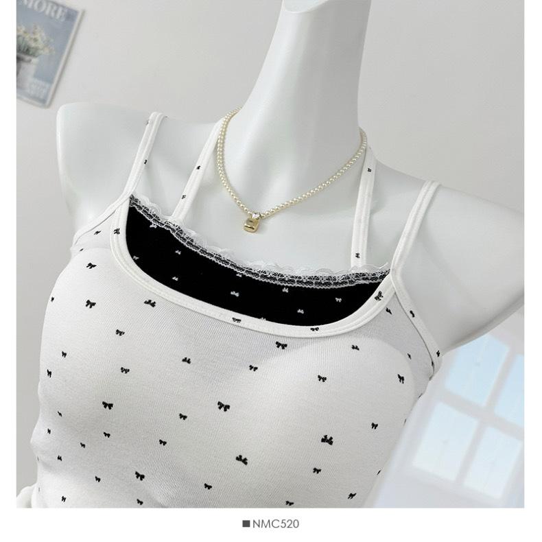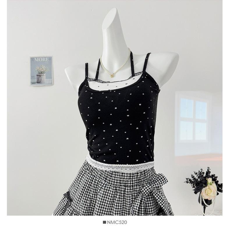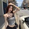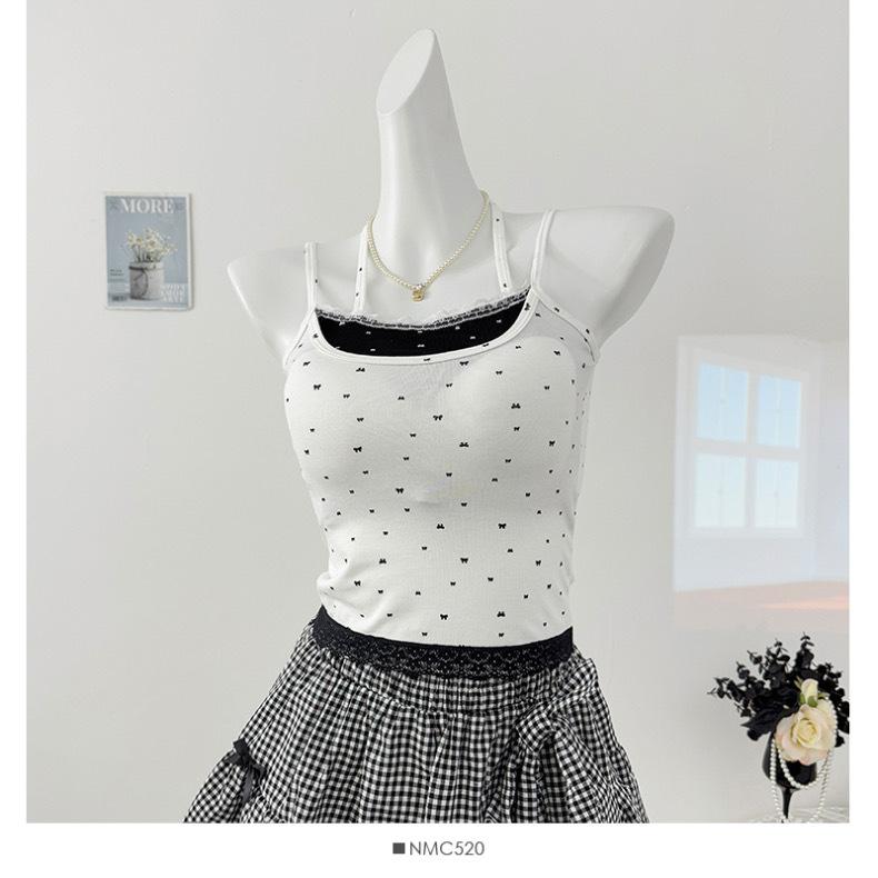 Estilo Deseo Puro Encaje Color Contraste Costuras Camisola Falsa de Dos Piezas Primavera Lazo Ajustado Adelgazante Top Corto para Mujer
