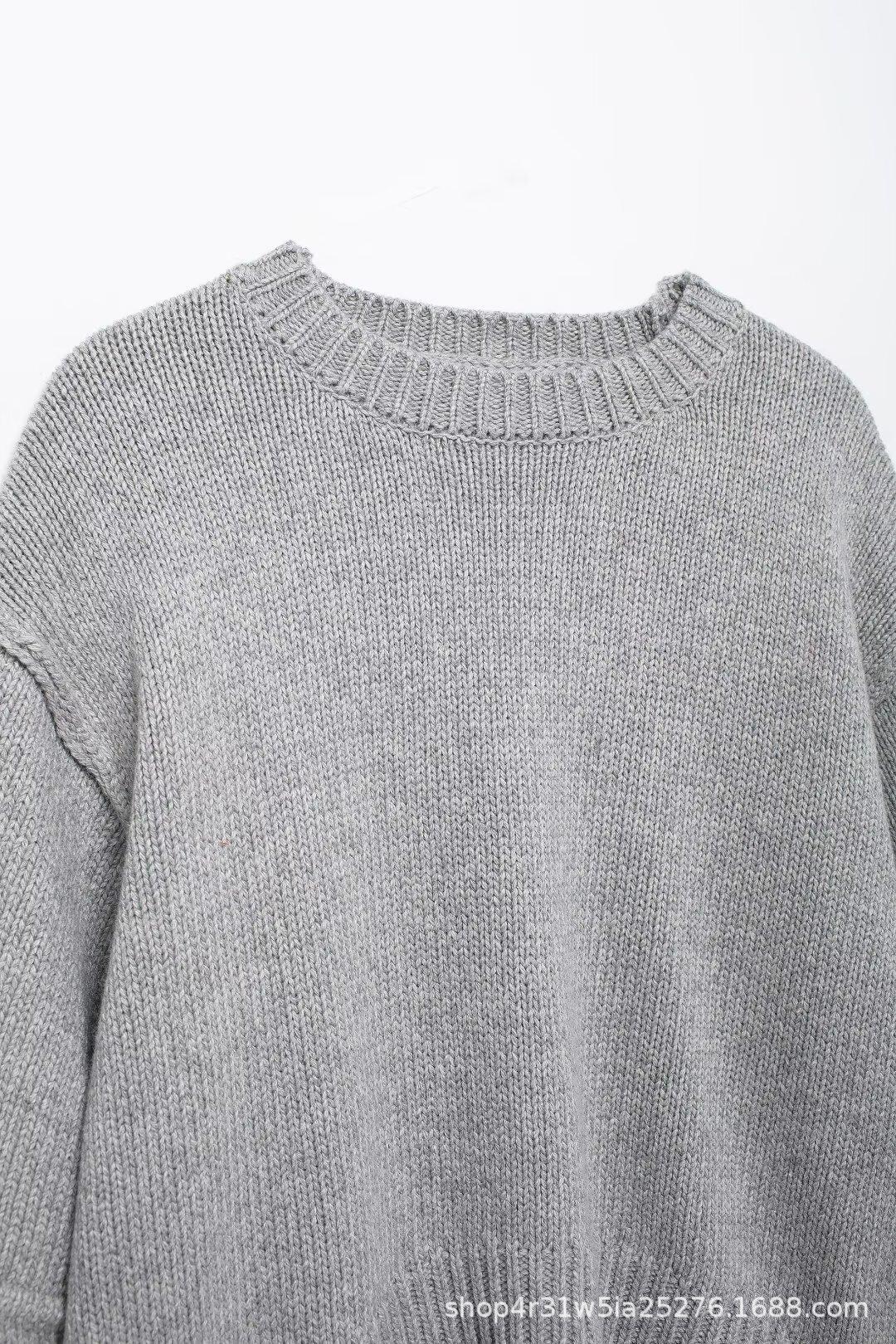 Ropa de Mujer Transfronteriza Europea y Americana Amazon 2024 Otoño e Invierno Nueva Moda Suéter Jersey Tejido de Manga Larga Plisada