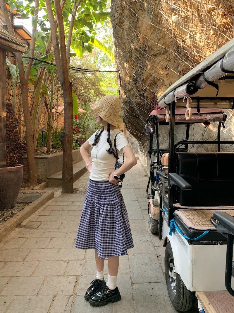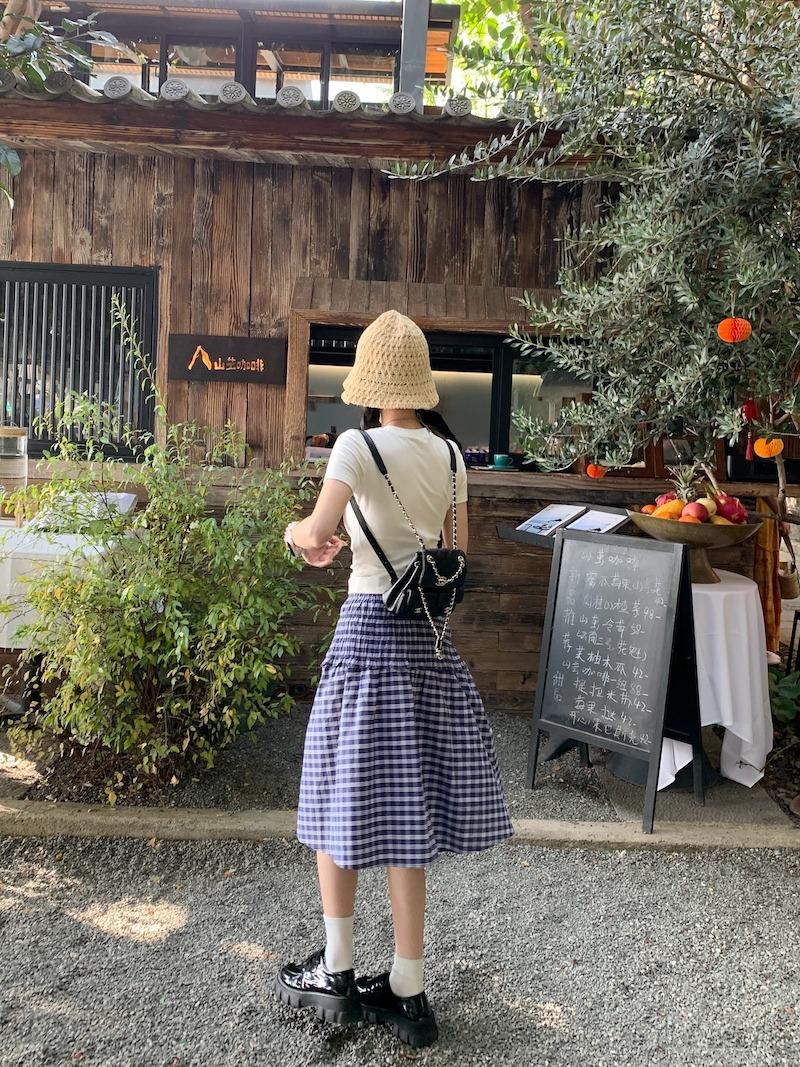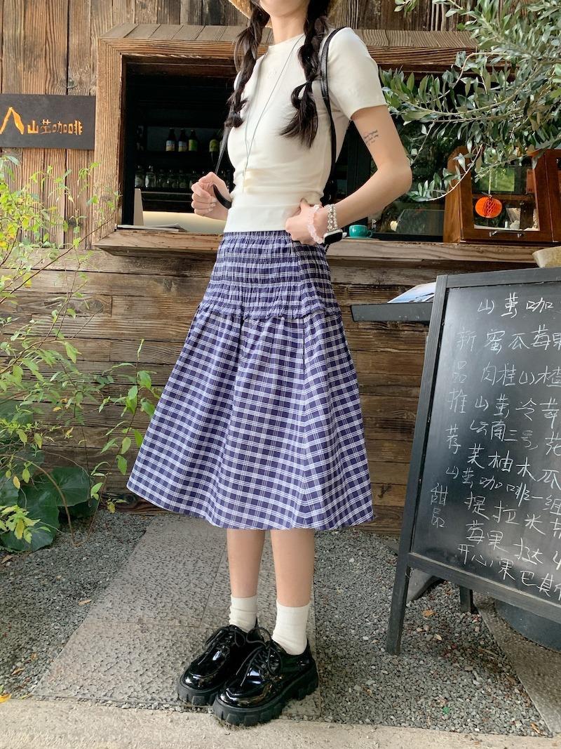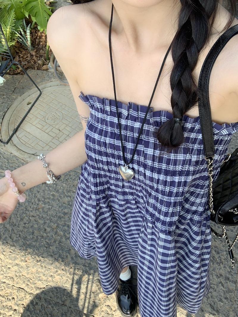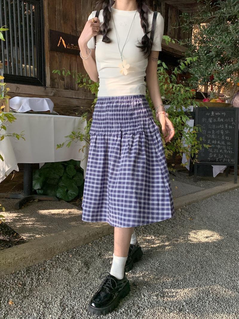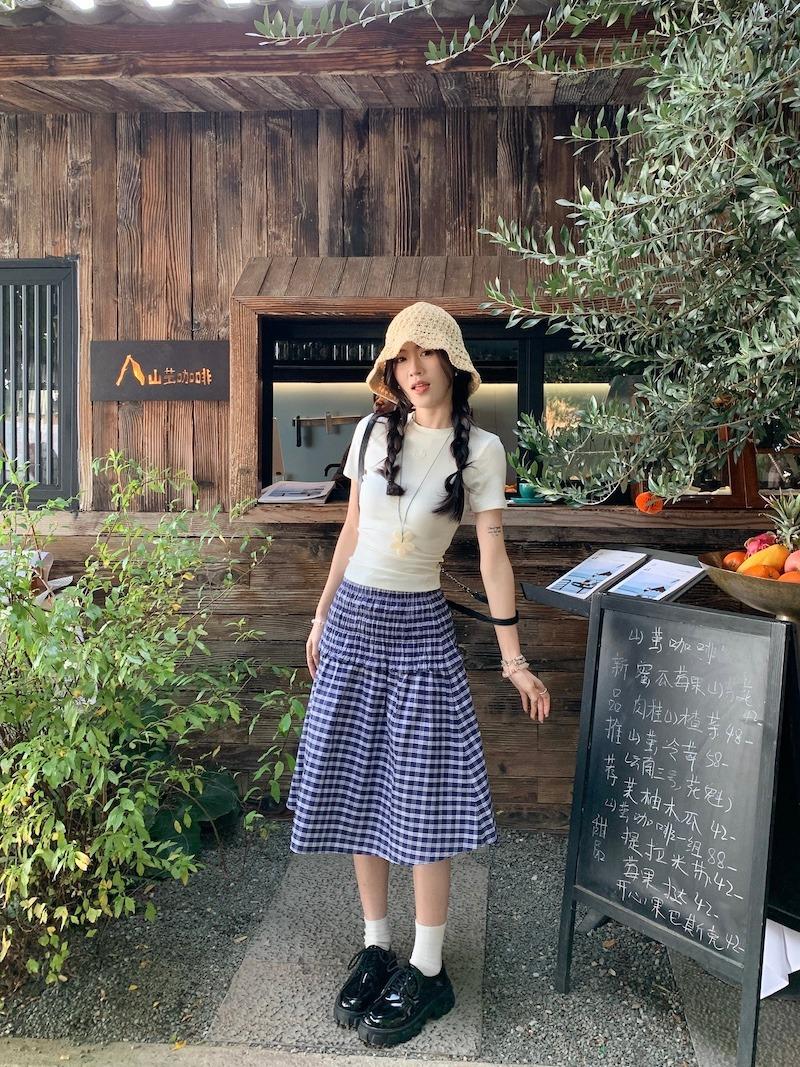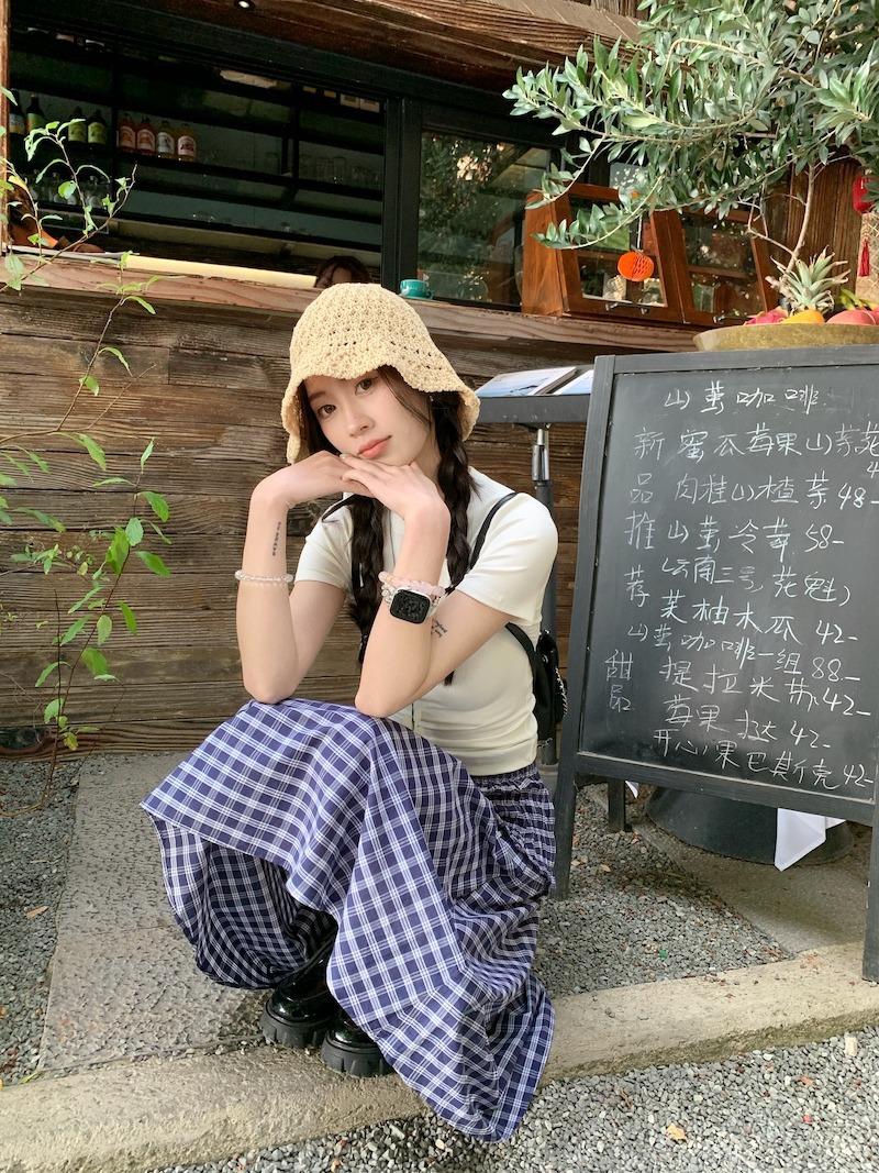 Verano Estilo Dulce Reductor de Edad Chic Diseño de Cuadros Azules Combinable Falda Dos Usos Elegante Top Tubo Chaleco Falda Mujer