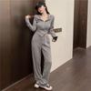 Traje de moda Mujer 2025 Primavera y Otoño Nuevo Suelto Casual Deportivo Pantalones de Pierna Ancha Cintura Alta Ajustado Sudadera Conjunto de Dos Piezas