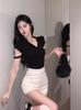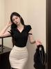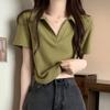 Playera de Cuello Polo de Manga Corta Ajustada Adelgazante Diseño Escotado Verano Elegante Combinable Moda Nicho Ins Top de Chica Picante
