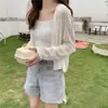 Cárdigan de Punto Fino Hueco de Seda de Hielo con Protección Solar para Mujer en Primavera con Falda de Tirantes Camisa Holgada para Aire Acondicionado Chal Chaqueta Corta