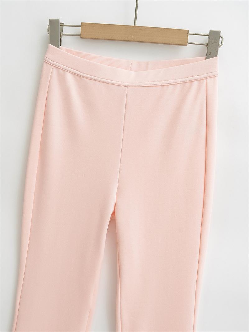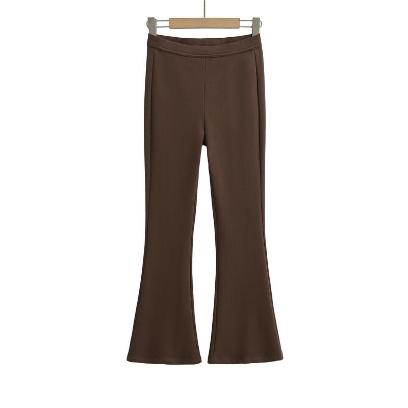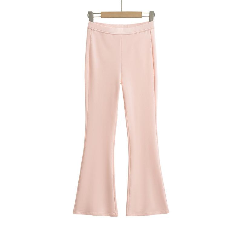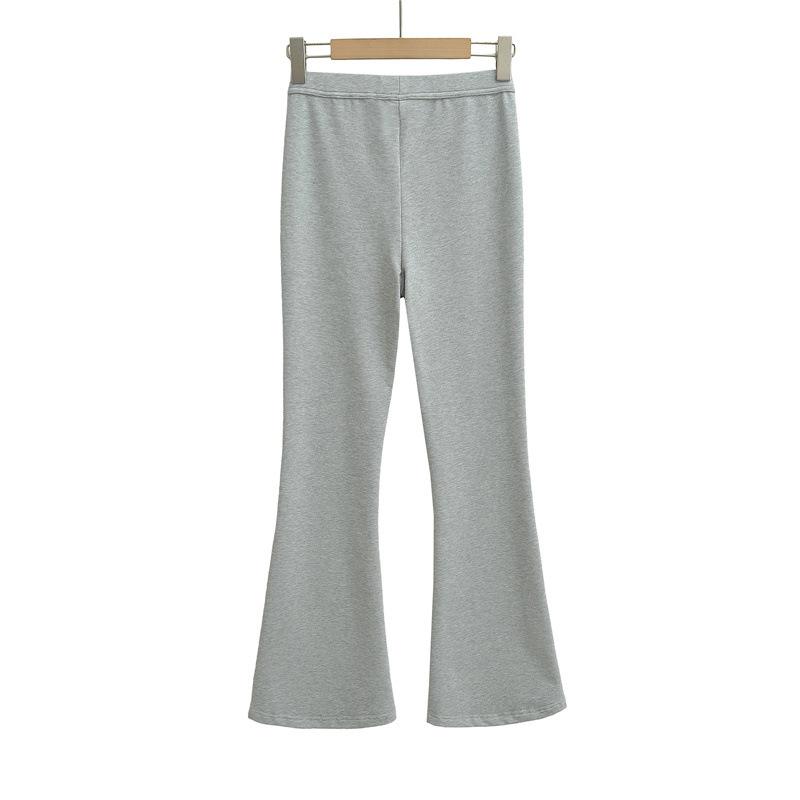 Pantalones Acampanados de Cintura Alta Estilo Americano Algodón Peinado Elástico Pantalones Casuales Verano Nuevo Elásticos Ajustados Pantalones Deportivos para Mujer