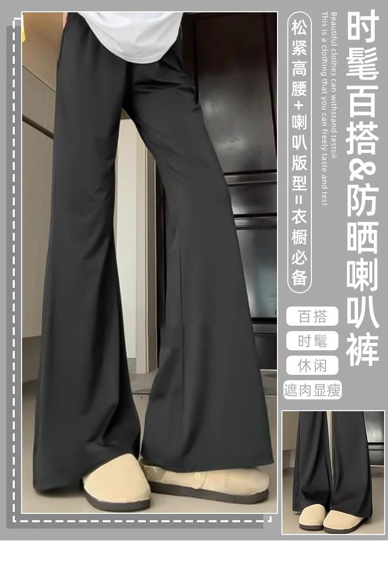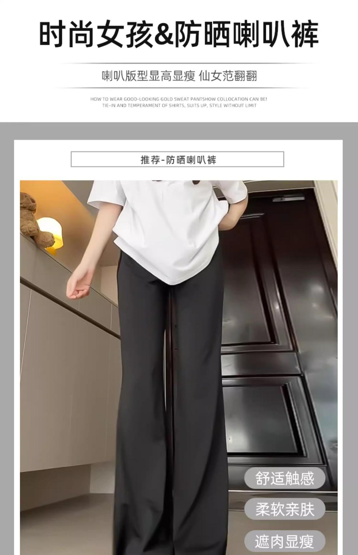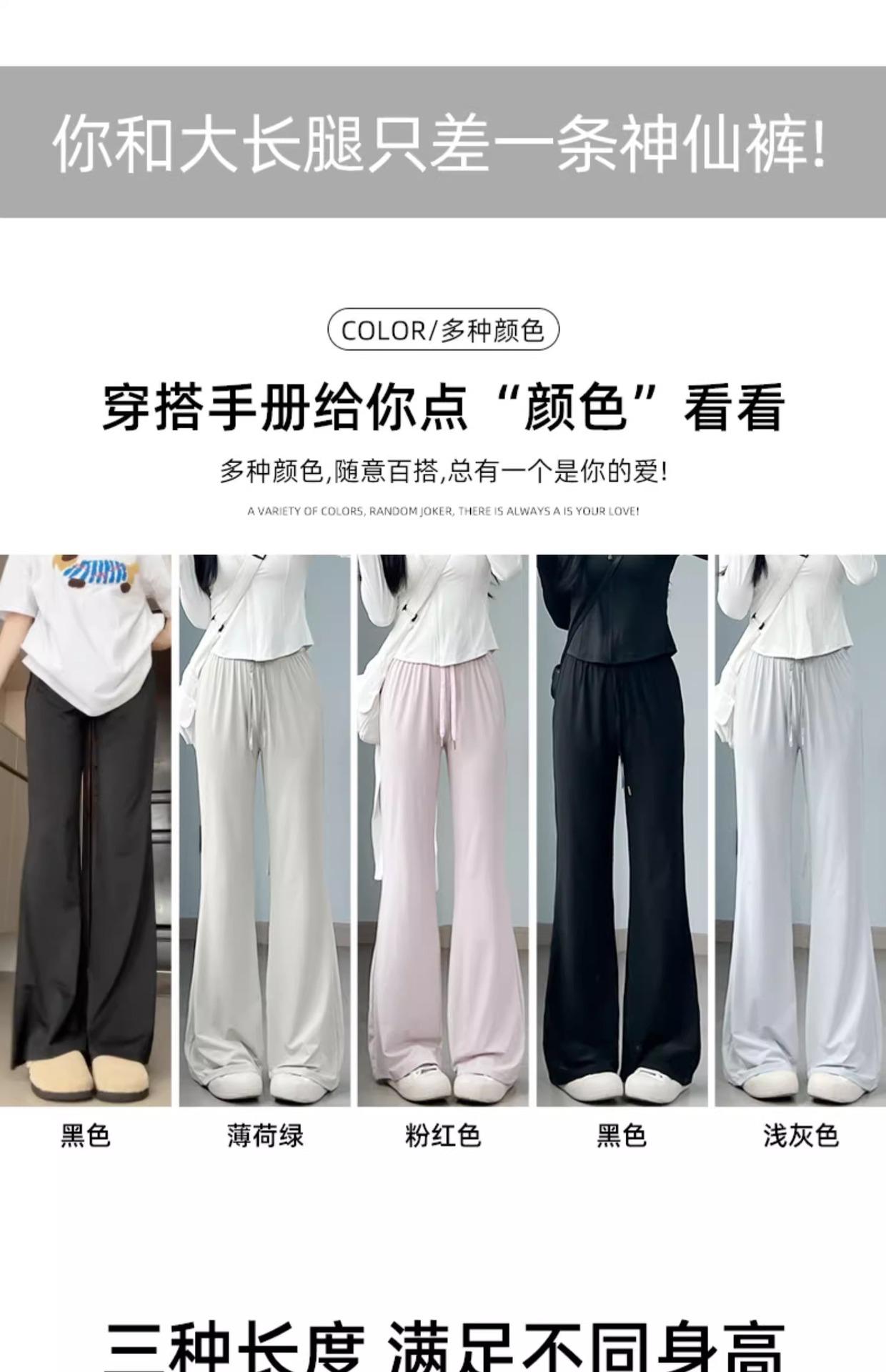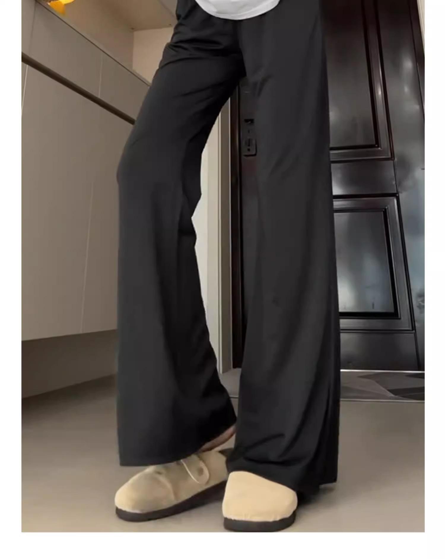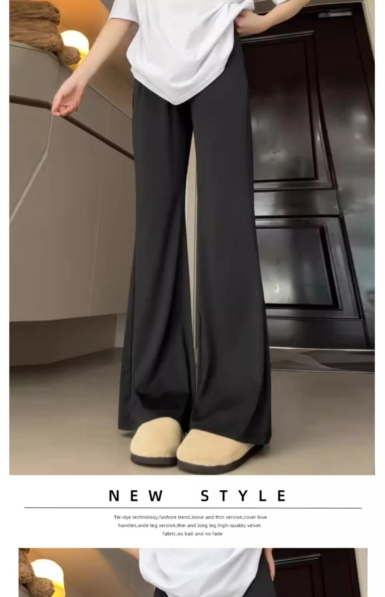 Pantalones Slip Negros para Mujer Verano 2025 Delgados Cintura Alta Casuales Acampanados Pequeños Protector Solar Seda Helada Pantalones de Pierna Ancha