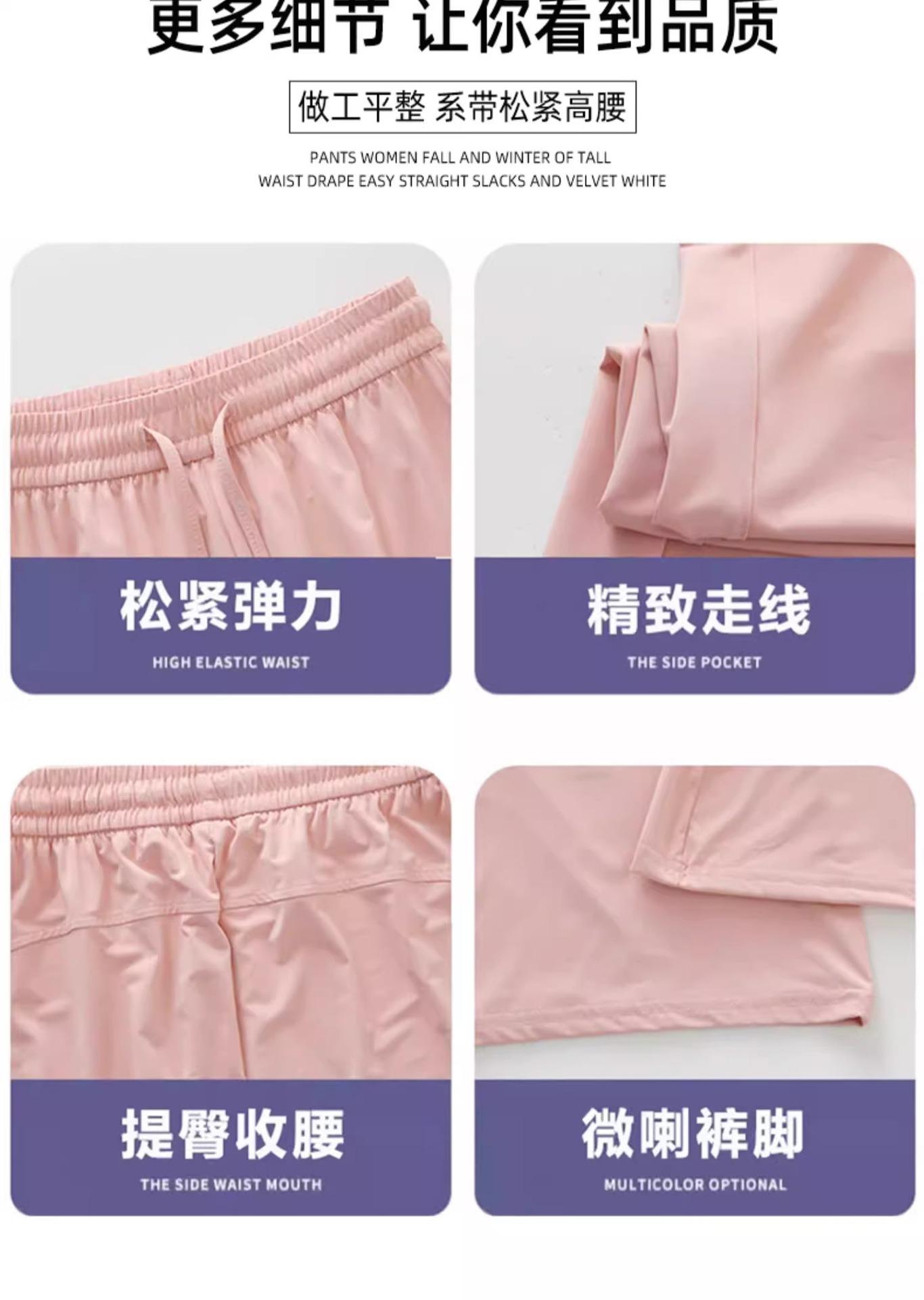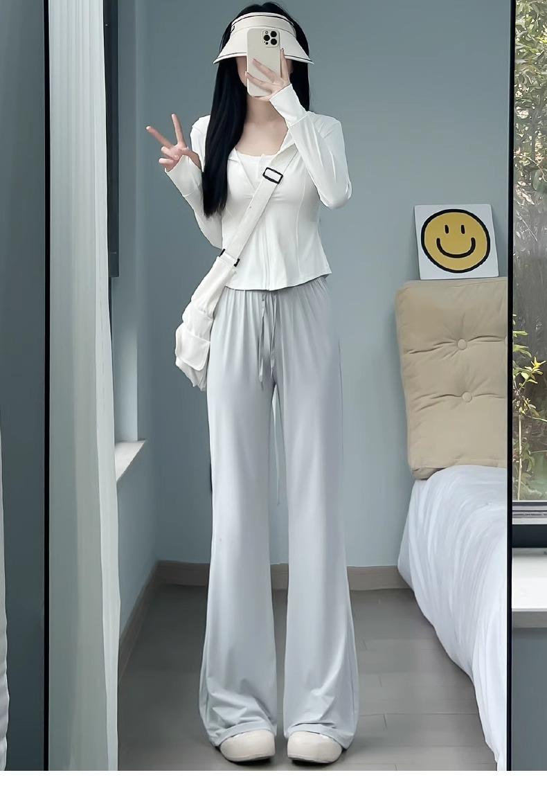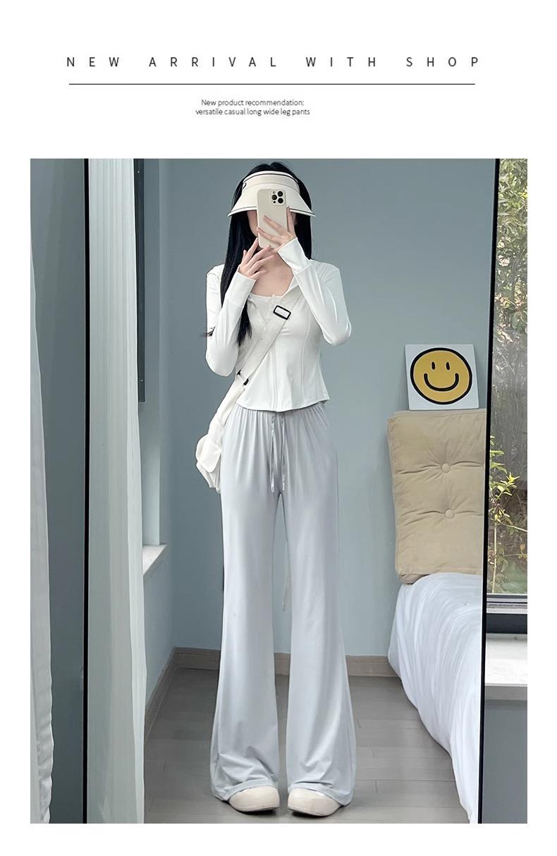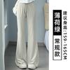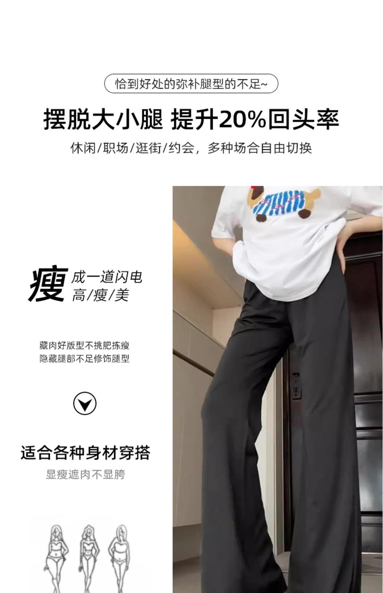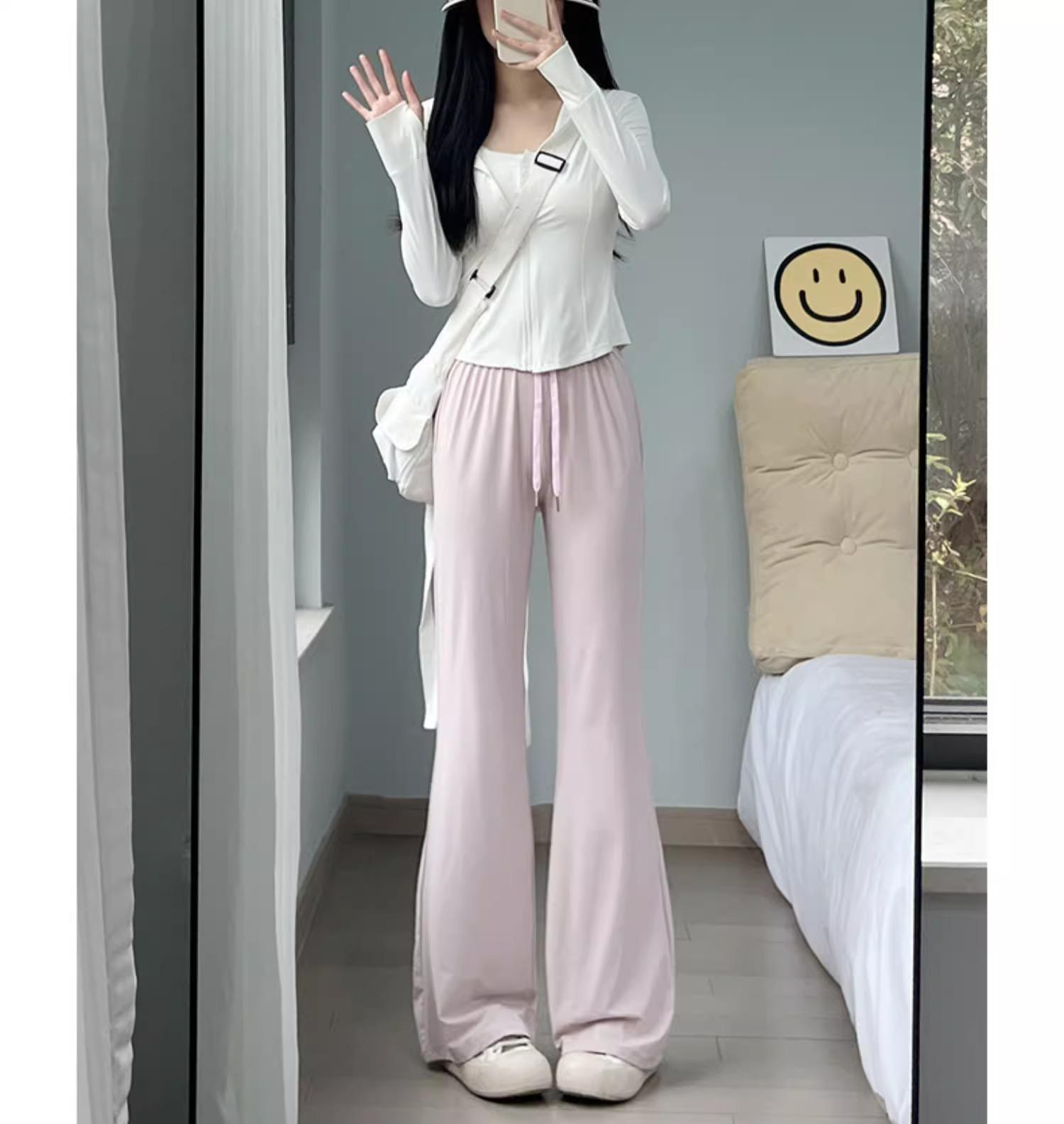 Pantalones Slip Negros para Mujer Verano 2025 Delgados Cintura Alta Casuales Acampanados Pequeños Protector Solar Seda Helada Pantalones de Pierna Ancha