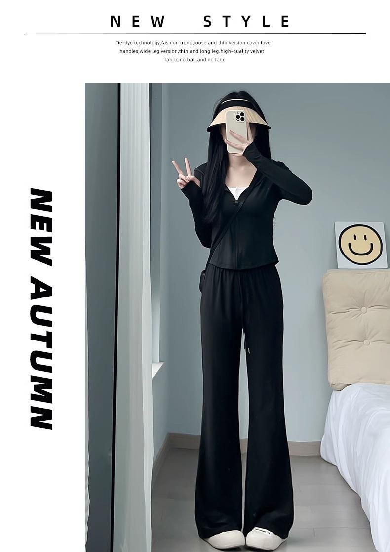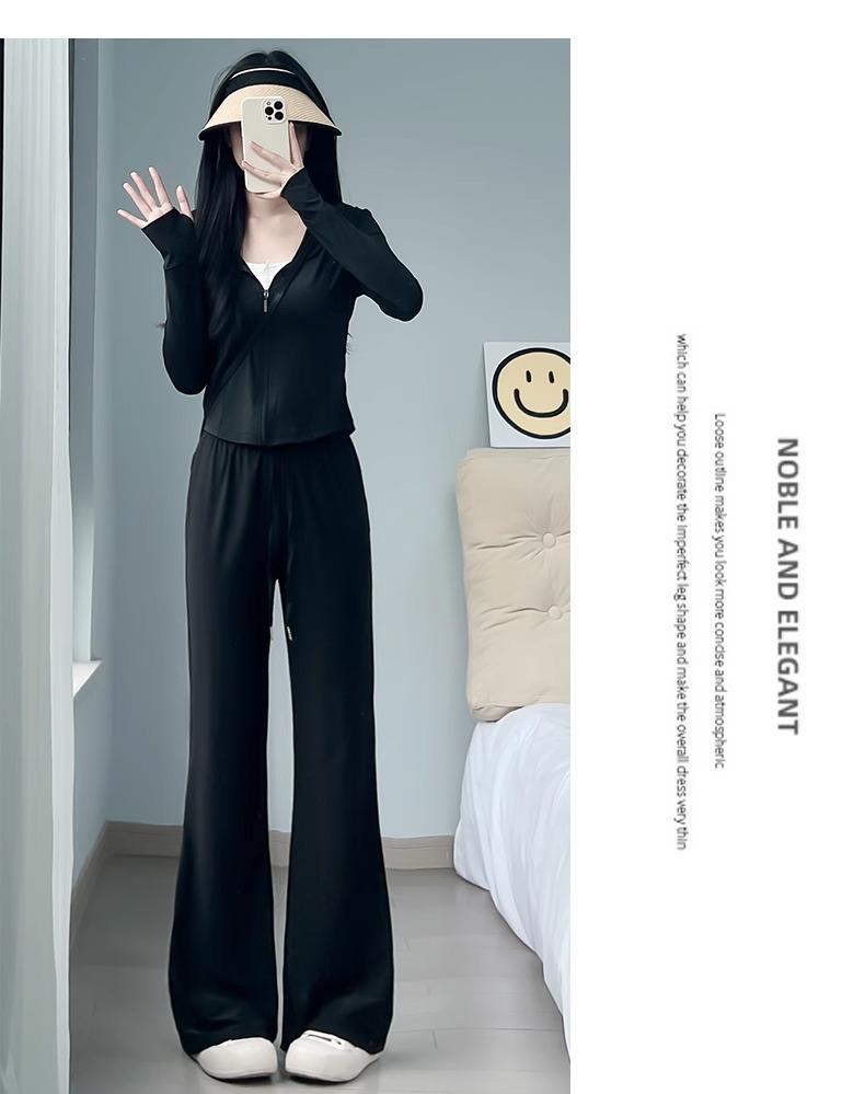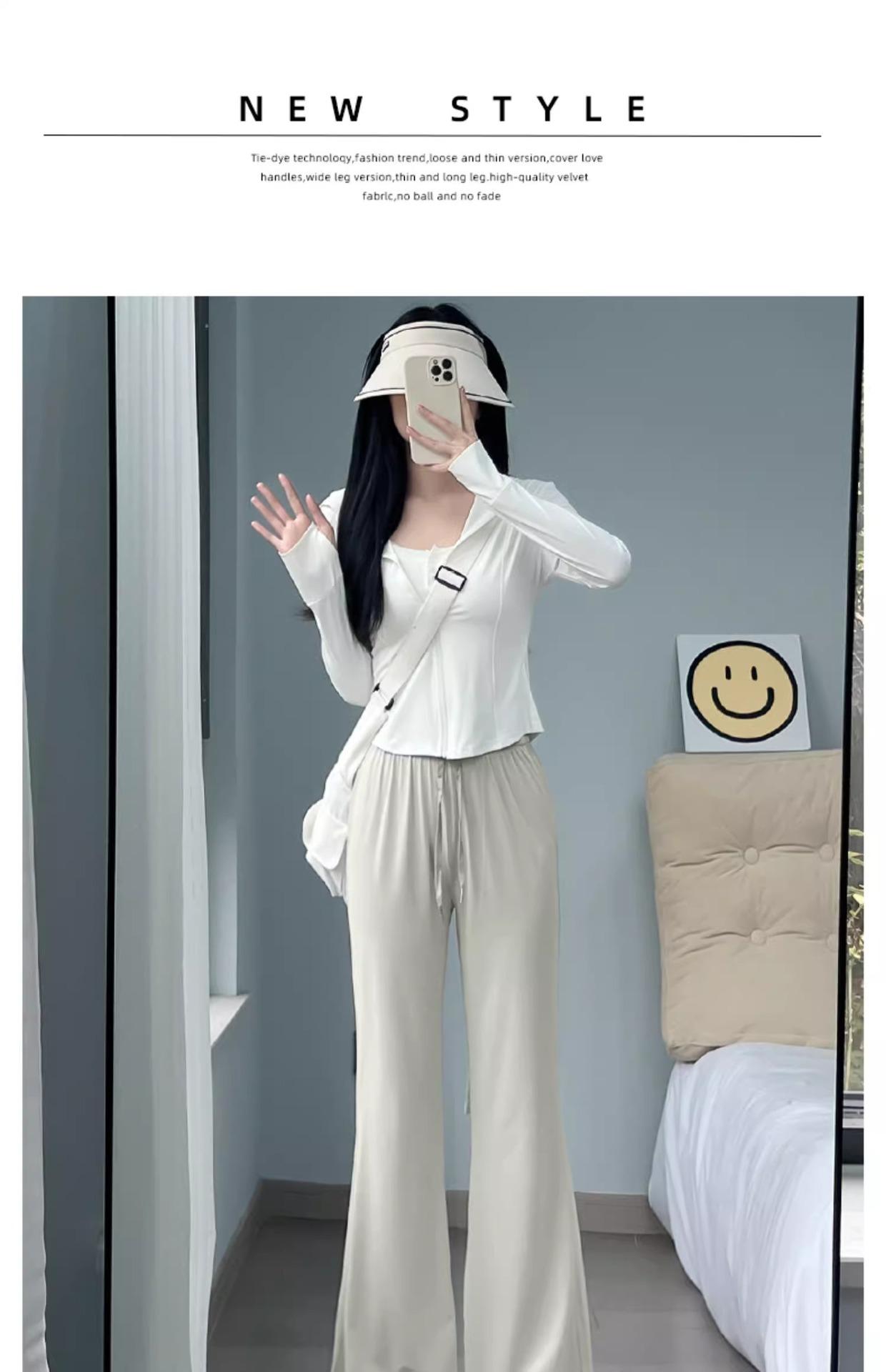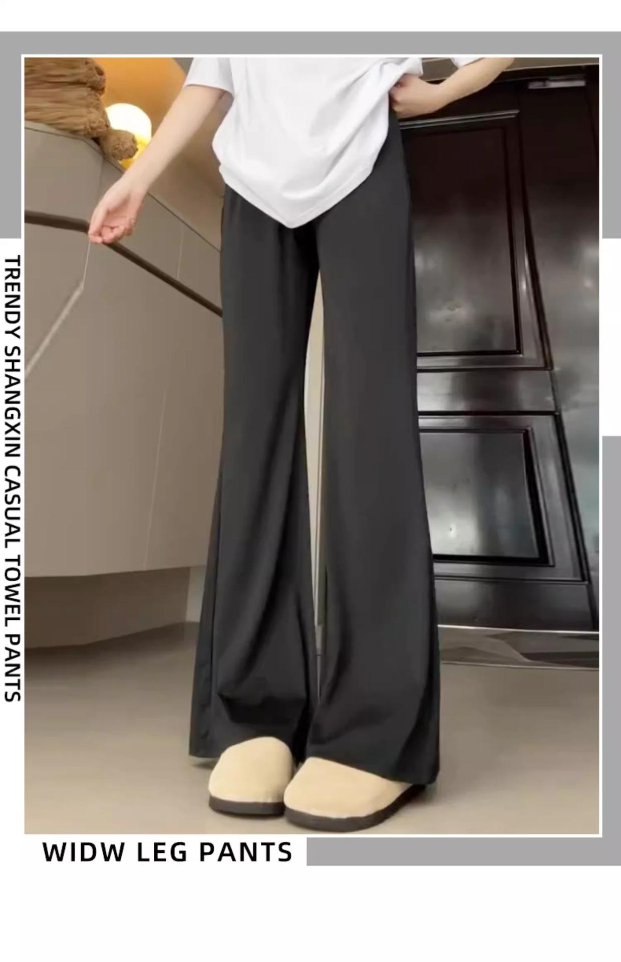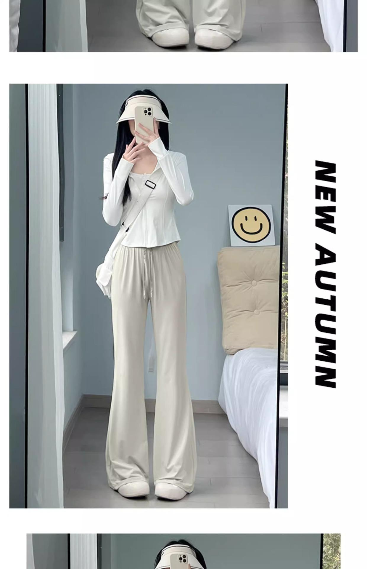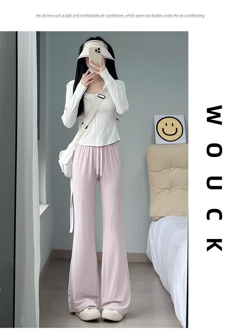 Pantalones Slip Negros para Mujer Verano 2025 Delgados Cintura Alta Casuales Acampanados Pequeños Protector Solar Seda Helada Pantalones de Pierna Ancha